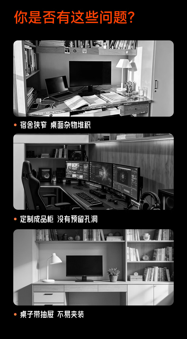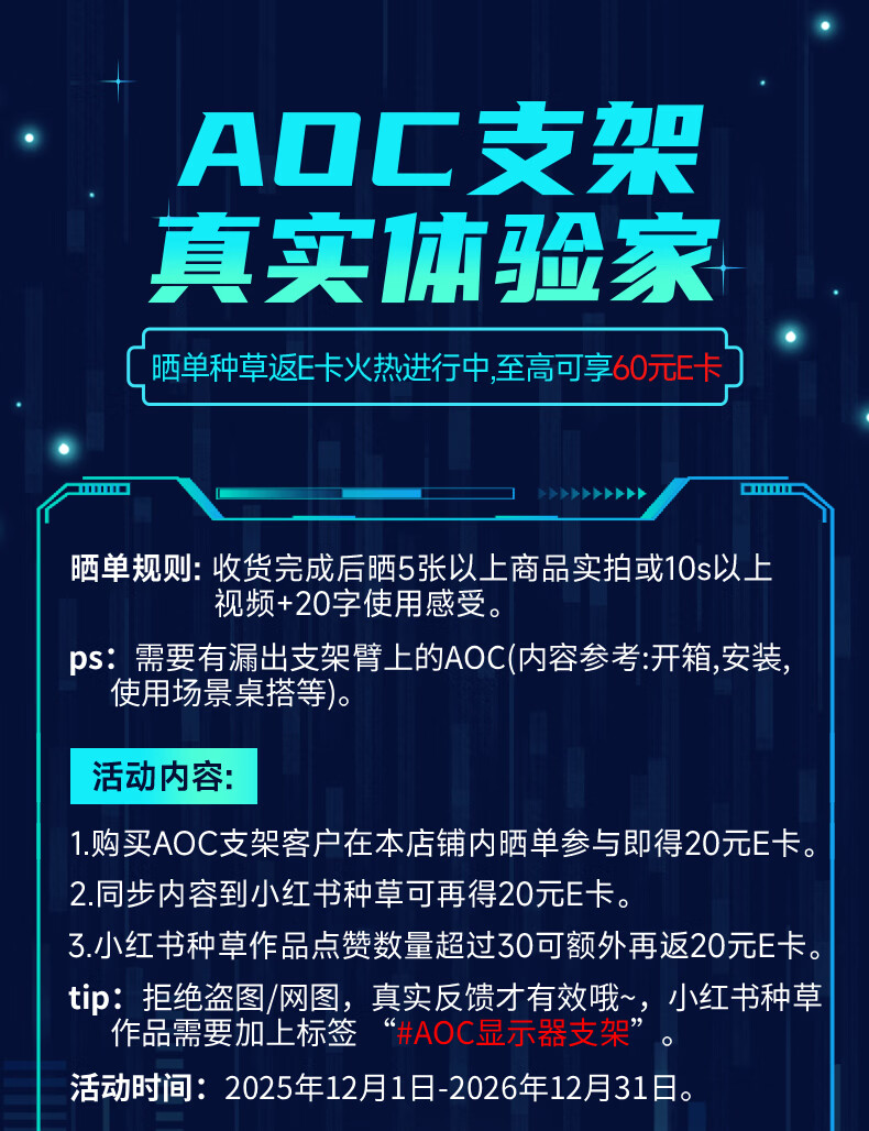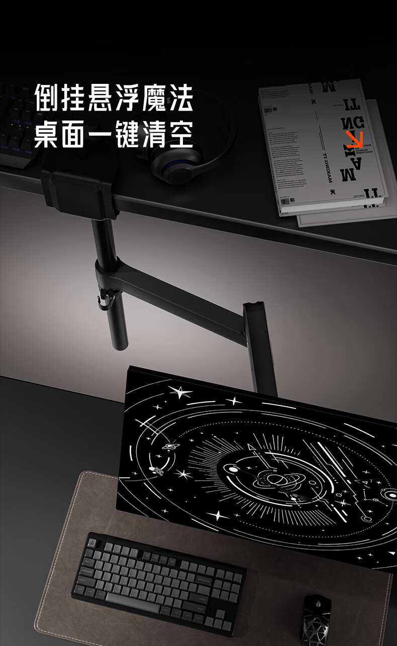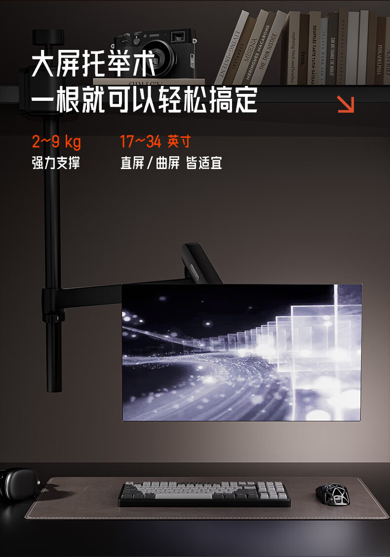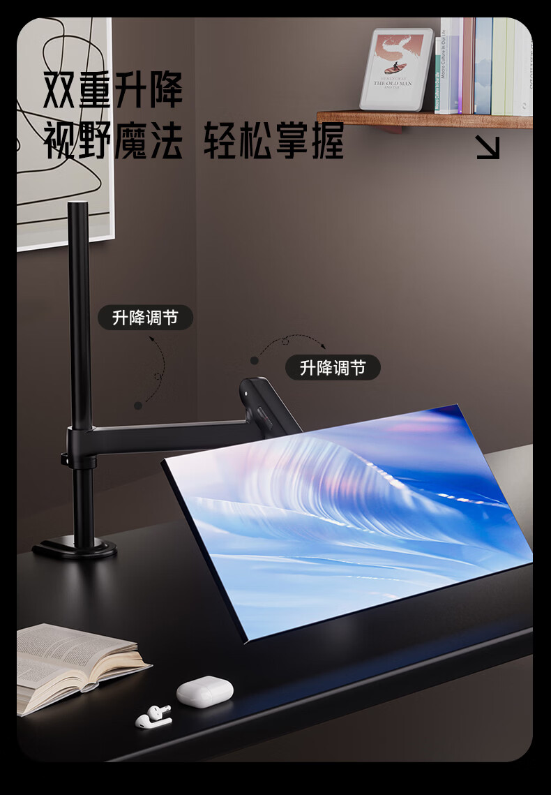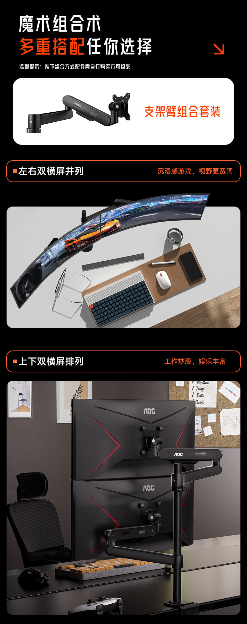 AOC显示器支架臂加长立柱机械臂可倒挂电脑增高架桌面机械臂电脑桌支架机械弹簧显示屏支架AM700CHB黑