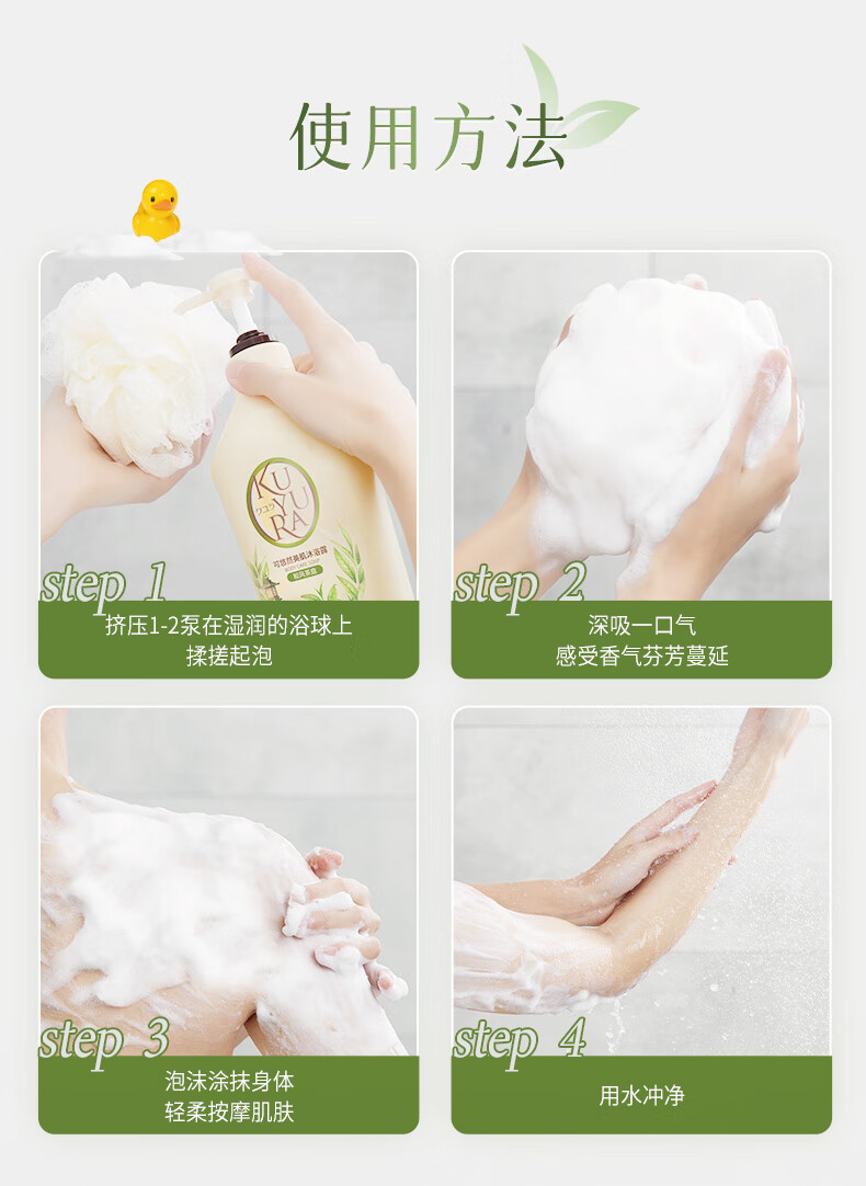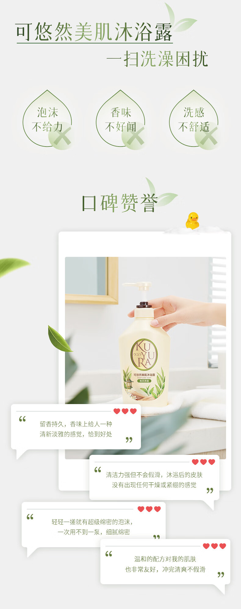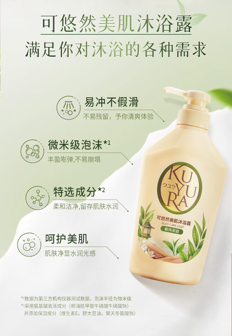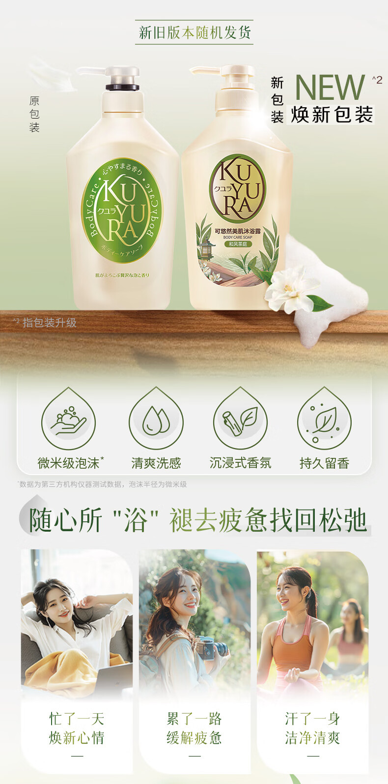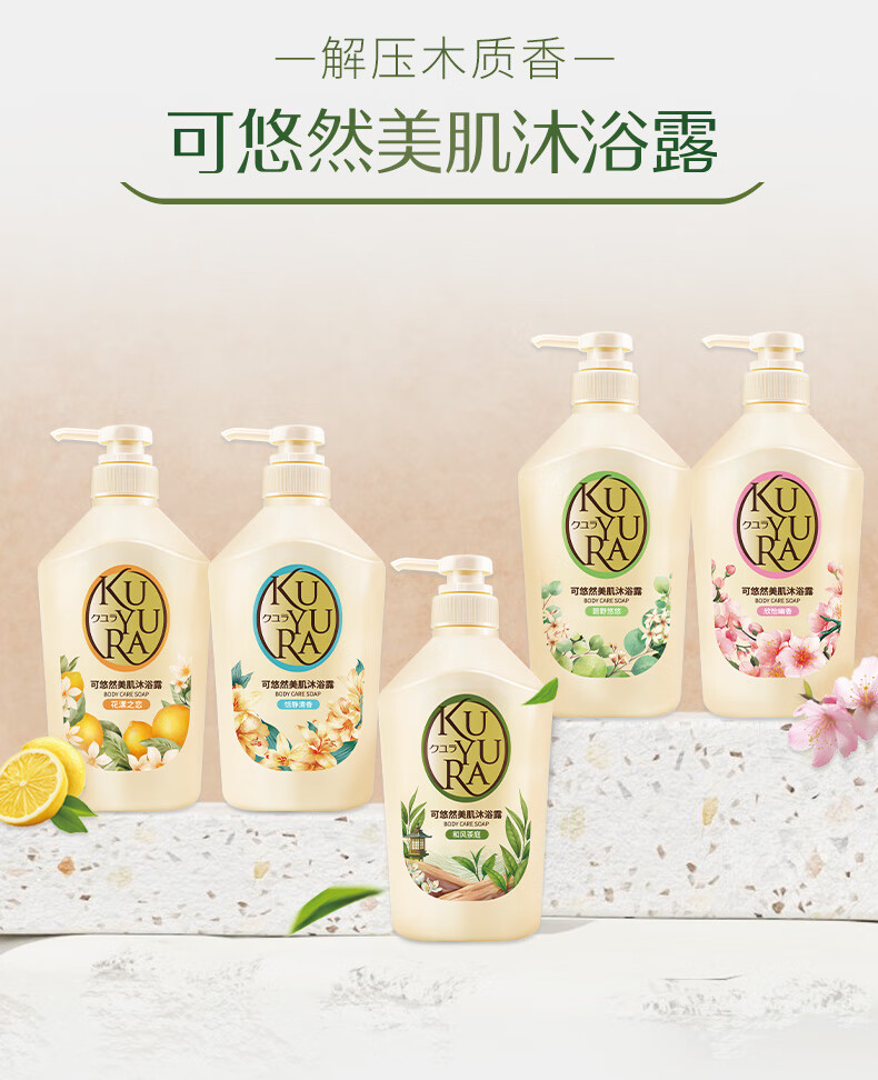可悠然木质茶香沐浴露大黄瓶持久留香美肌香氛保湿男女士沐浴乳550ml*2