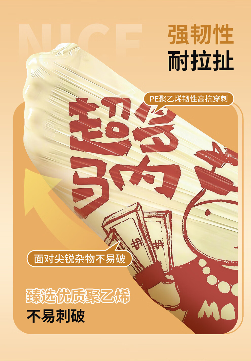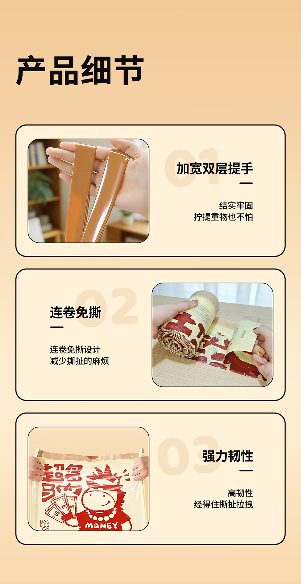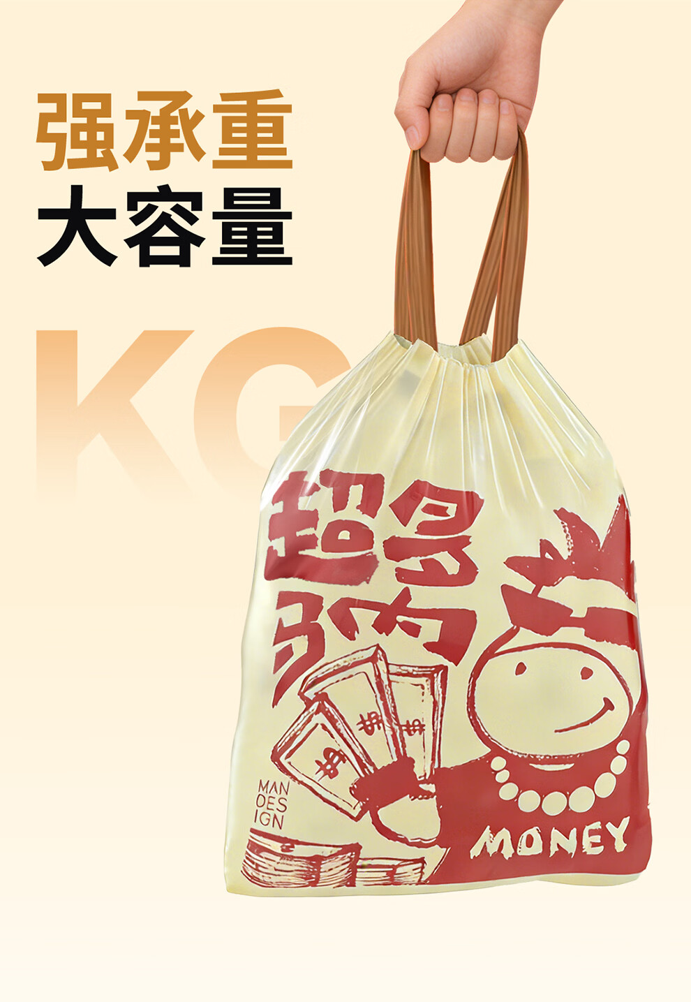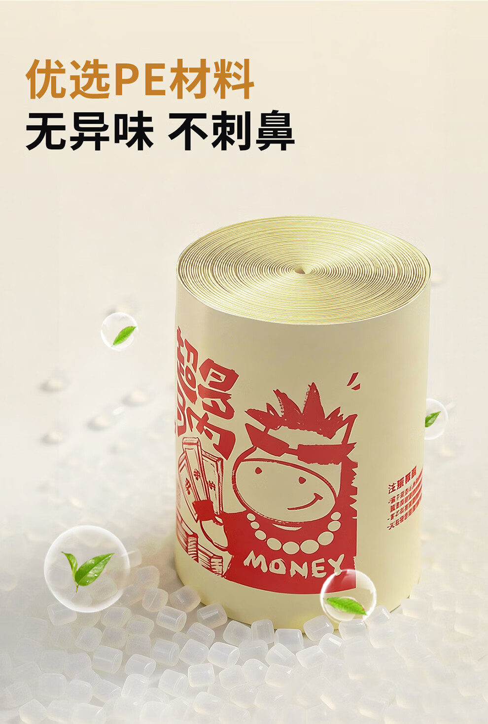 本迪抽绳垃圾袋26马年45*50cm*100只1.2丝加厚免撕家用手提穿绳垃圾袋