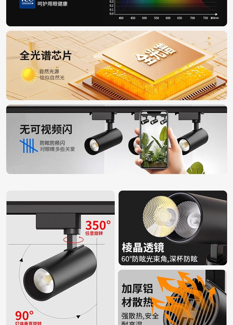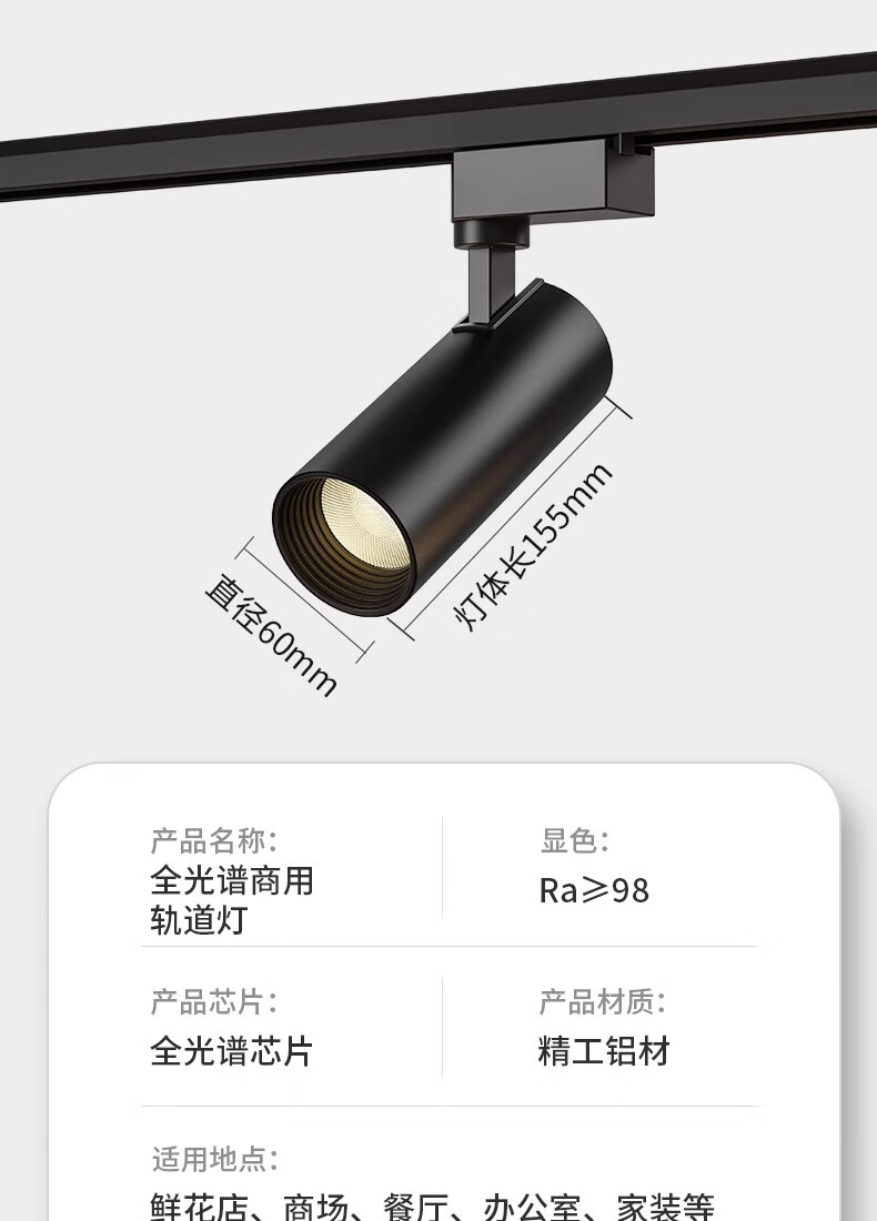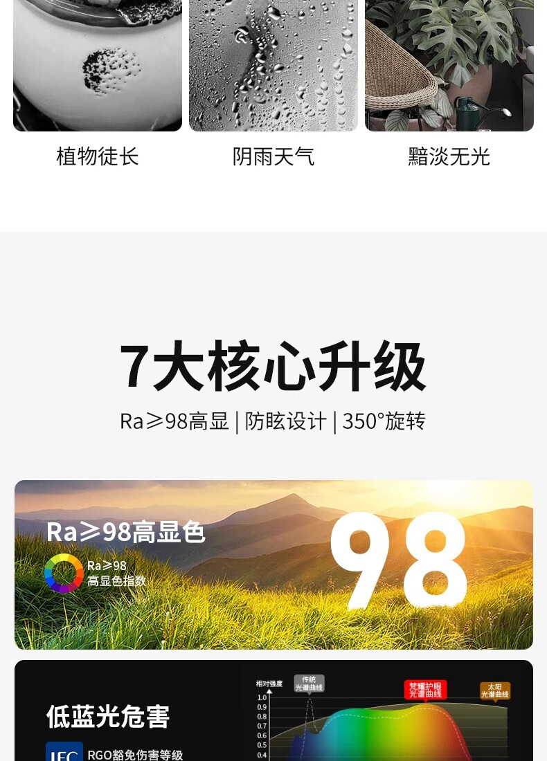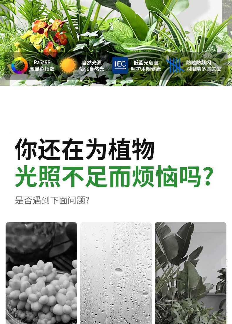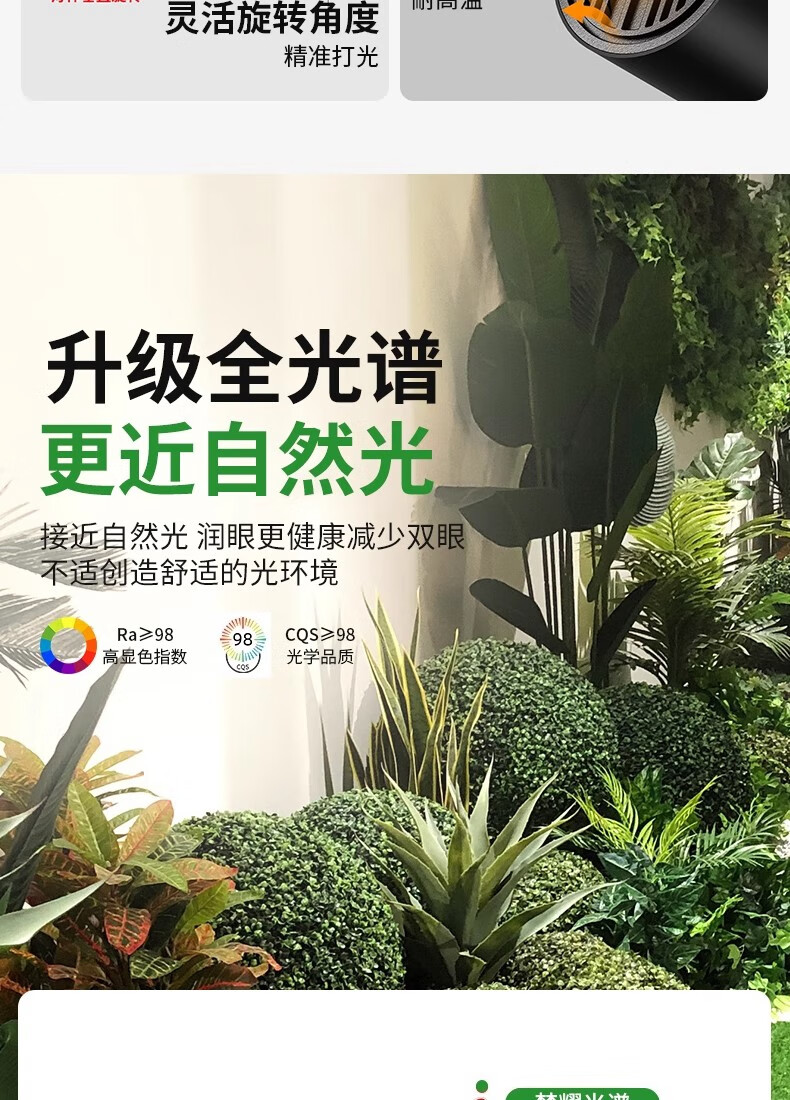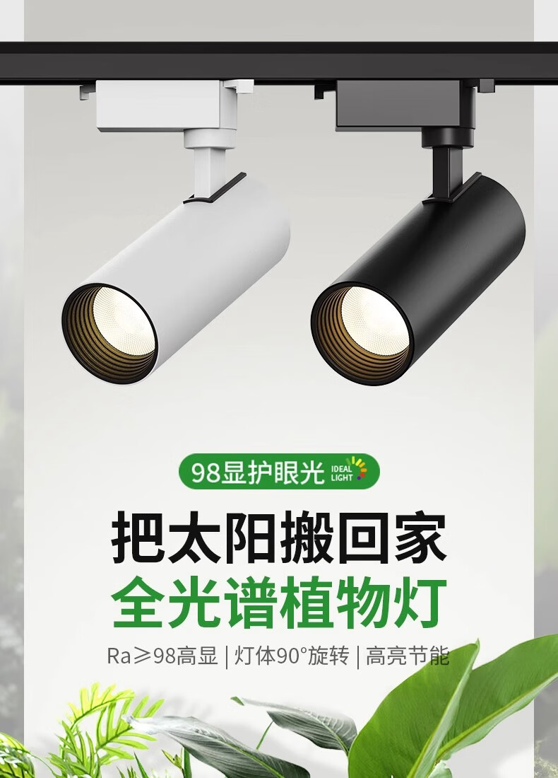 拉伯塔植物补光生长灯LED轨道射灯全光谱自然光室内绿植景观墙生态造景 【单只装】节能30W-黑壳-白光 类太阳补光灯