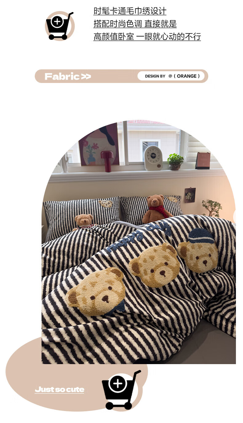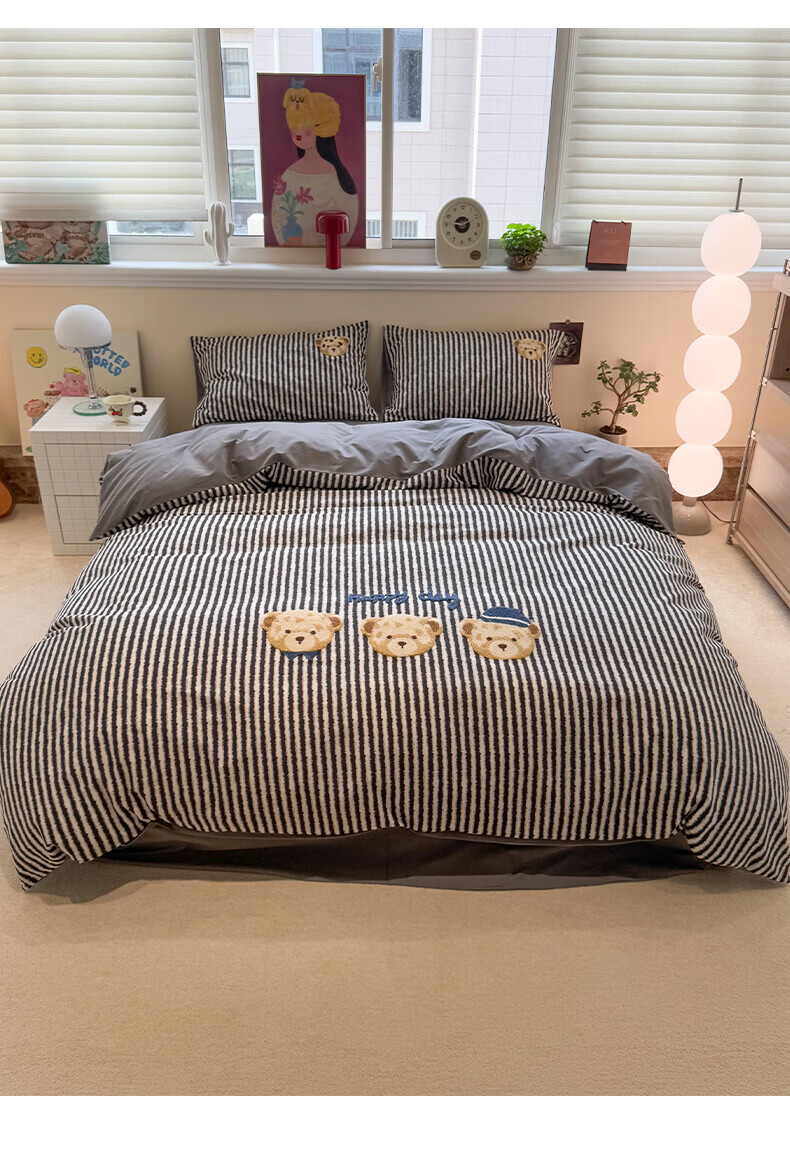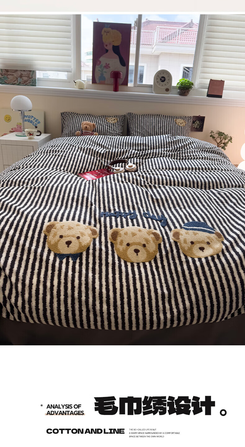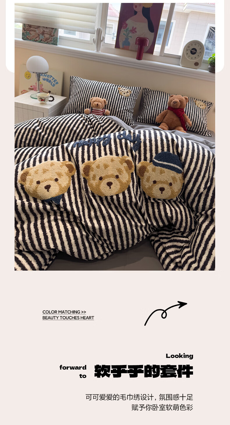 猫人(MiiOW)纯棉毛巾绣被套150x200x230cm全棉磨毛被罩单双人宿舍床品四件套 快乐小熊【全棉磨毛丨精美刺绣】 150cm*200cm 单被套