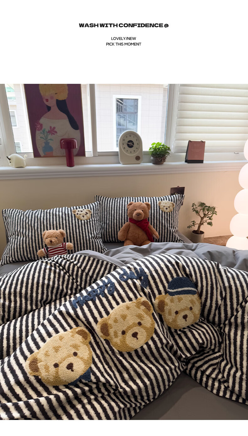 伊路卡新款牛奶绒四件套秋冬季保暖珊瑚绒床上用品儿童被套床单 一帘幽梦 1.8米床 四件套 床单款 (被套200*230cm)