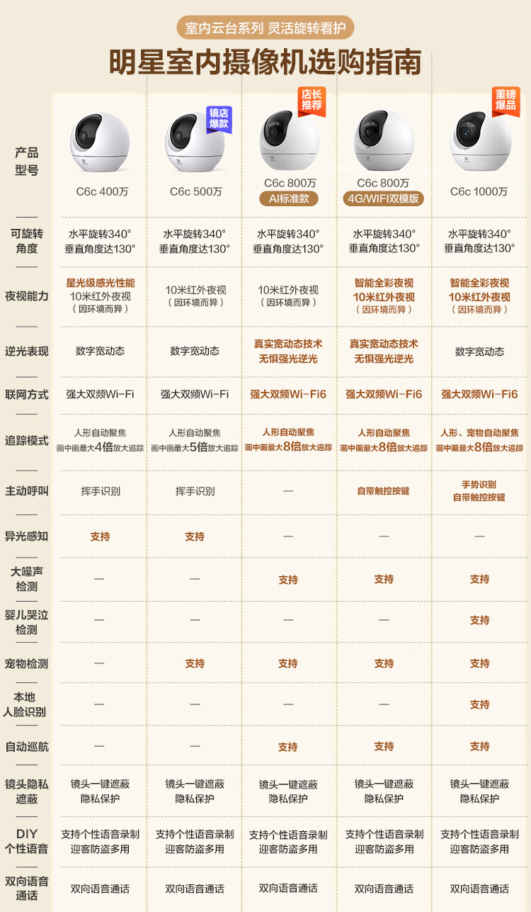 萤石室内4K AI标准版云台 800万极清 室内智能无线监控器家用摄像头双向通话 手机远程 自动巡视