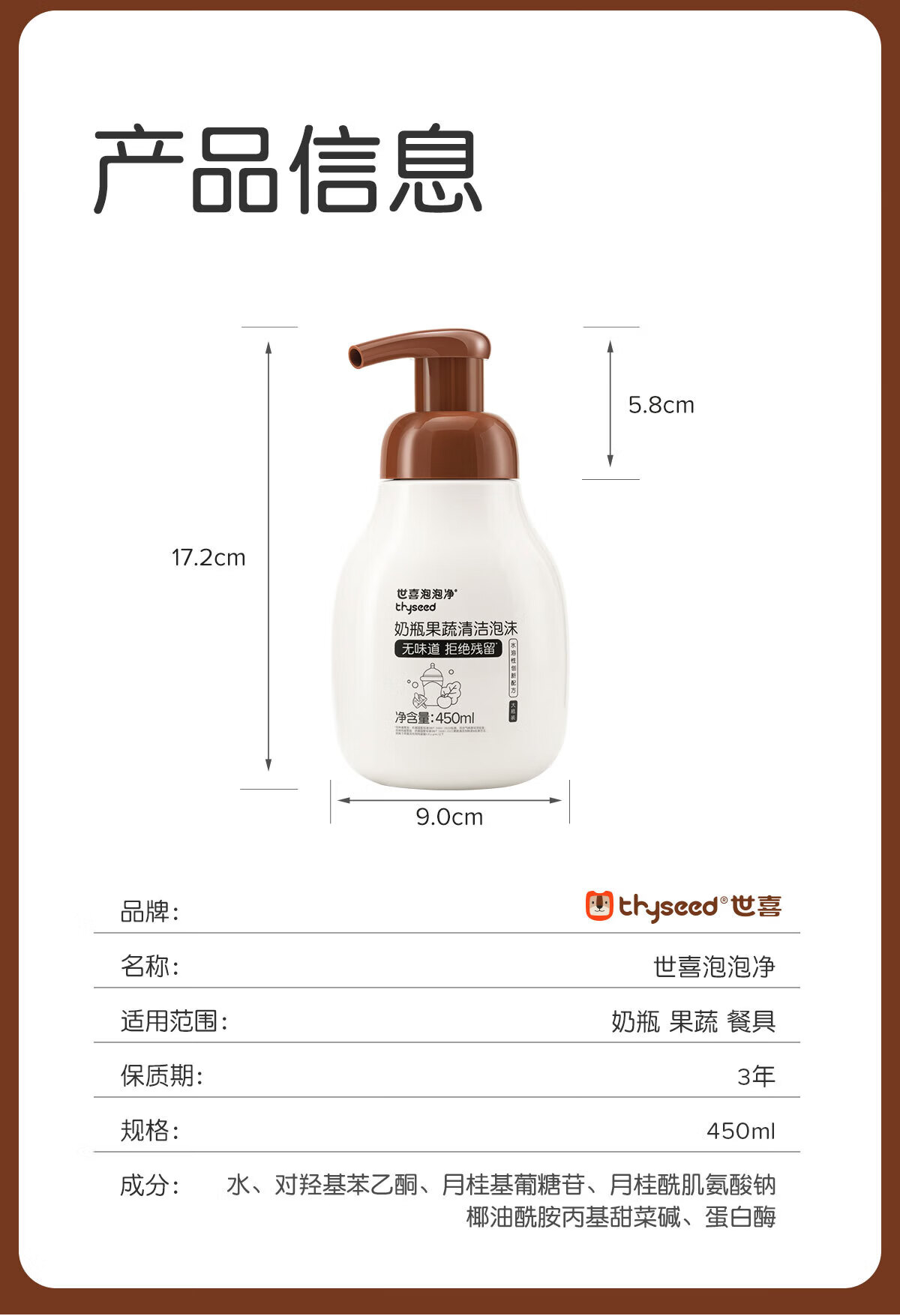 世喜婴儿奶瓶清洗剂洗奶瓶果蔬餐具宝宝用品泡沫洗洁精补充装450ml