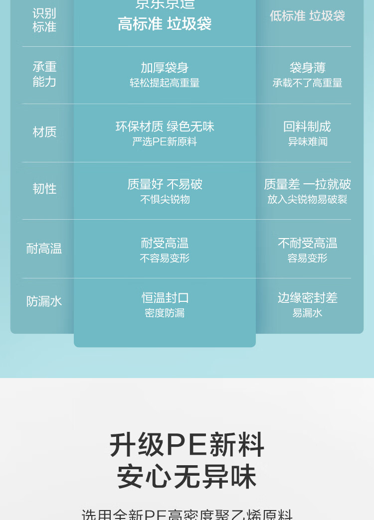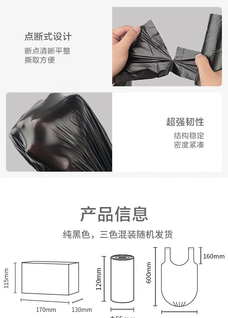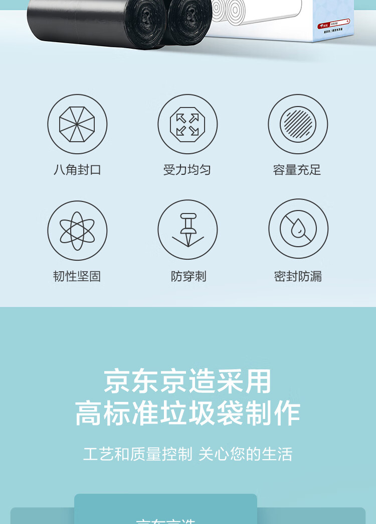京东京造 背心式垃圾袋45*60cm*300只 8μ0.8丝 手提厨房家用加厚袋中号