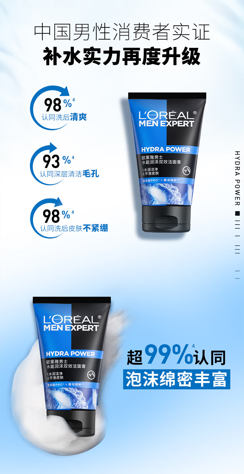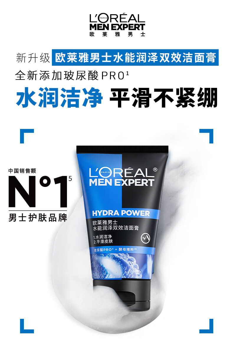 欧莱雅男士水能润泽双效洁面膏100ml洗面奶控油补水保湿护肤品新年礼物