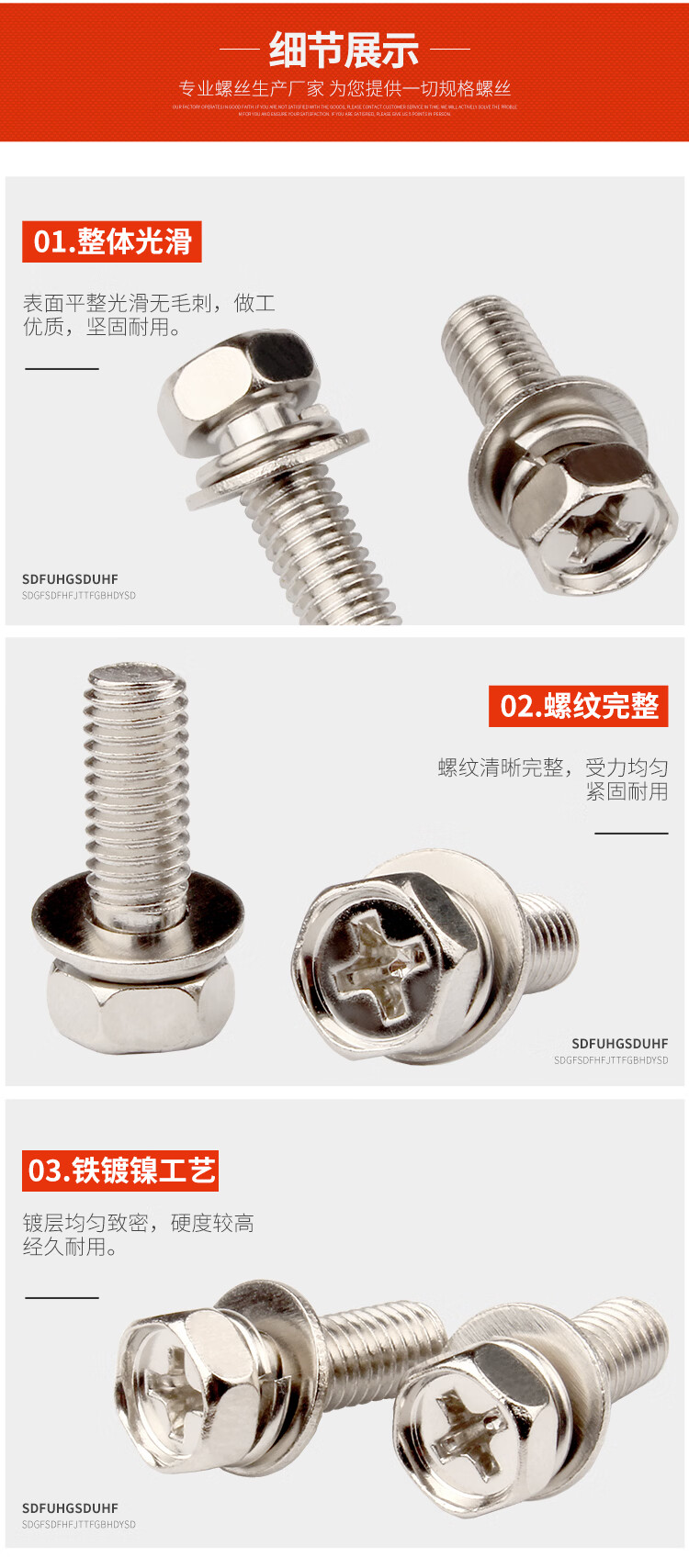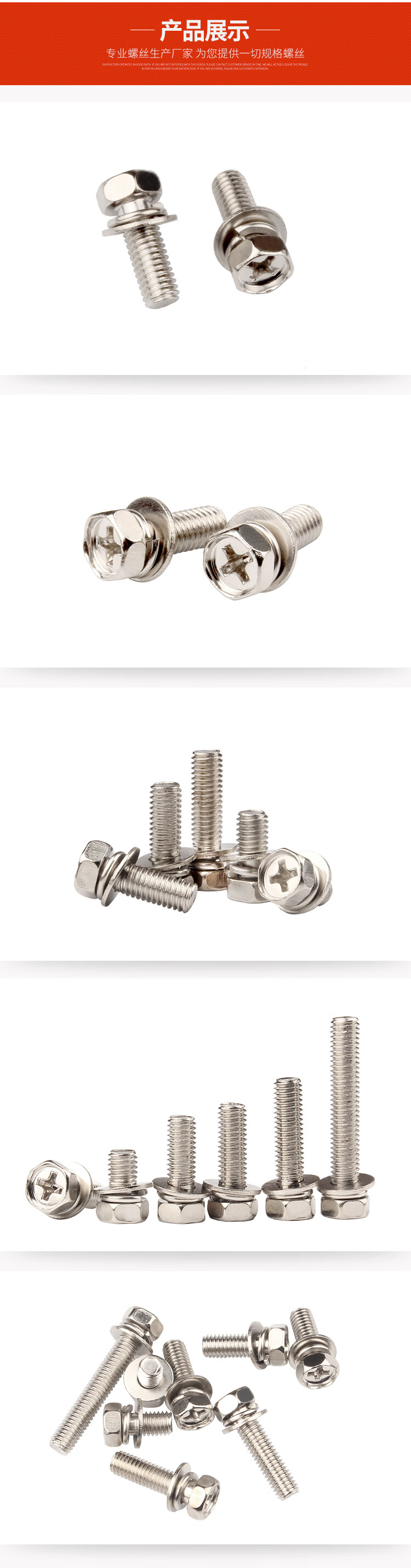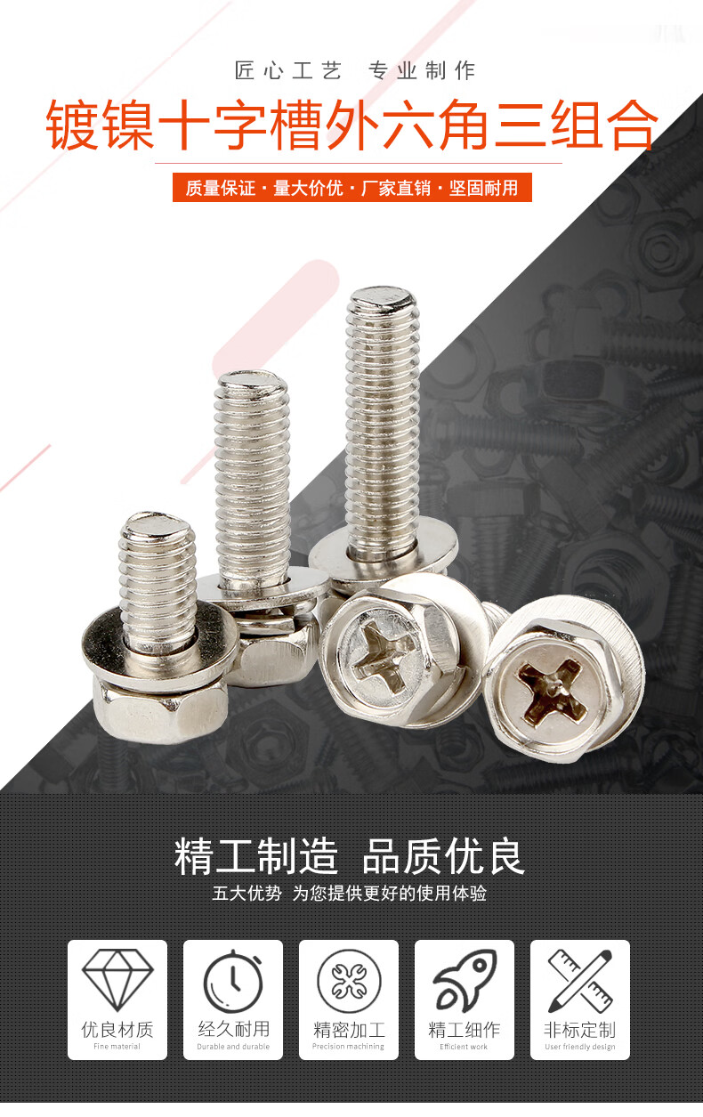 宝德丰铁镀镍十字槽外六角三组合螺丝钉带平垫螺钉凹穴组合螺栓 M3X6X6 [200只]