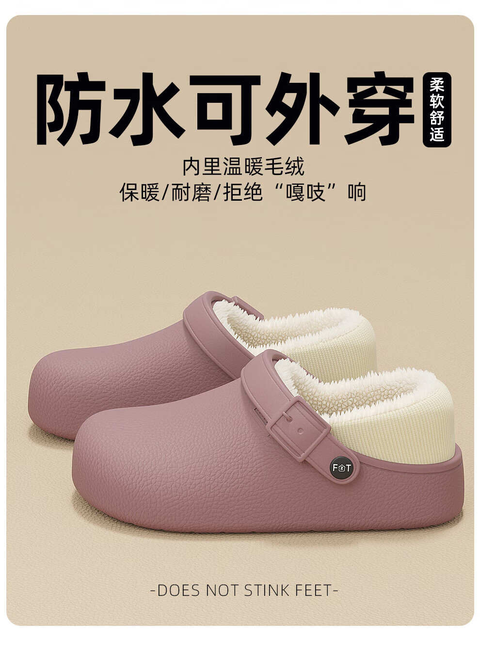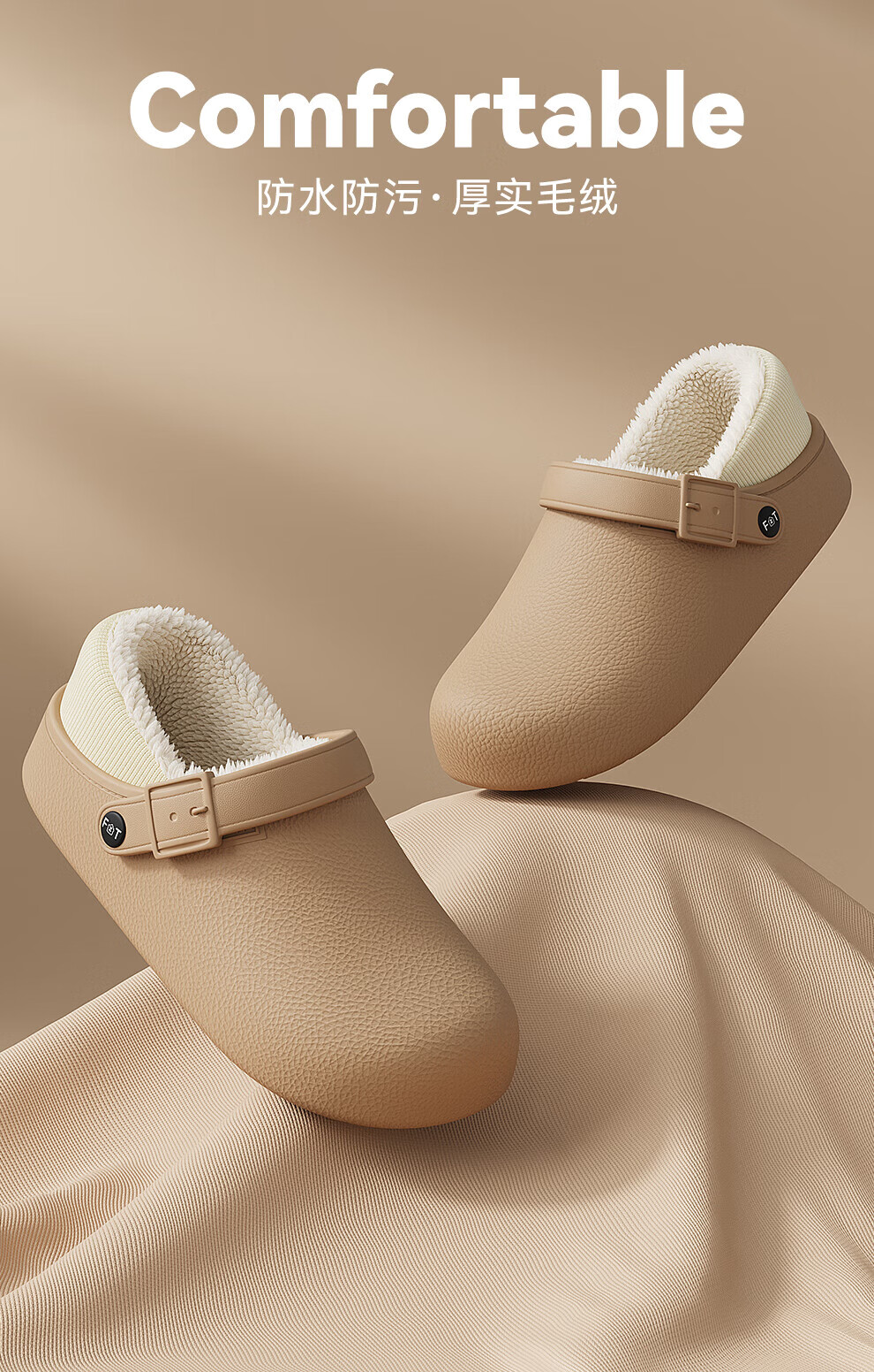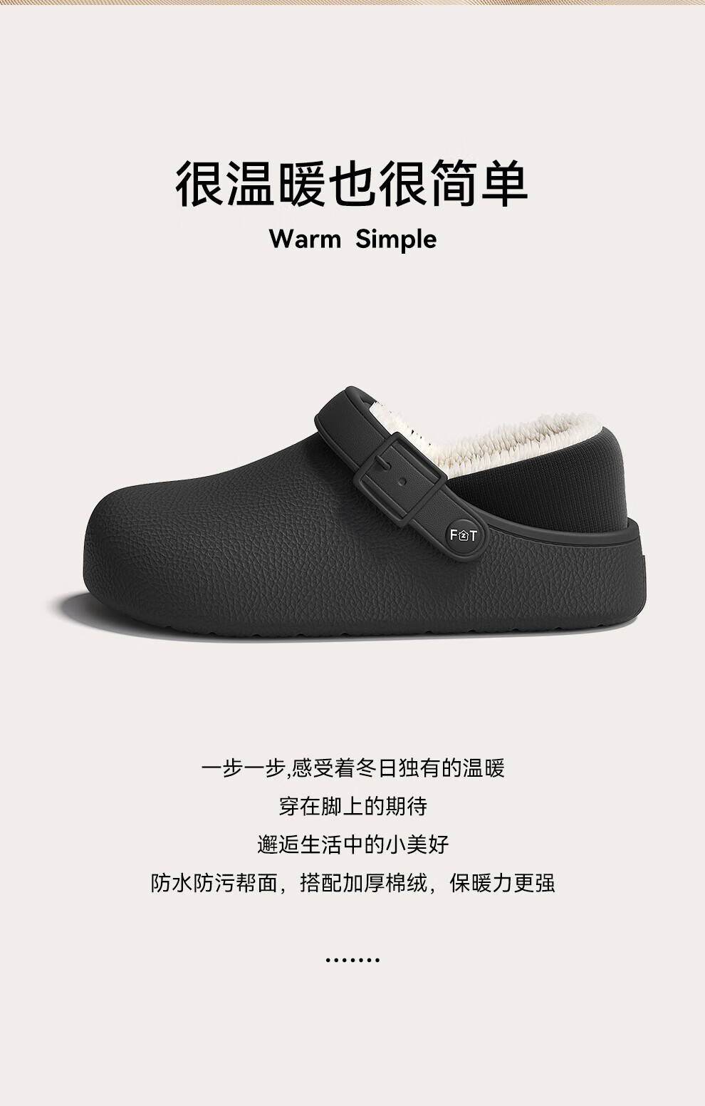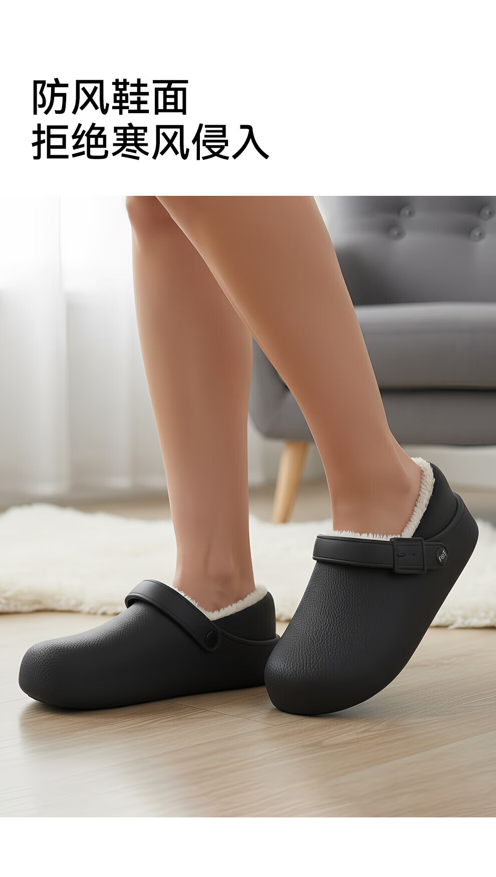 FZT防水棉拖鞋女士冬季2025年新款医护可用防污居家室外男款休闲百搭 黑色 35-36 标准码