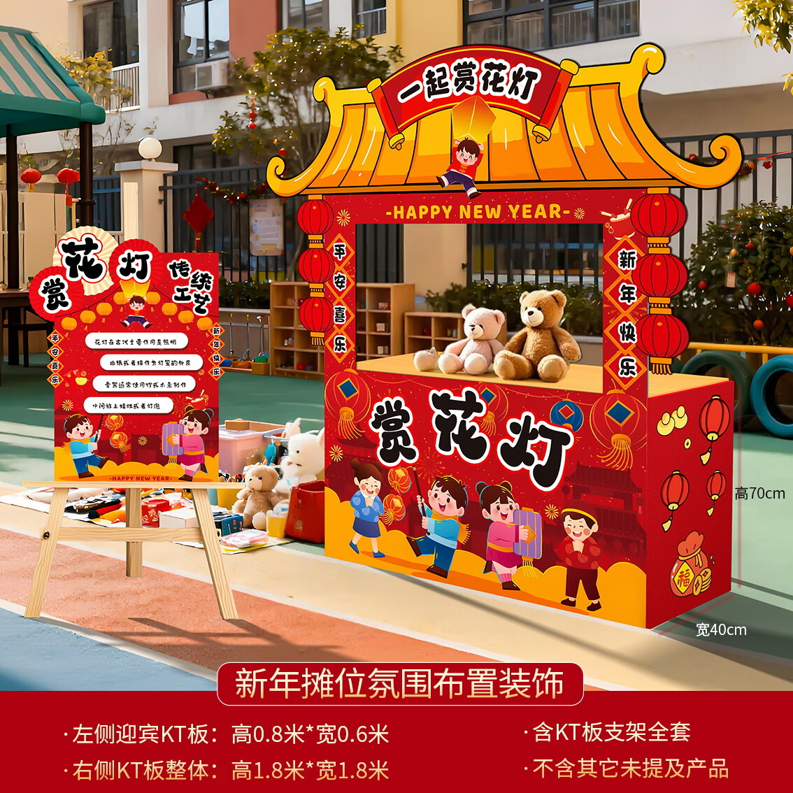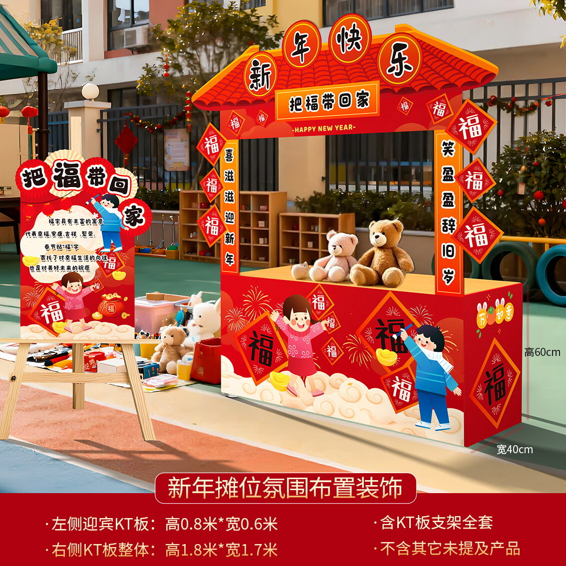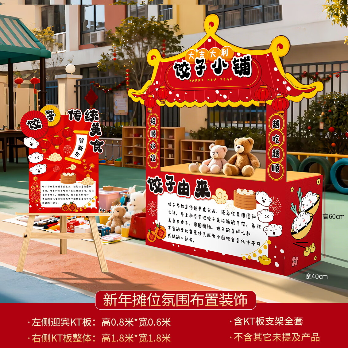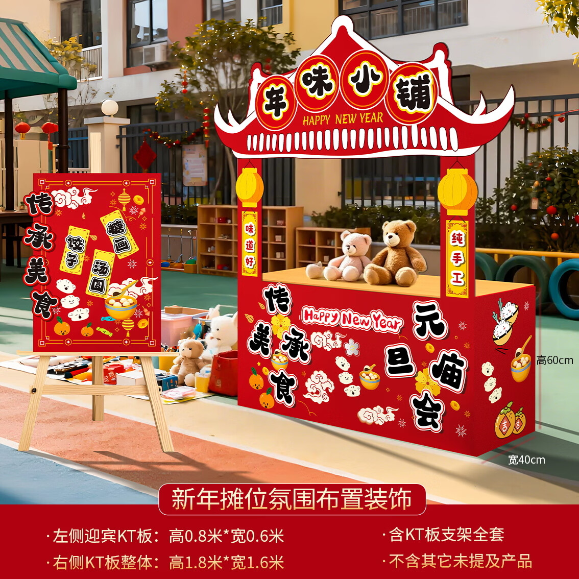 玺飞新年义卖摊位装饰庙会摊位KT板幼儿园新年环创布置新年环创背景 当日发/20款新年摊位含全套支架