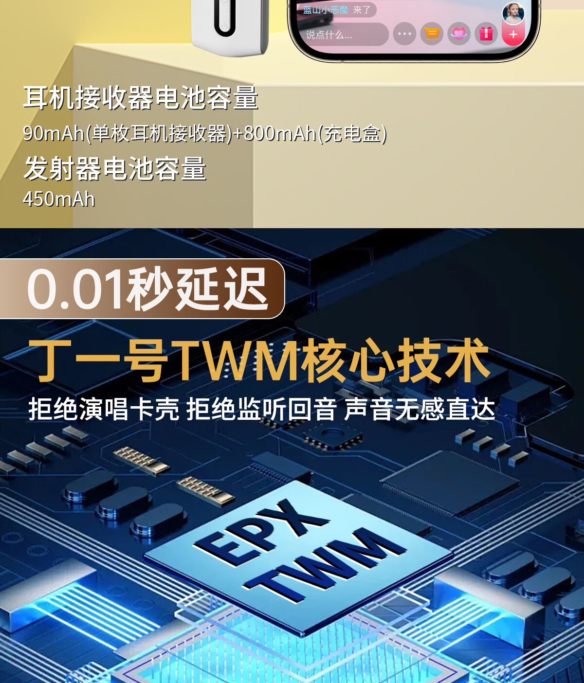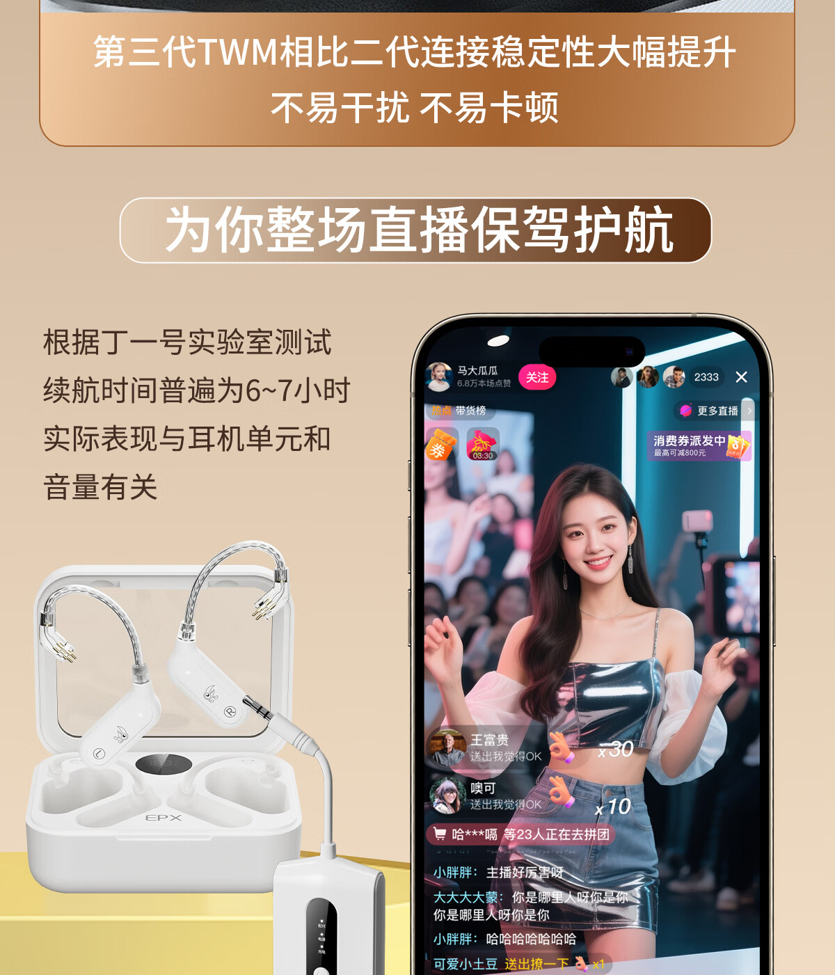 丁一号26年全新EPX真无线监听直播耳机平台主播直播K歌耳返设备耳挂式声卡网红专用高清无损音质立体声 【EPX单直播耳机平台】无发射器
