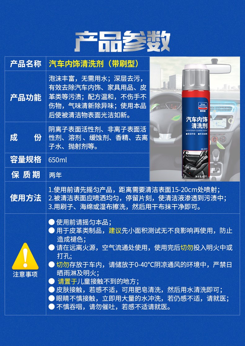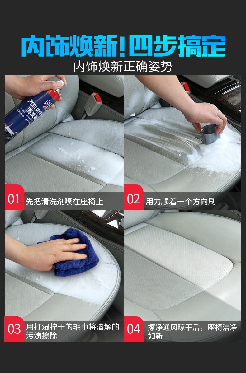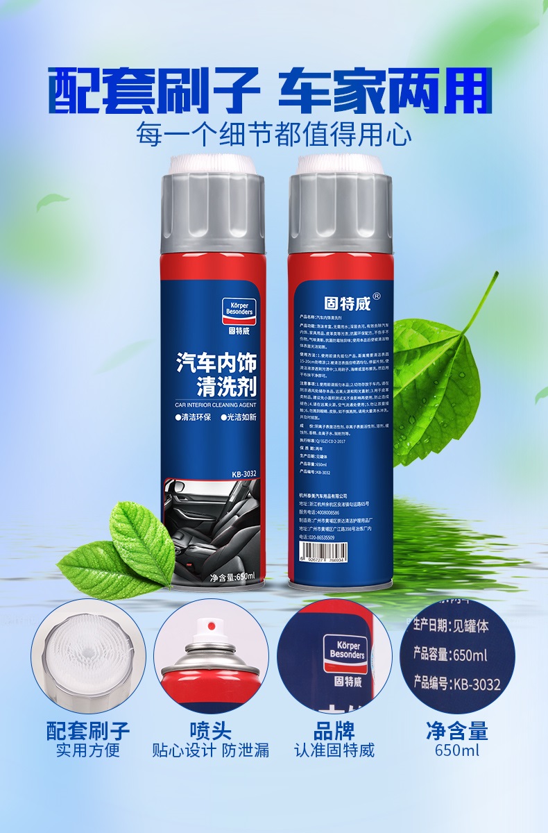 固特威 汽车内饰清洗剂多功能泡沫清洗剂清洁车内织物顶棚皮座椅皮革 内饰清洗剂 650ml 2瓶
