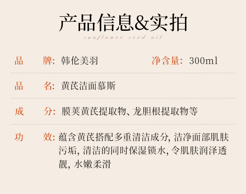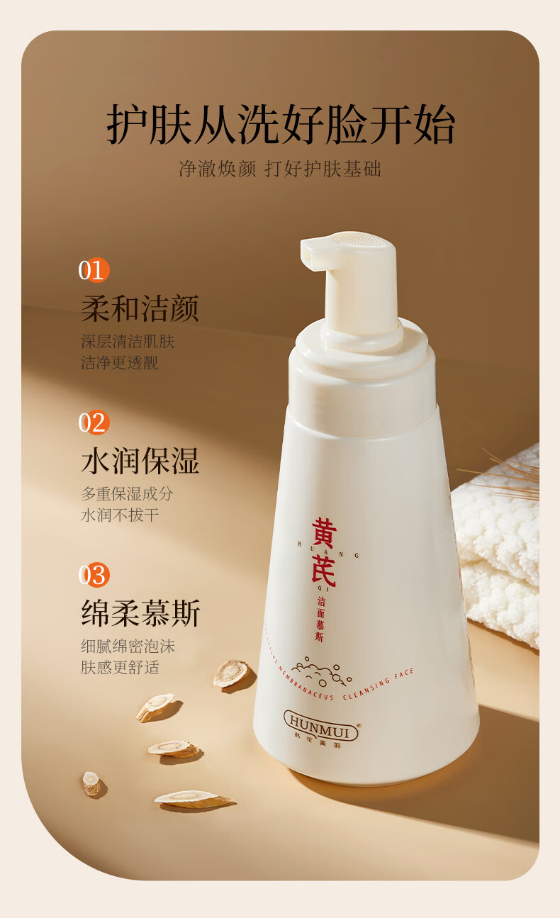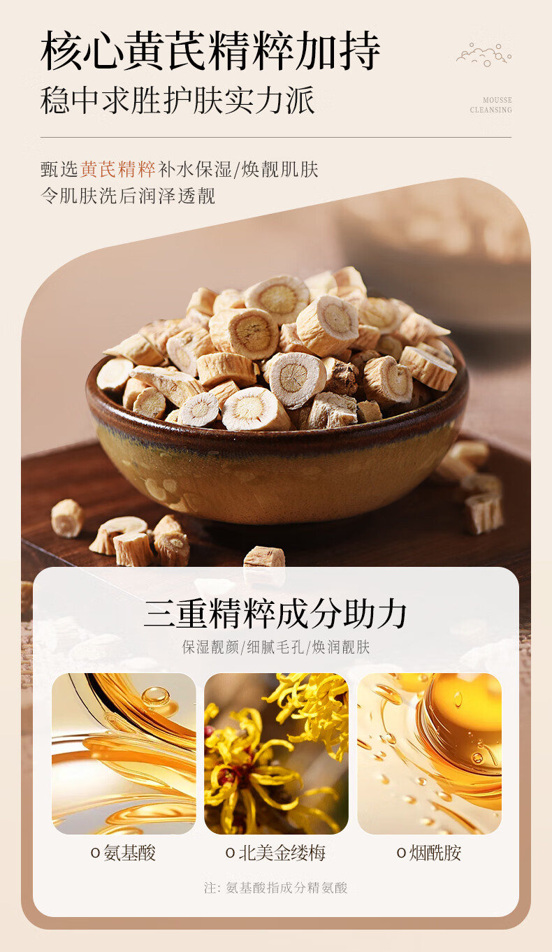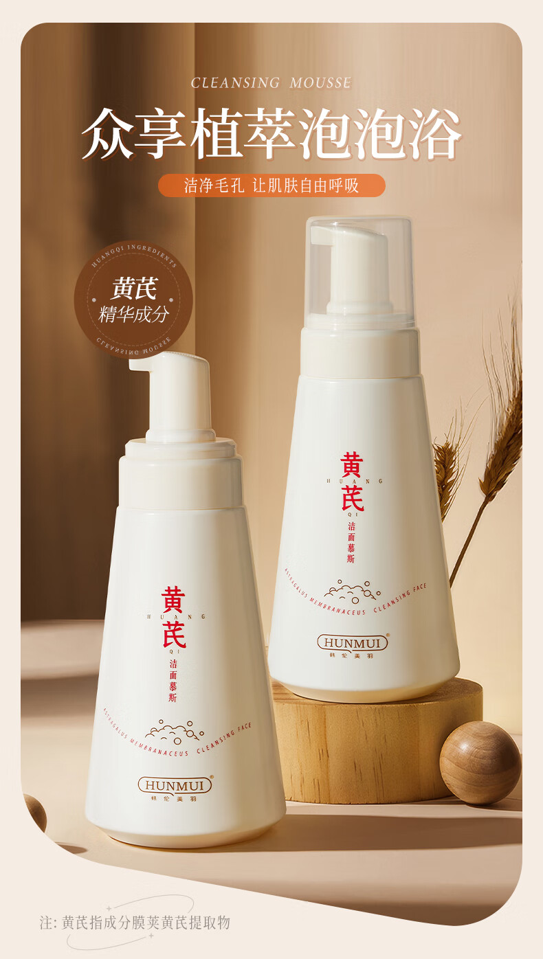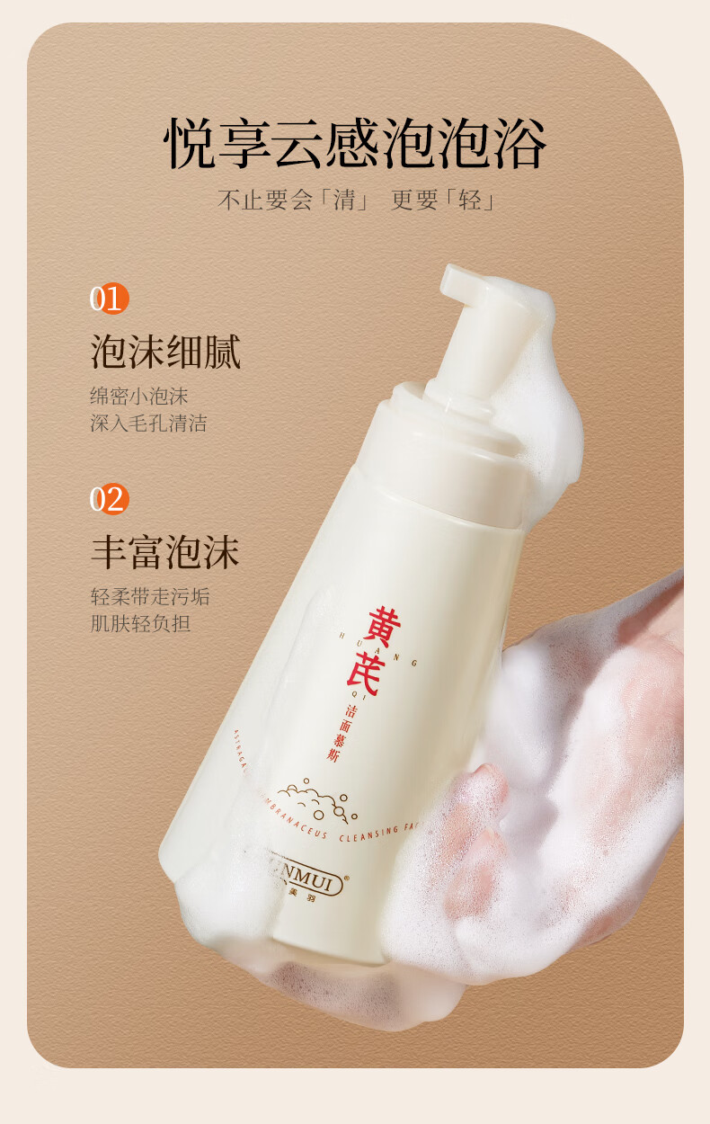韩伦美羽黄芪洁面慕斯洗面奶(k老首选洁面)深层清洁温和保湿控油男女通用 【两瓶】黄芪洁面慕斯共 600g