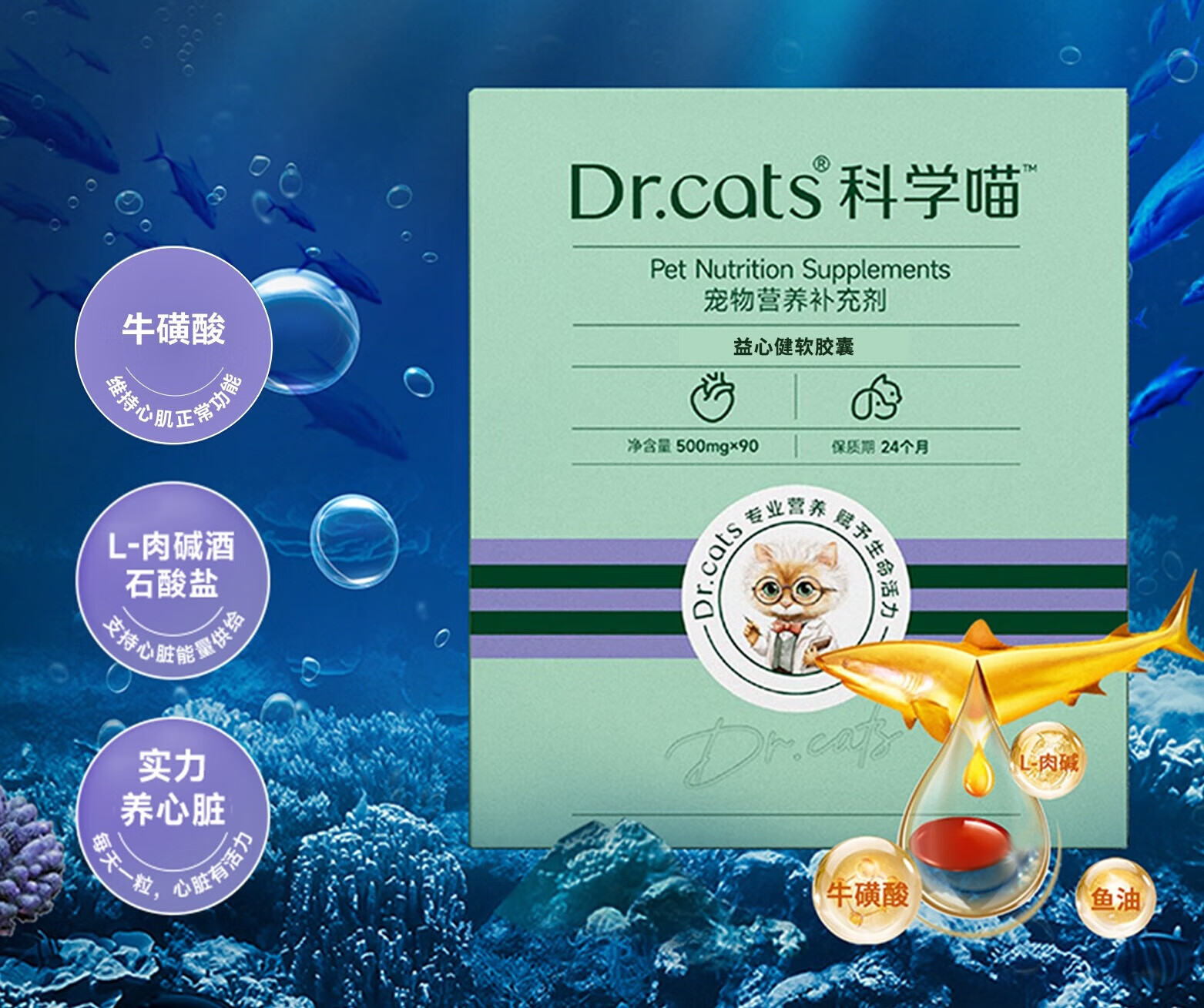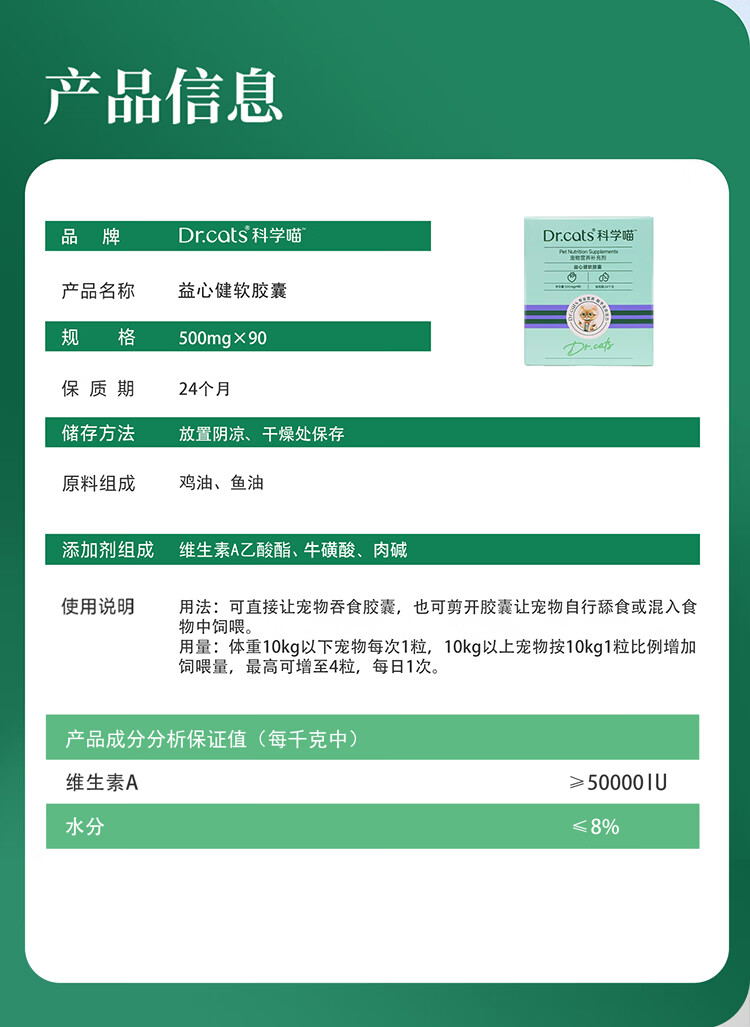 科学喵Dr.cats益心健含牛磺酸 L-肉碱强健护心肌抗氧化【年货节】 含牛磺酸 益心健180粒+益心健20粒+活力宝14粒+湿巾
