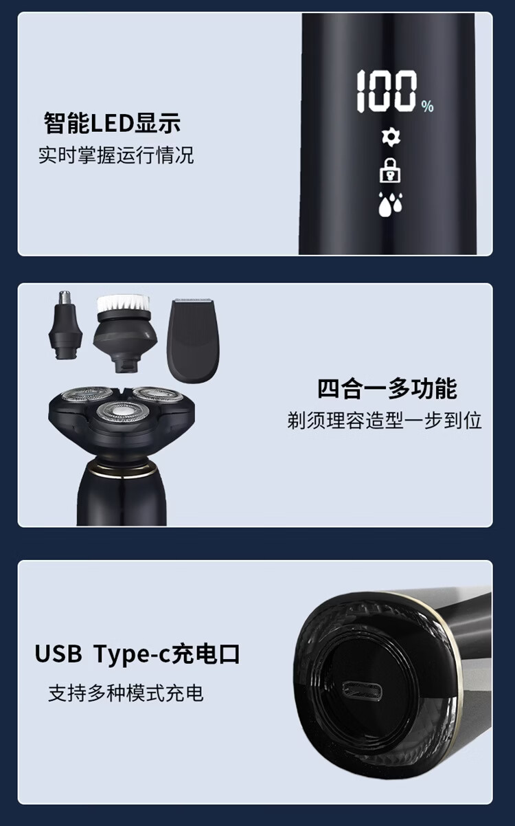 欧点电动剃须刀男士剃胡刀 全身水洗胡须刀 鬓角修剪刀 快充胡子刀 LED显示 不含充电插头 快充长续航 【快充|杀菌消毒|智能显示】BOX828礼盒装