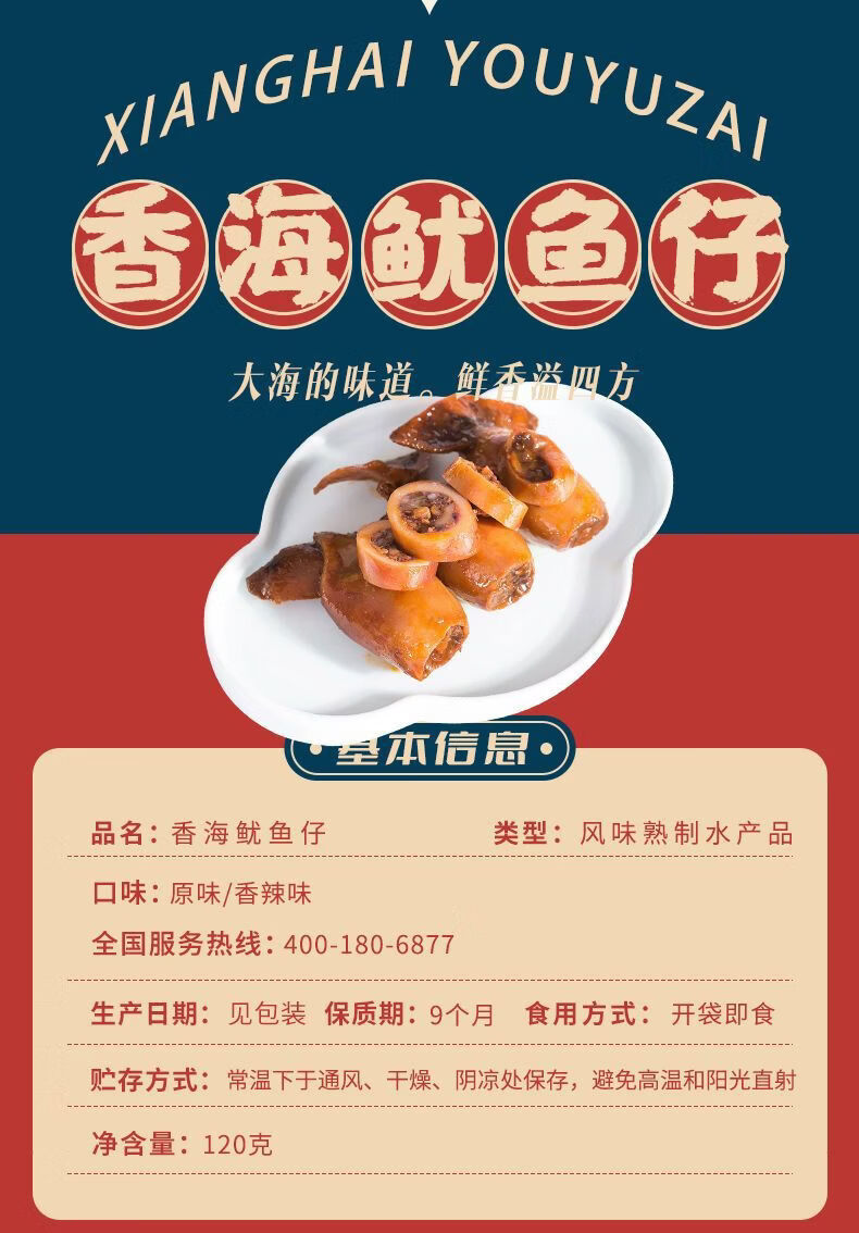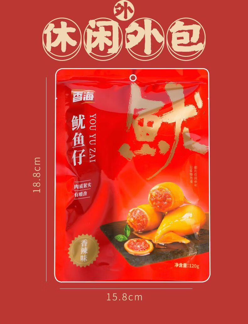 香海新品鱿鱼仔120g袋装香辣小鱿鱼须整只即食海味零食小吃海鲜批发 尝鲜装120g香辣味