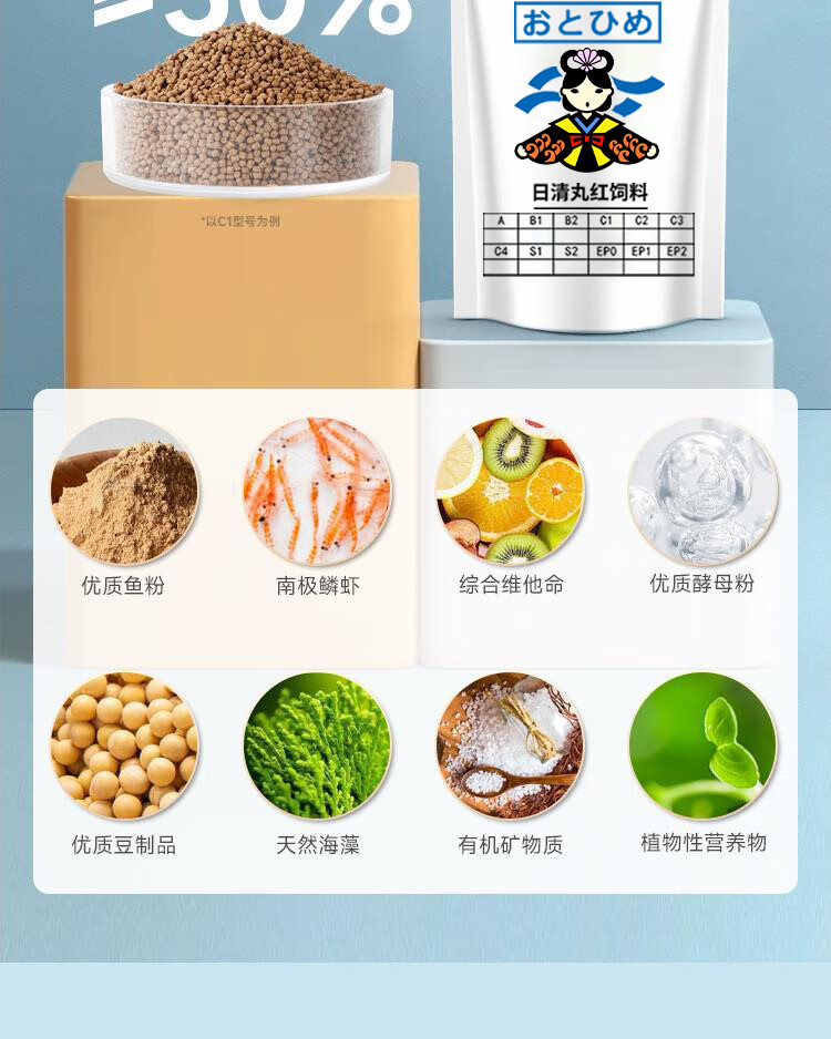 日清丸红饲料日清丸红鱼食小颗粒通用型六角恐龙鱼饲料孔雀鱼金鱼观赏鱼鱼粮C2 成鱼C2一瓶(50克)