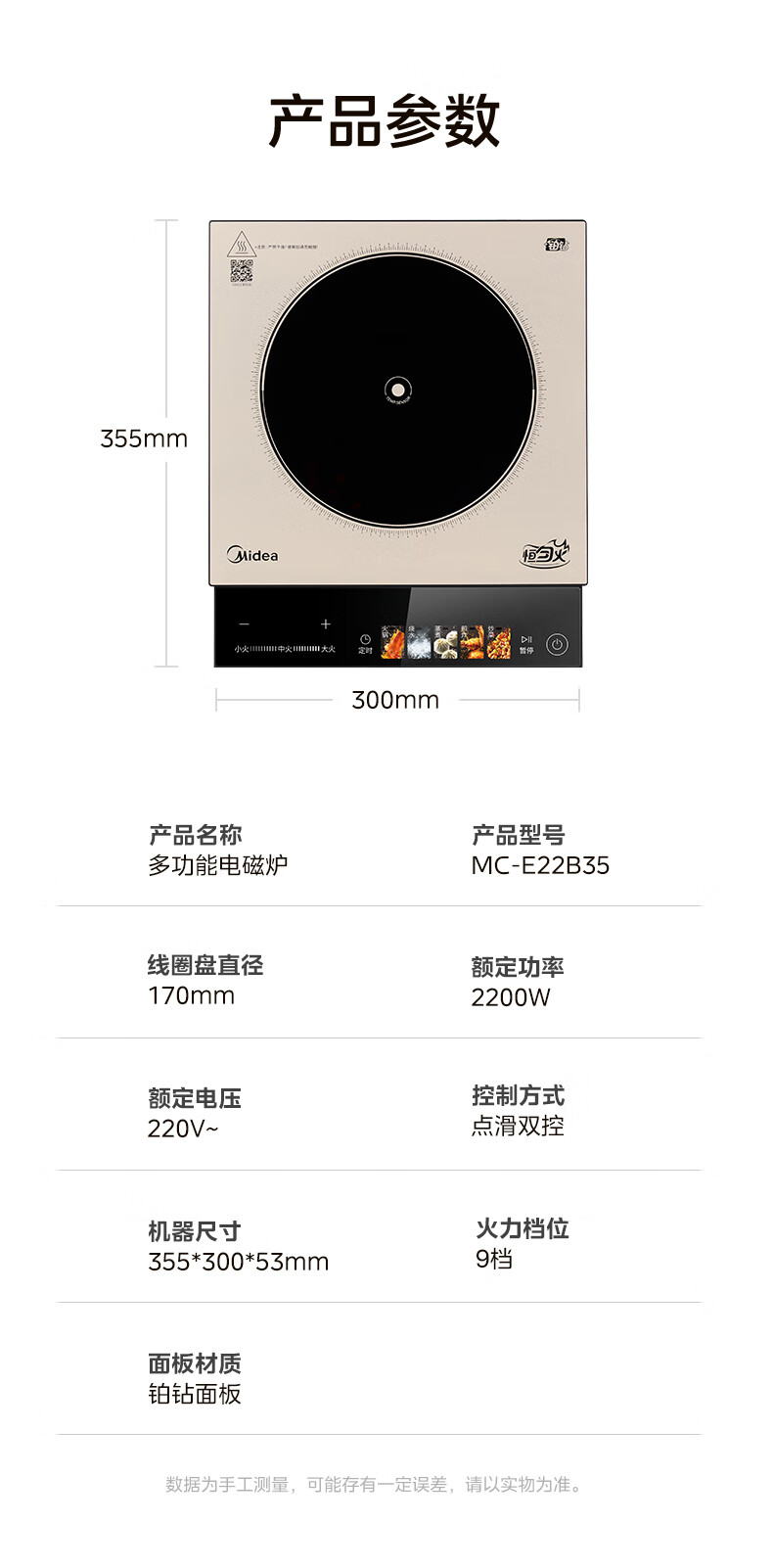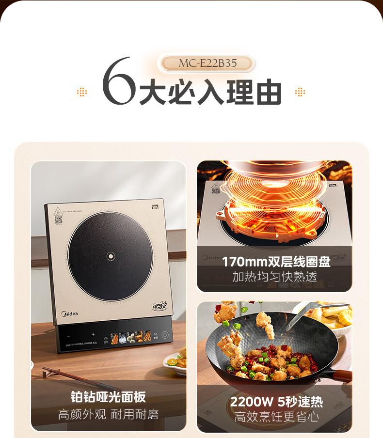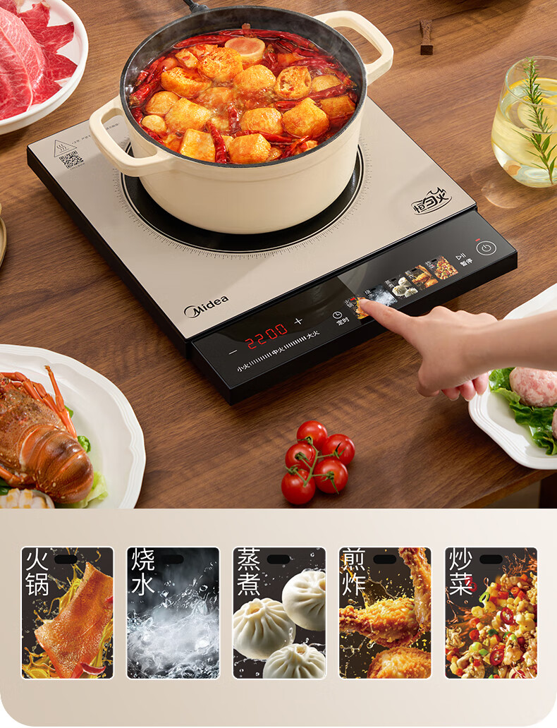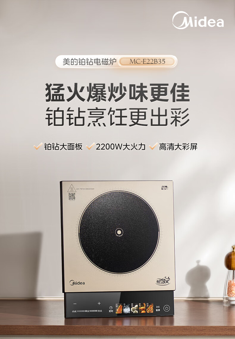 美的(Midea)铂钻系列新款家用大功率猛火火力爆炒烧水打火锅多功能电磁炉电陶炉 MC-E22B35 【新品】2200W猛火爆炒