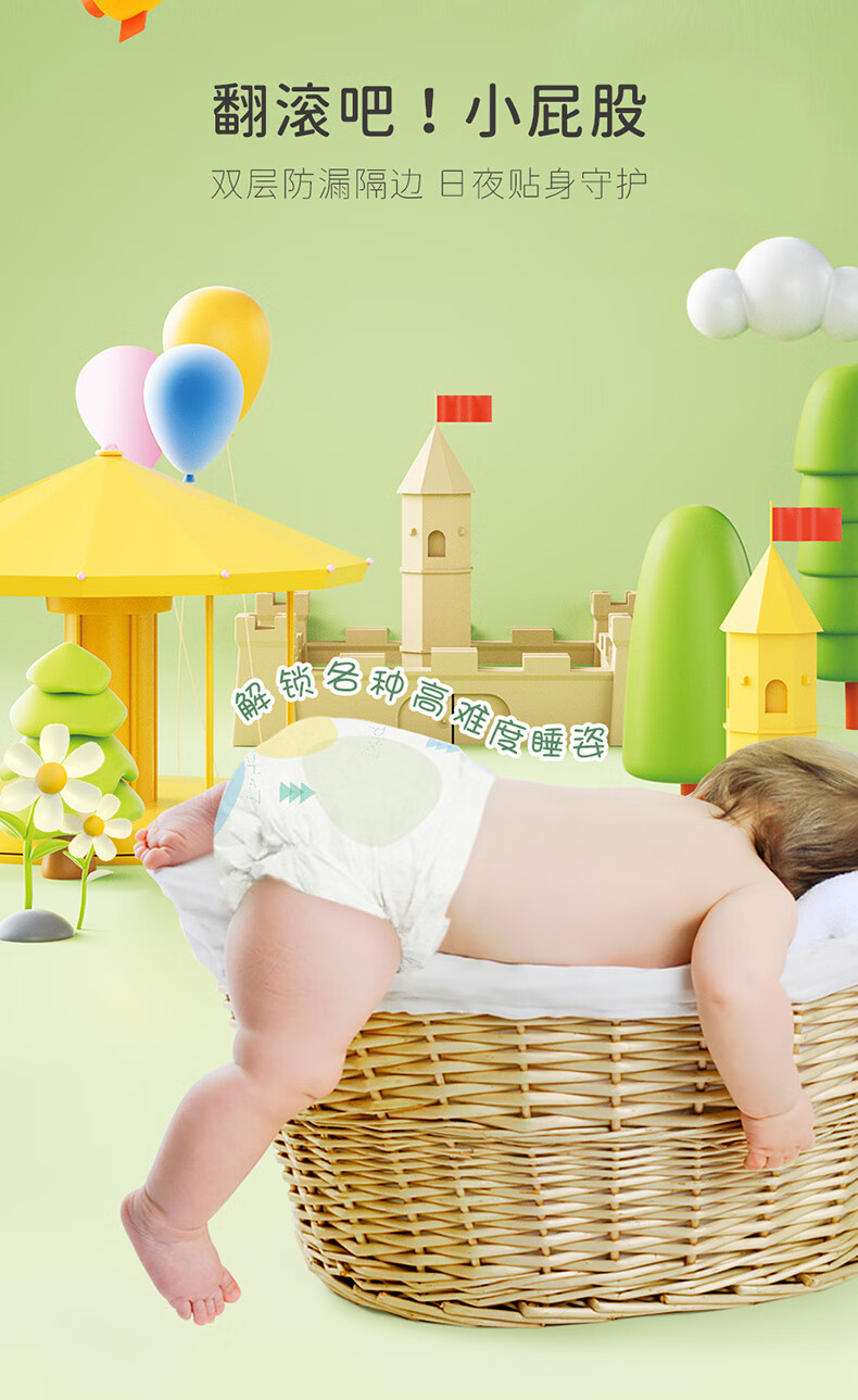 佳婴氧气森林纸尿裤超薄婴儿尿不湿弱酸亲肤男女宝宝通用干爽透气 S码104片0-5KG