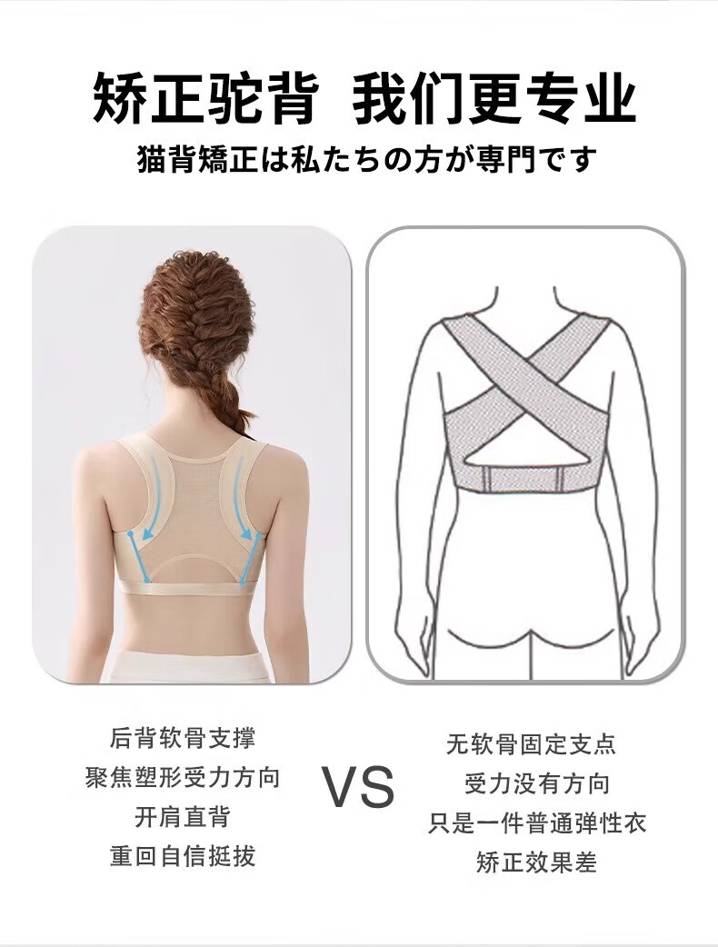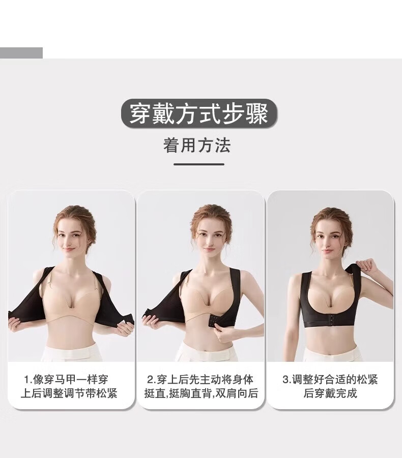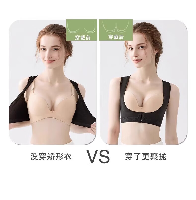 CUYPAS日本驼背矫正器女隐形美背坐姿纠正含胸驼背矫姿带纠正脊椎侧弯 【黑色】无痕透气直背聚拢 XL【120-135斤】