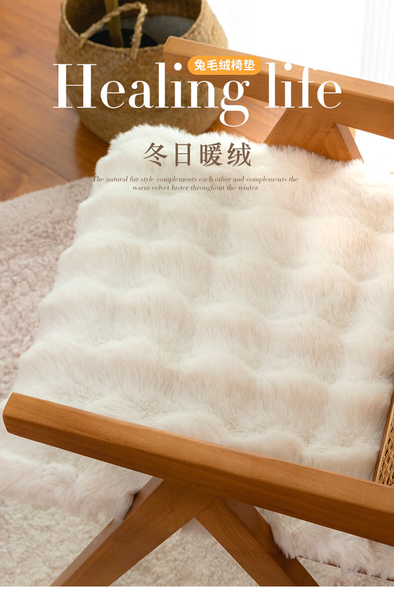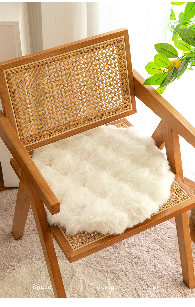 同依兔毛绒保暖坐垫冬季椅子垫办公室久坐屁垫餐椅凳子垫屁股座垫椅垫 圆形-兔兔绒天蓝【可拆洗】 40*40cm中号