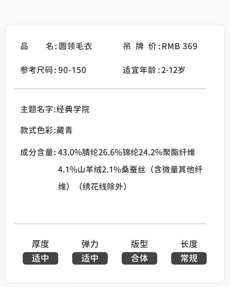 丽婴房儿童针织毛衣复古学院风春季款针织毛衣春季上衣2026春新款 藏青 90 cm