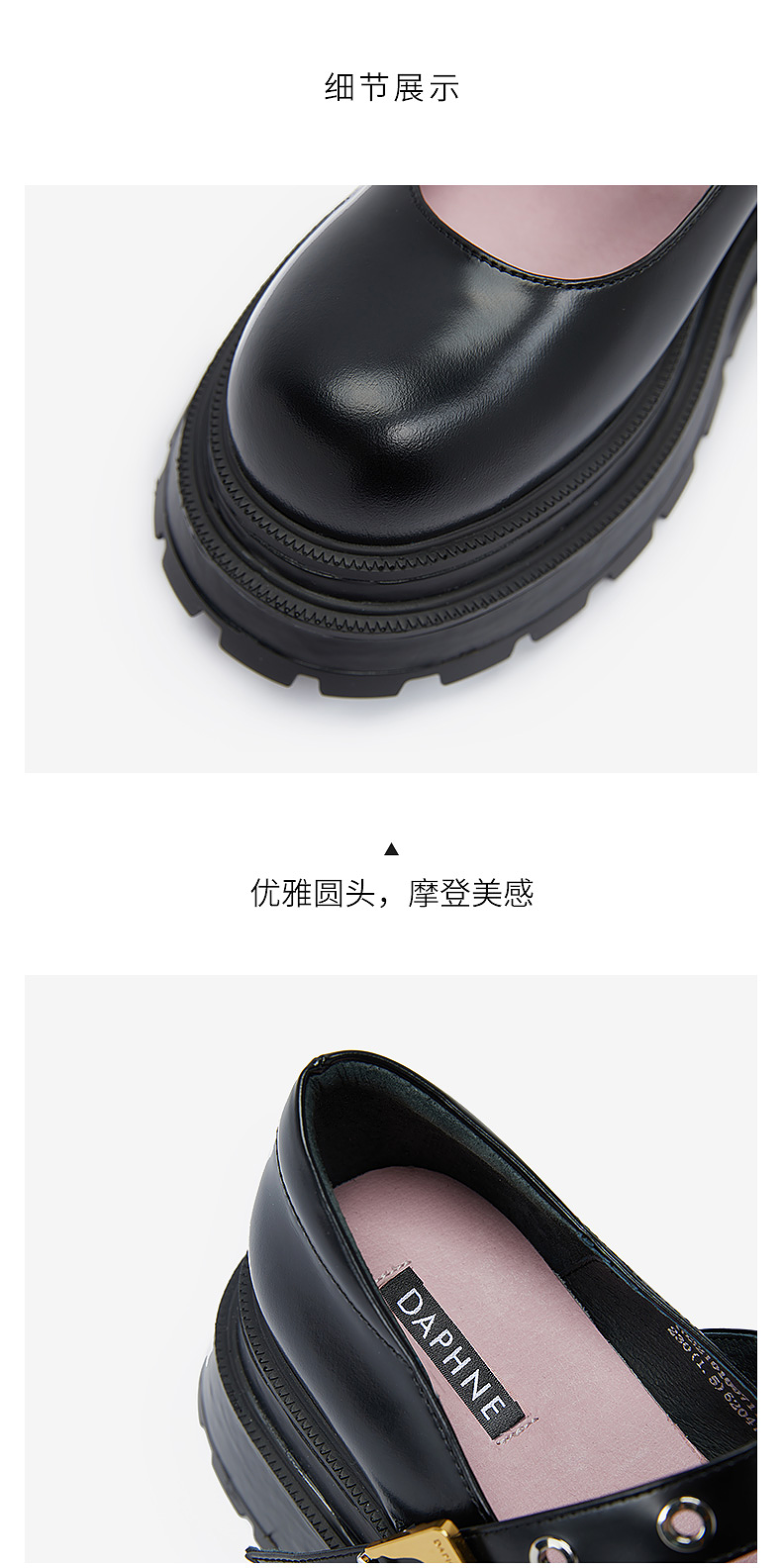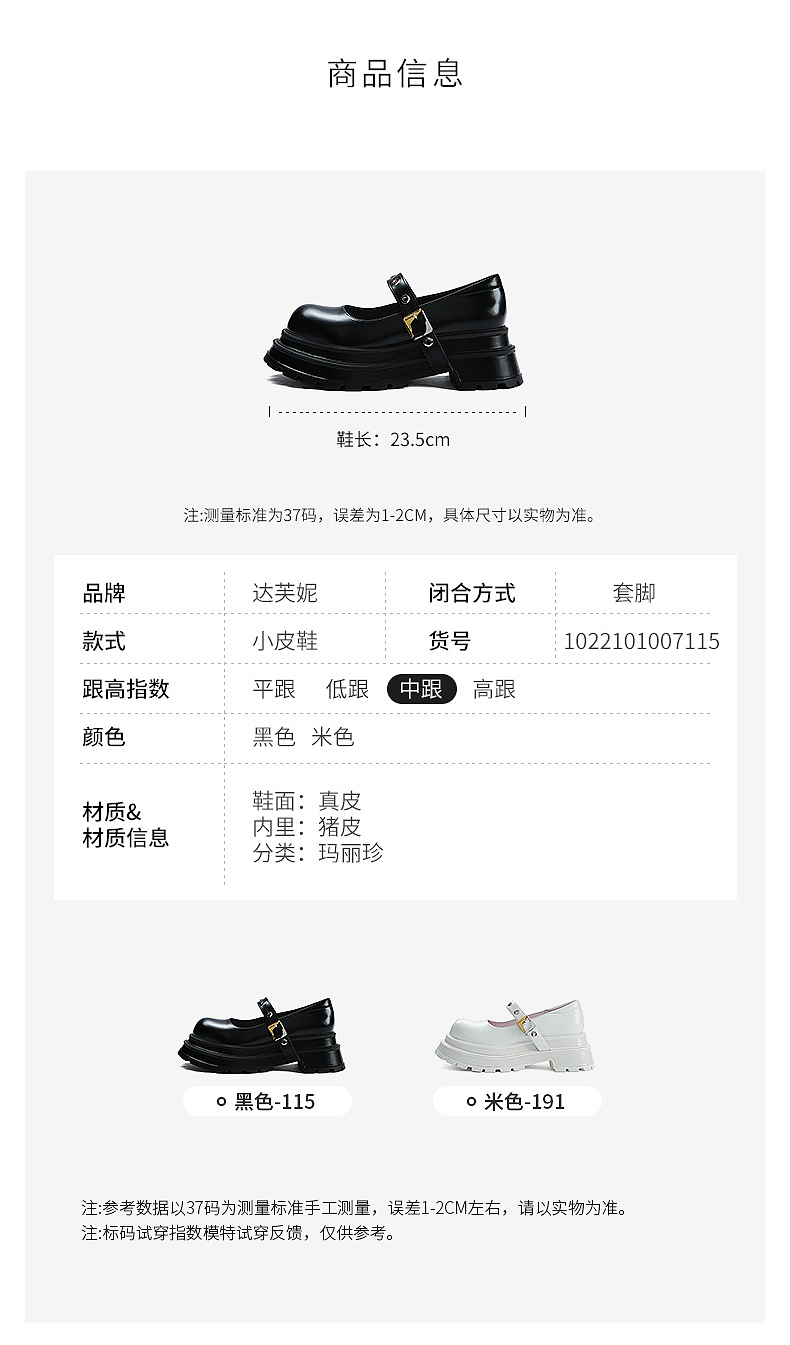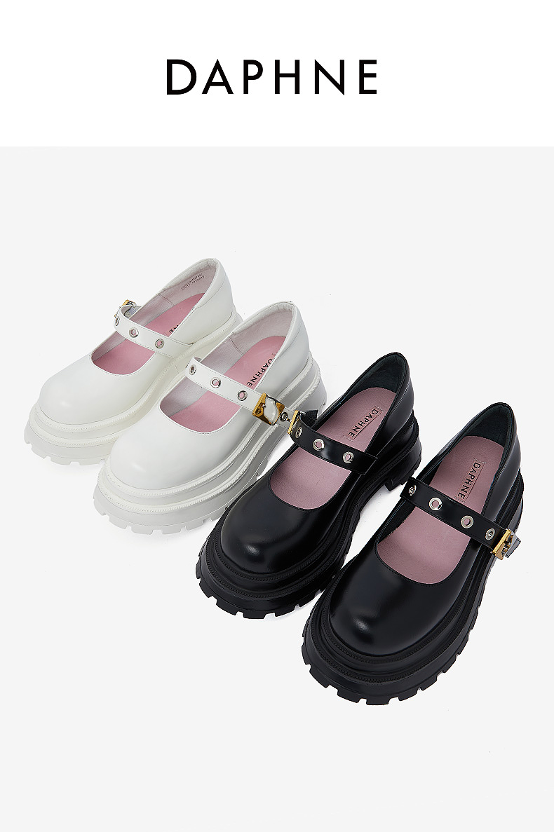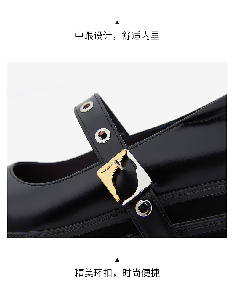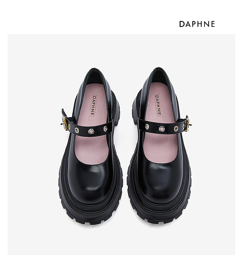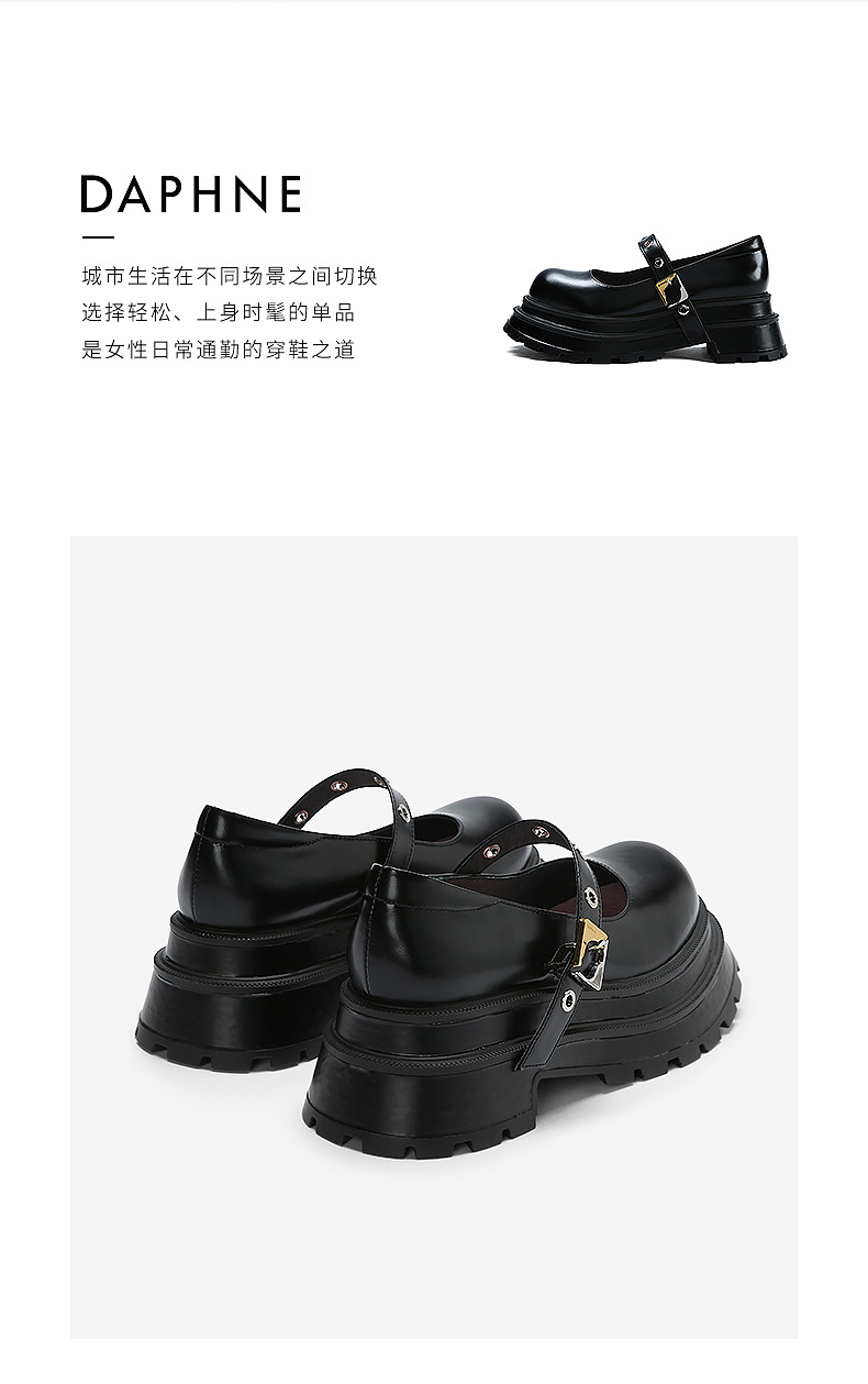 达芙妮【方糖系列】真皮玛丽珍鞋女机能风2022春季新款限量版单鞋QJ1 黑色 37