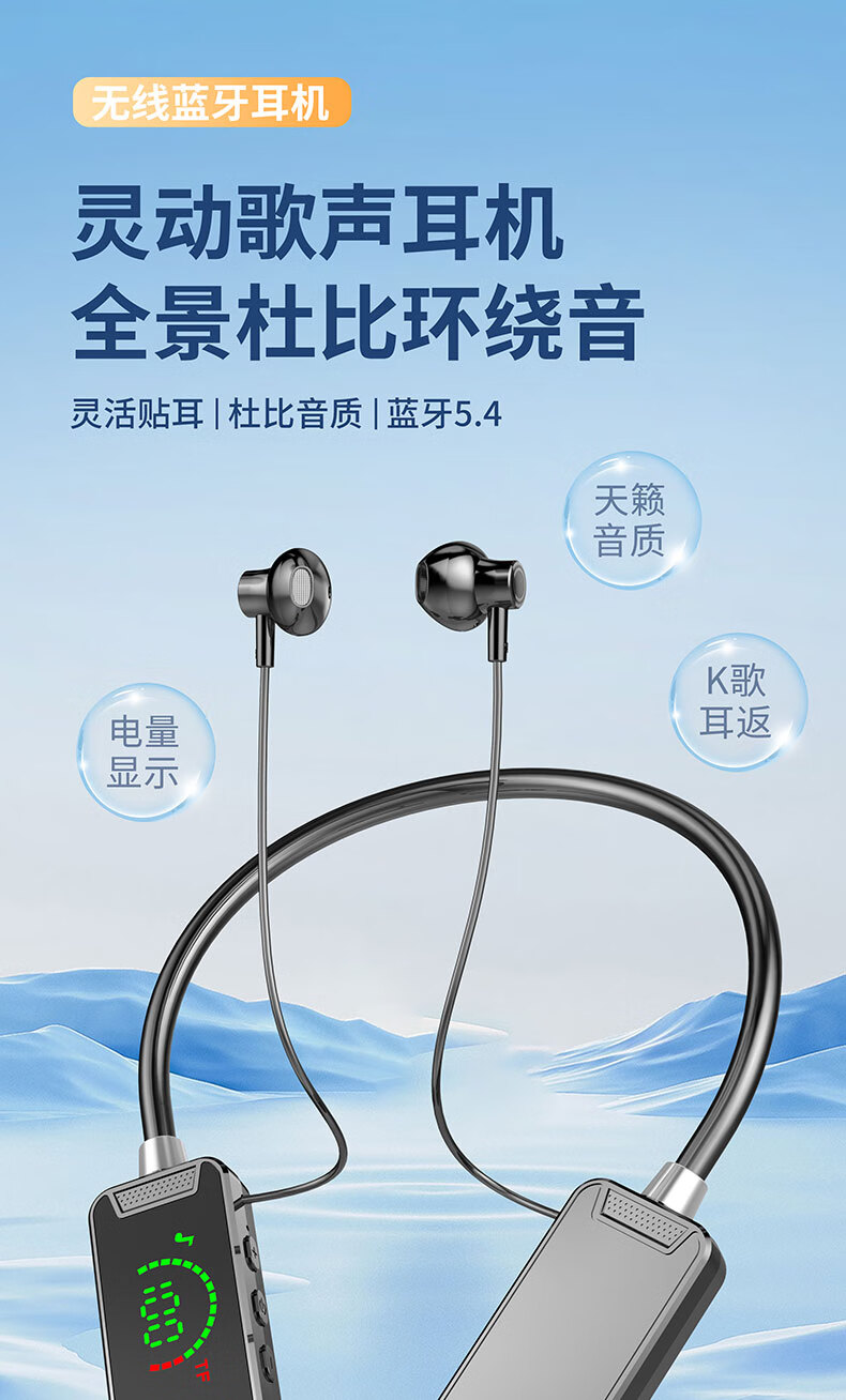 麦拉森【严选百货】无线蓝牙耳机挂脖入耳式K歌耳返直播带麦克风游戏运动降噪手机通用 橙色顶峰旗舰 K歌模式+游戏模式