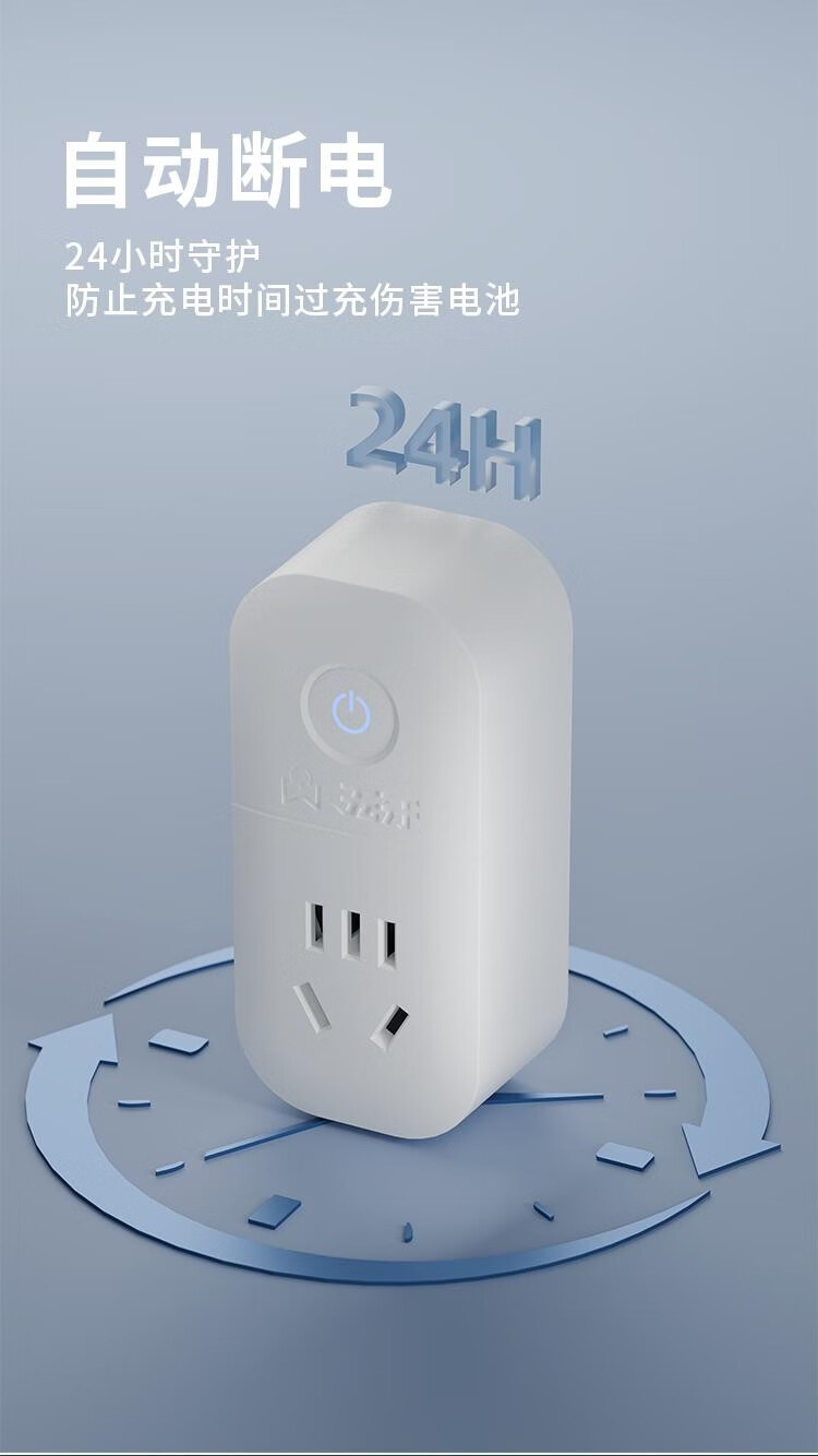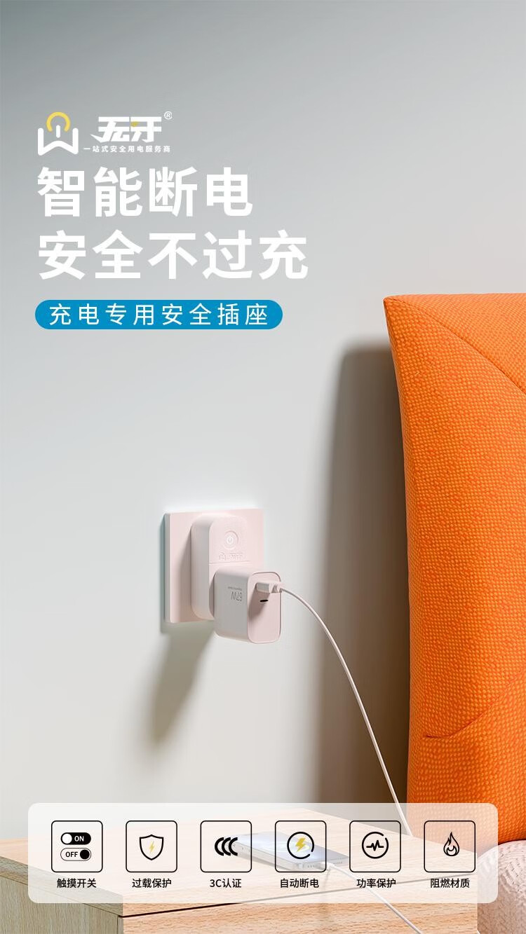 无牙充电专用安全插座24小时智能守护充满自动断电过载保护不漏电正品 三个装【3C认证+自动断电】 24小时安全守护丨杜绝隐患