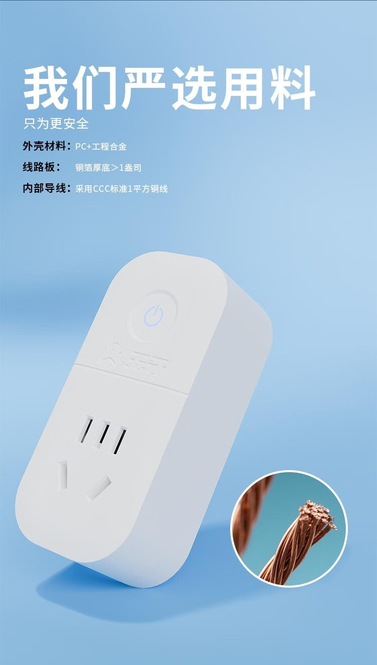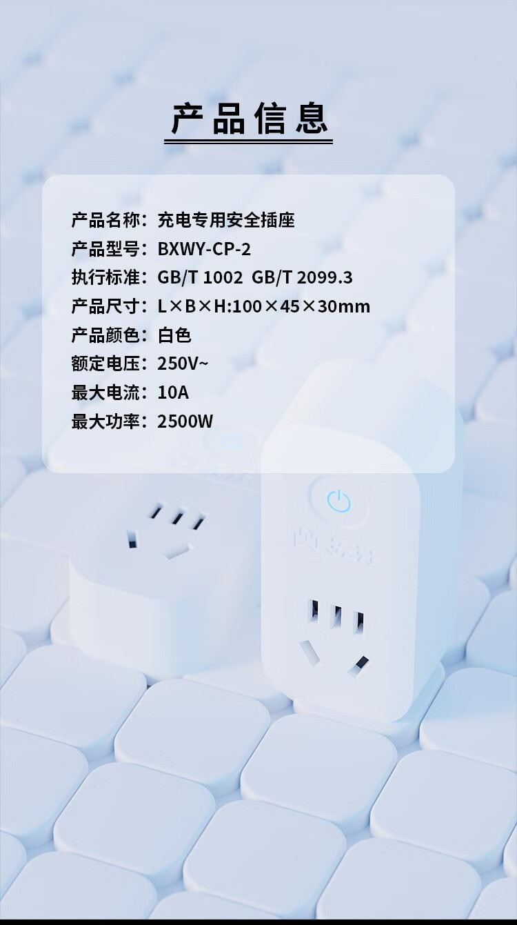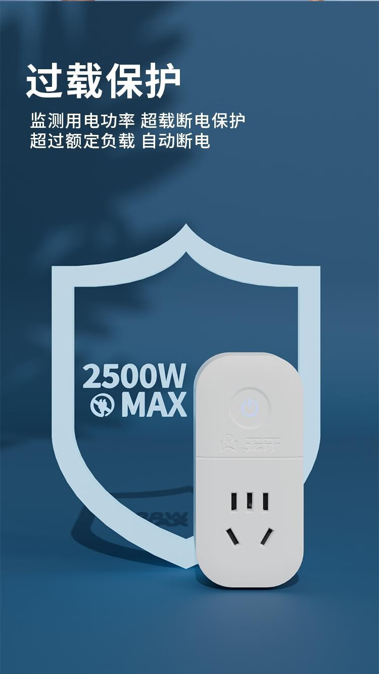 无牙充电专用安全插座充满自动断电智能检测3c认证功率保护过载保护 无牙智能插座【1个】