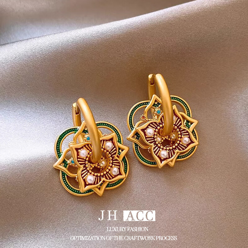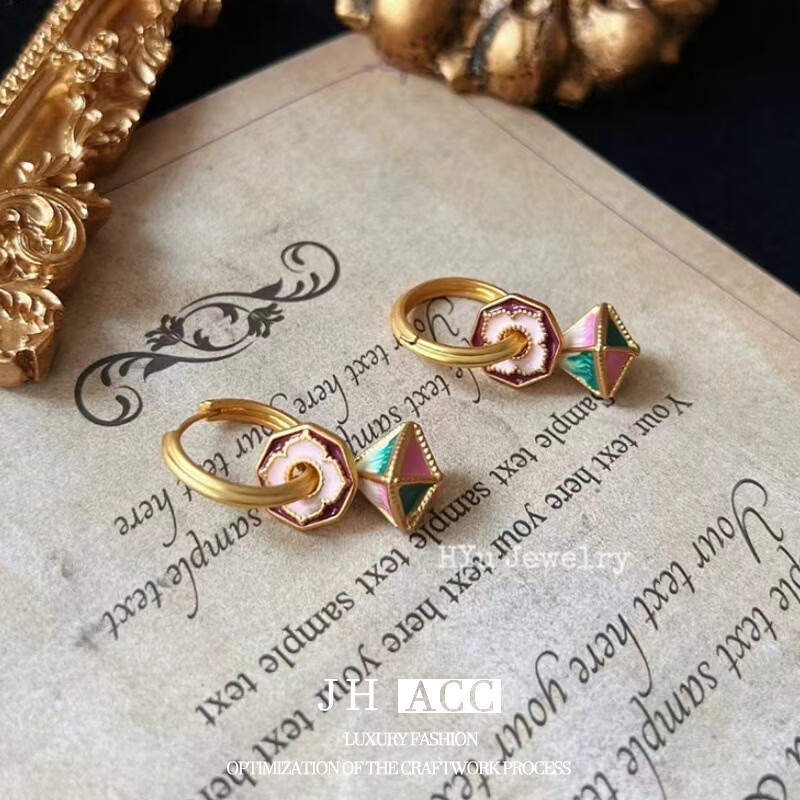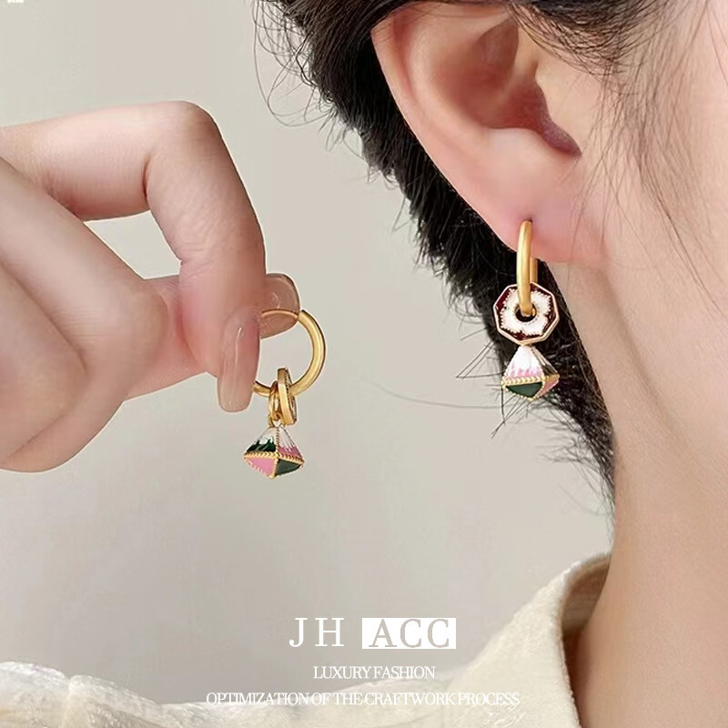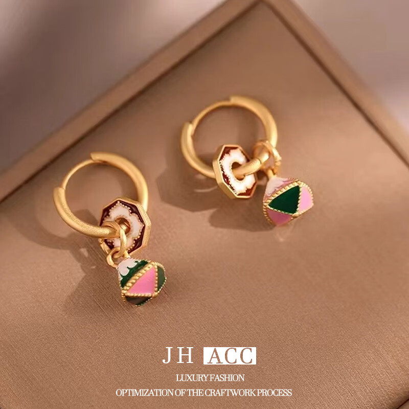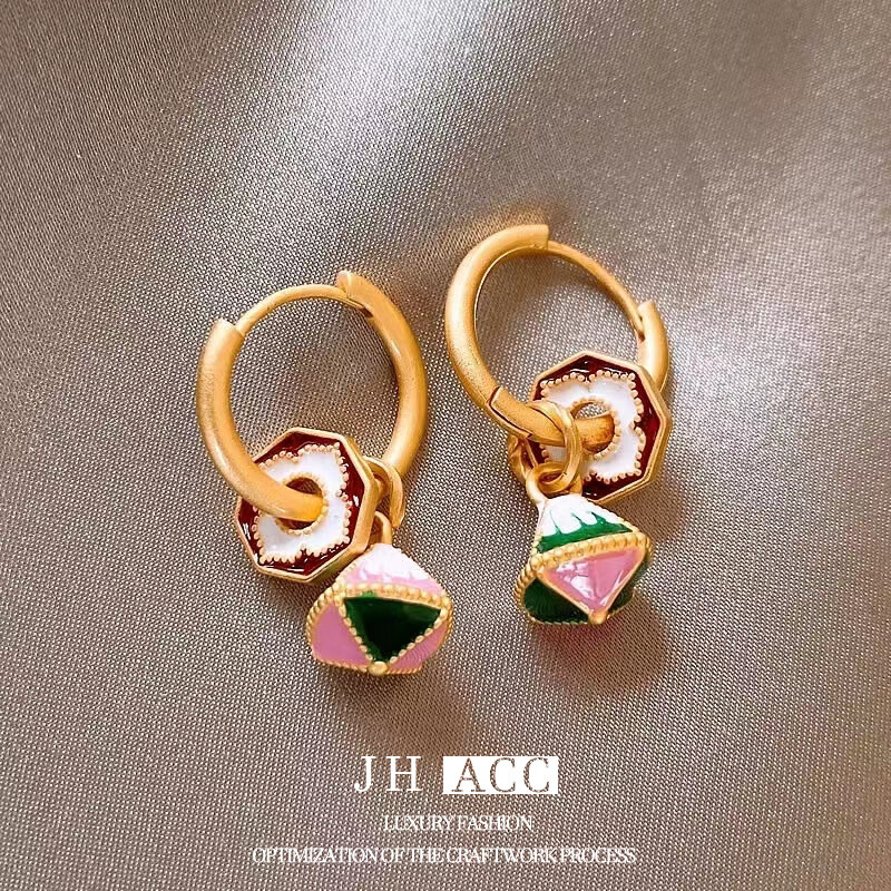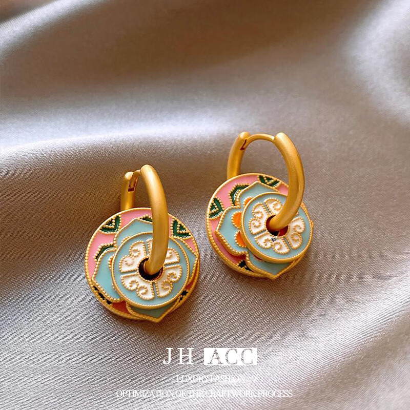 佳焰s925国潮珐琅扇子耳环女彩绘多戴设计新款高级感礼物女生 珐琅彩色滴釉花形耳环