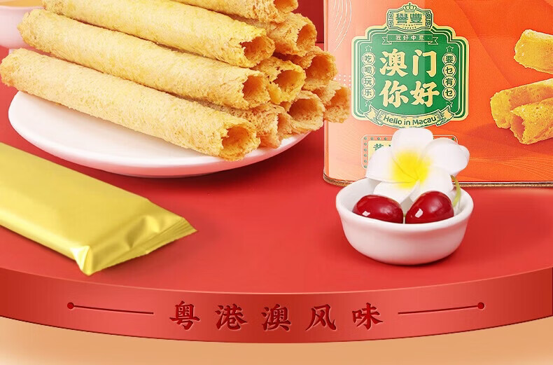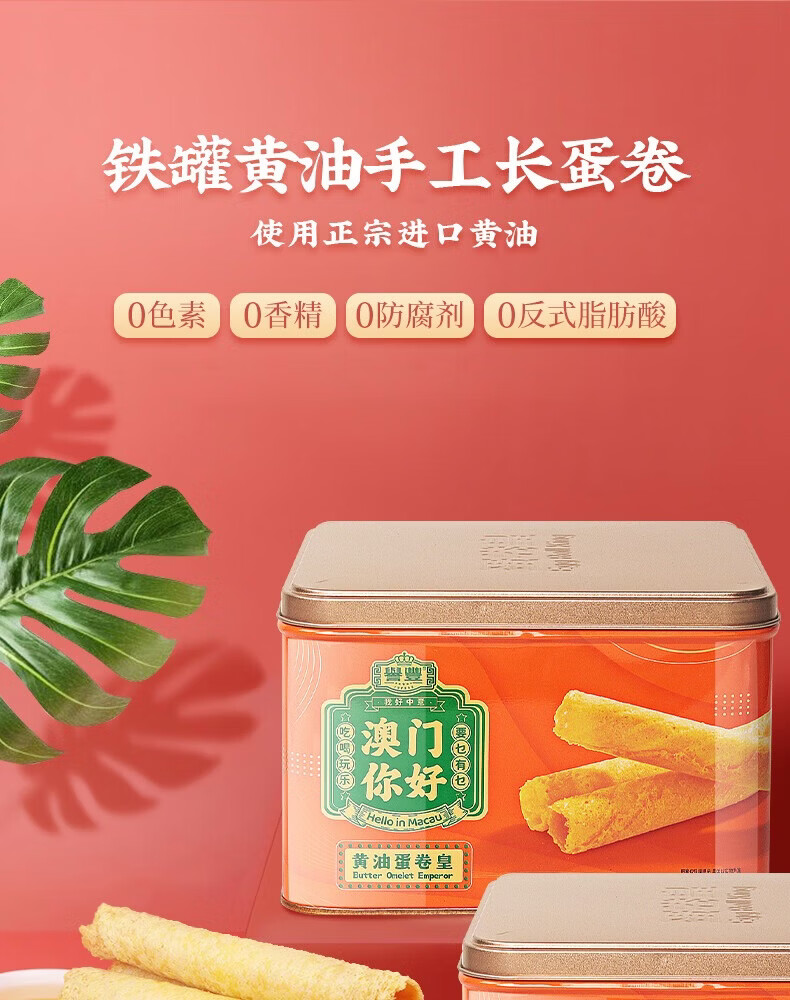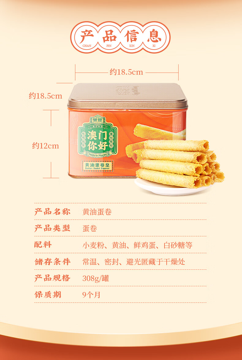 澳粤湾无添加手工黄油鸡蛋卷308g/罐 香港澳门特产广东经典老式零食送礼 2罐:黄油蛋卷皇【赠礼品袋】