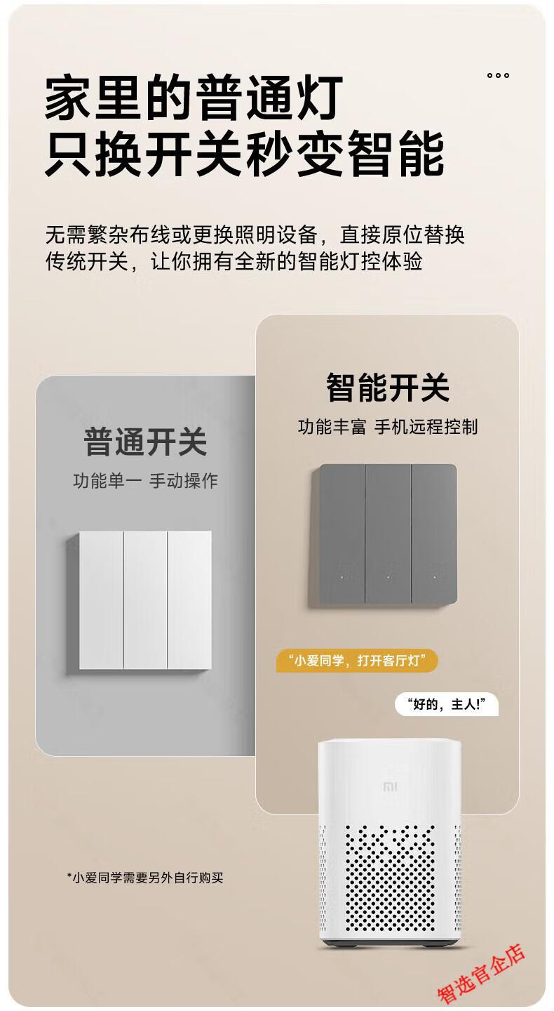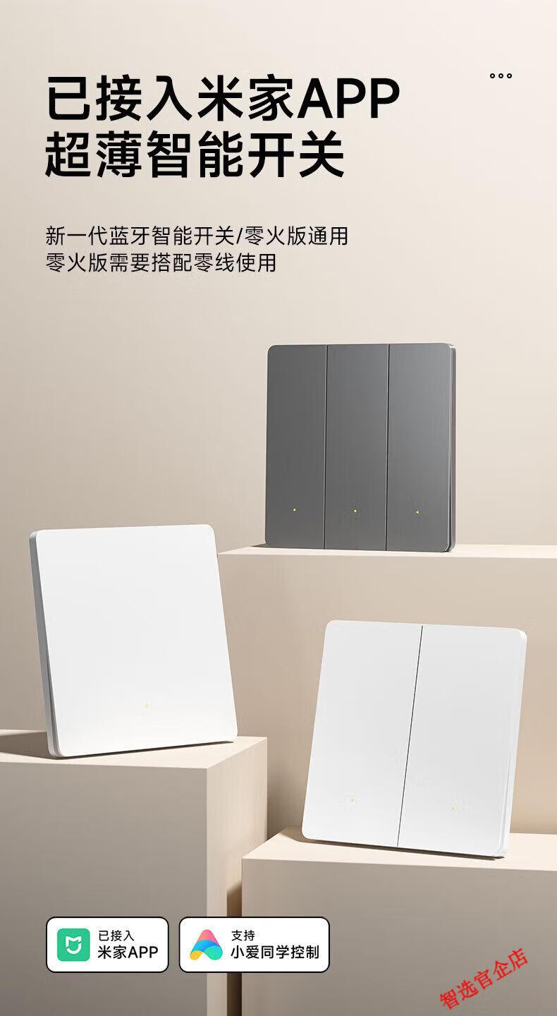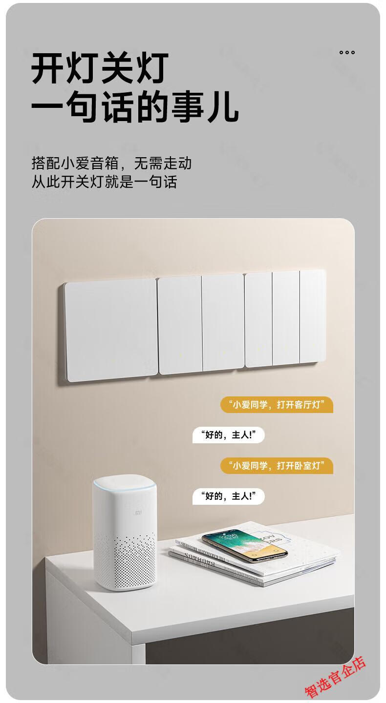 小米(MI)已接入米家APP智能控制面板支持小爱同学控制无线远程控制开关 一开零火版【需零线】灰色