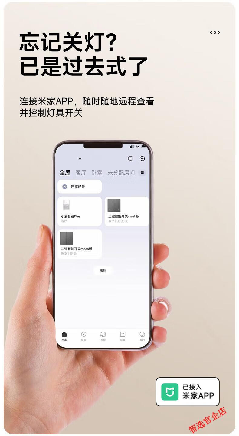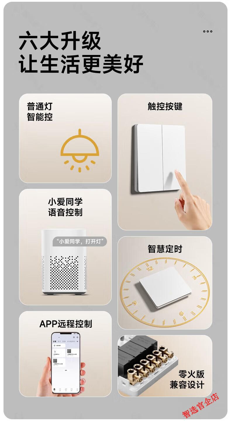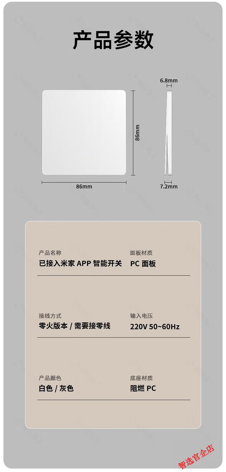 小米(MI)已接入米家APP智能控制面板支持小爱同学控制无线远程控制开关 一开零火版【需零线】灰色