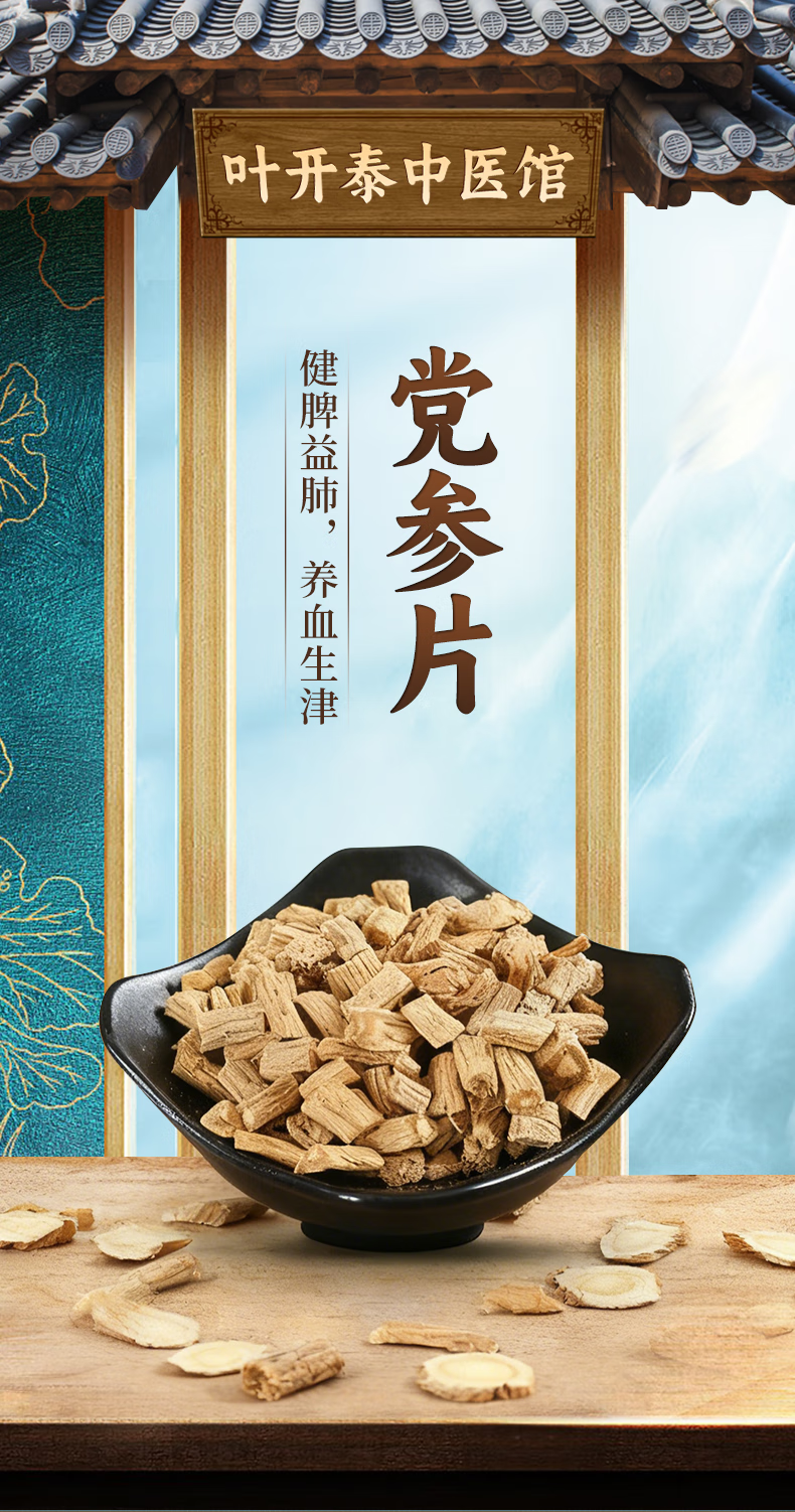 叶开泰中医馆 党参片 中药饮片 健脾益肺 养血生津 党参切片可泡水泡茶办公室茶饮可食用 中药房按方按需抓中药 党参片1000g