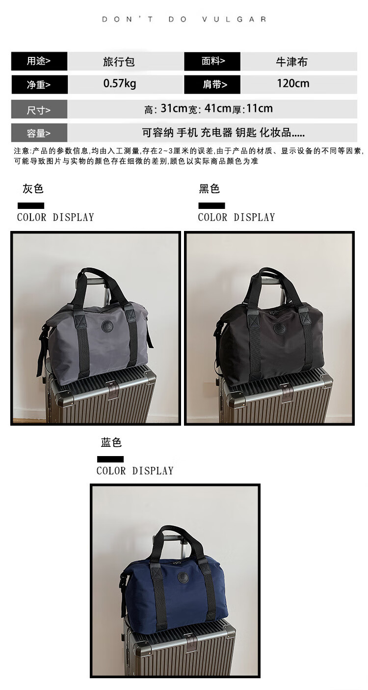 【工厂直发】新款男单肩出差旅行包大容量学生逛街购物行李袋女户 黑色