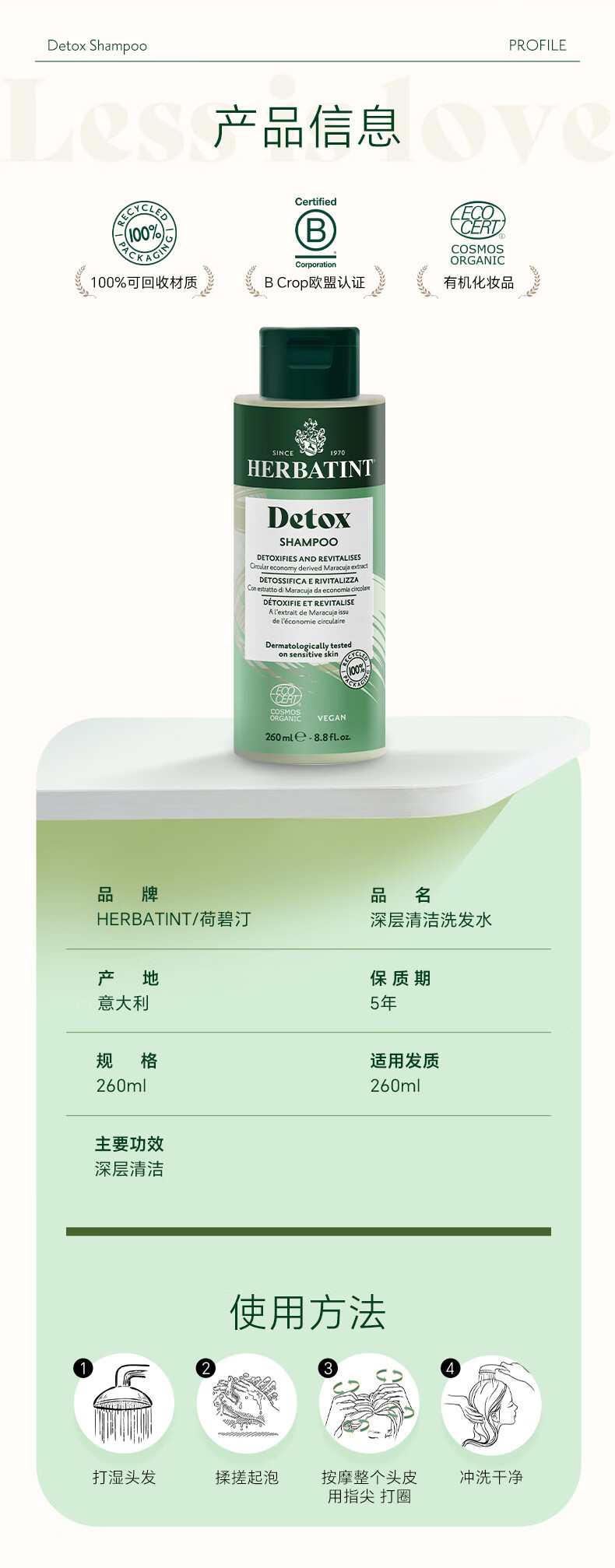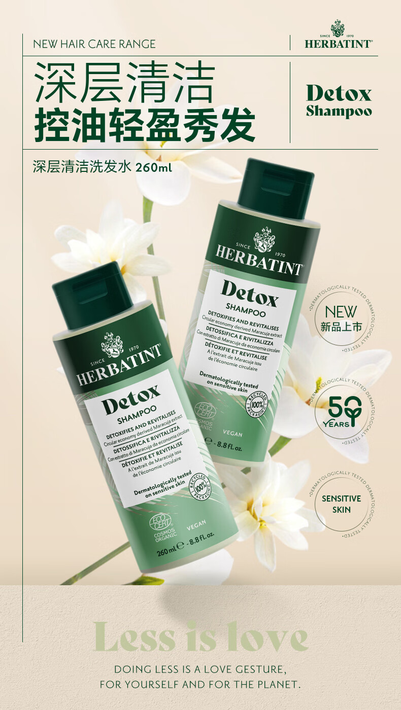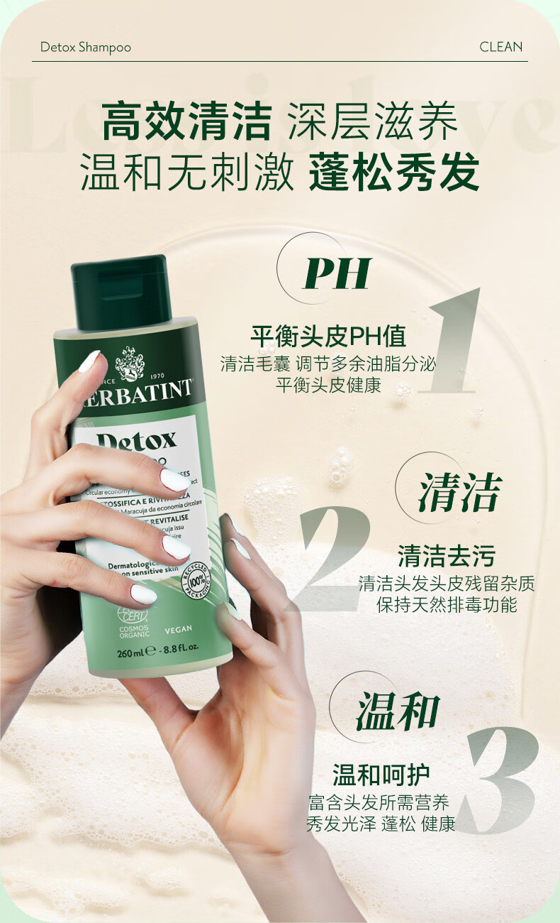 HERBATINT荷碧汀深层清洁洗发水260ml温和低敏 深层清洁洗发水260ml