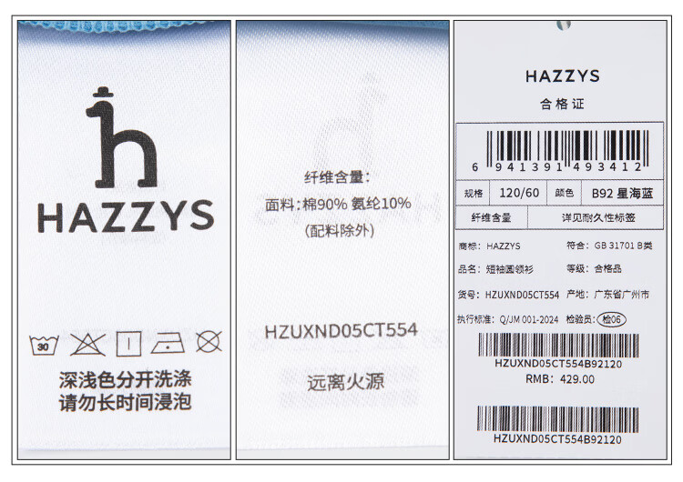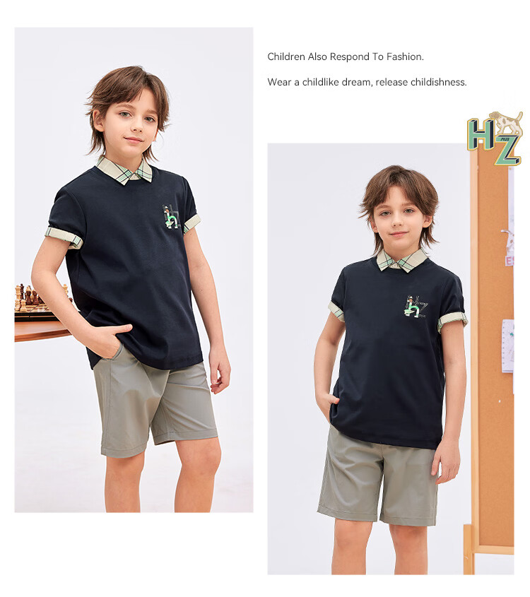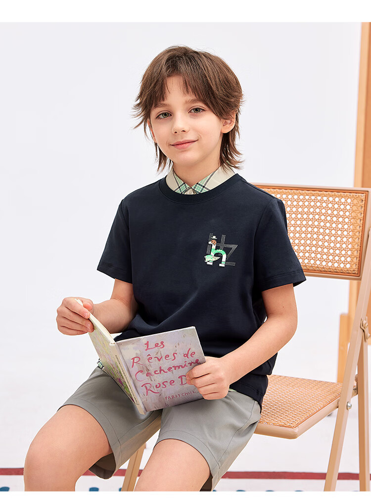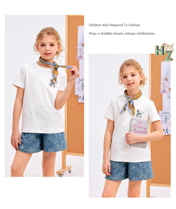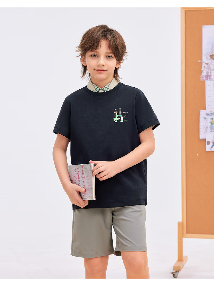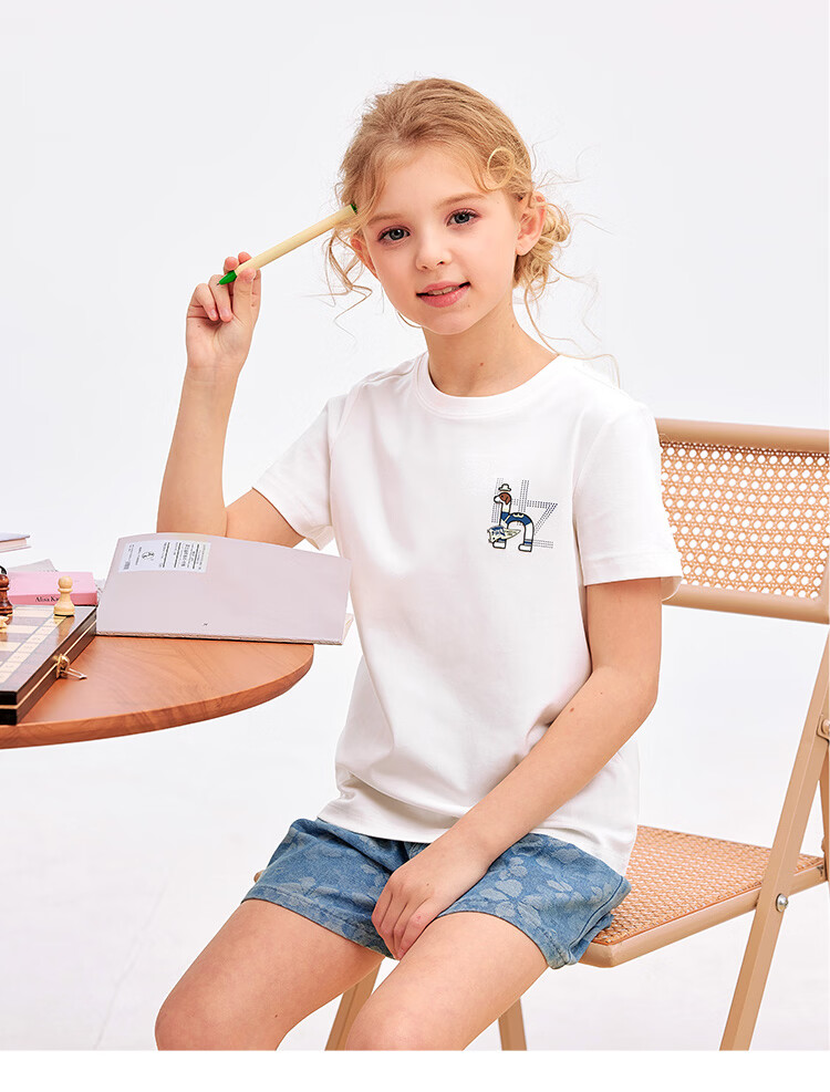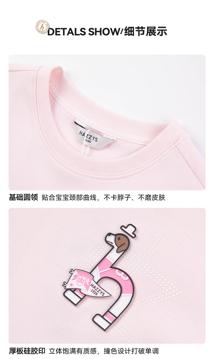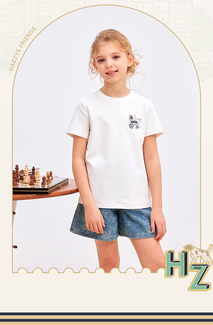 哈吉斯(HAZZYS)童装男女童短袖2026夏新液氨双面布透气圆领T恤 本白 165