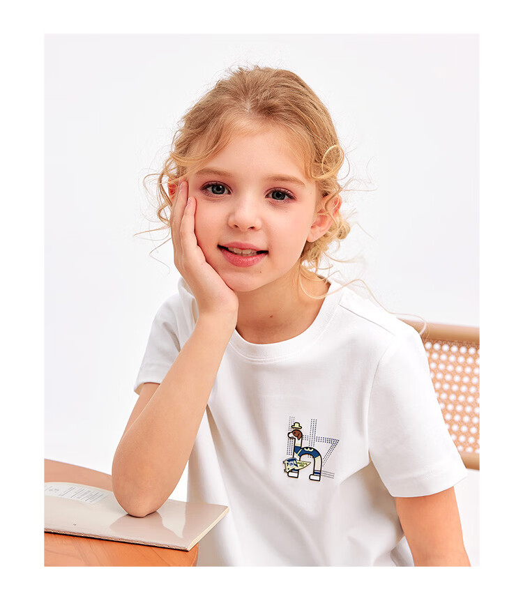 摩芭米mobami春秋女童T恤200g棉婴儿衣服纯棉T恤儿童宝宝插肩袖T恤 白色 130cm