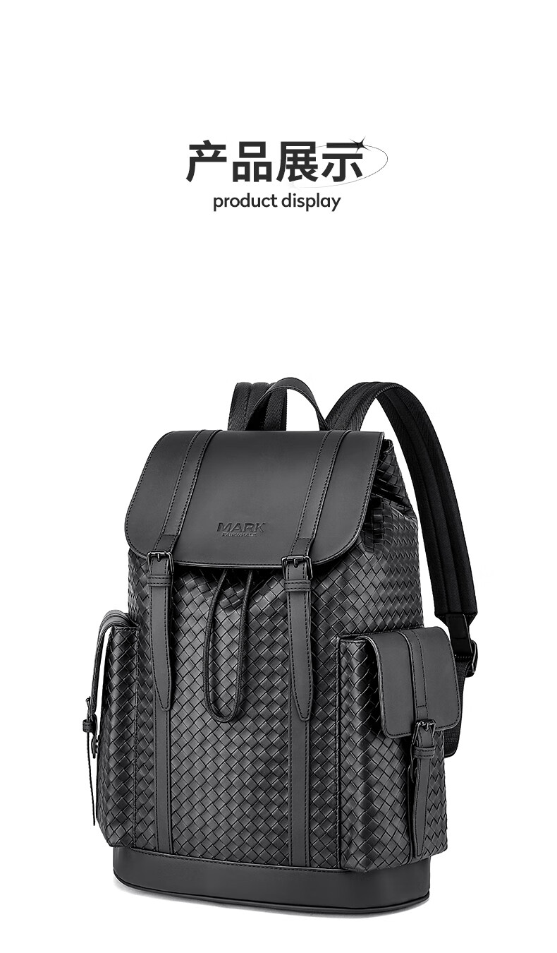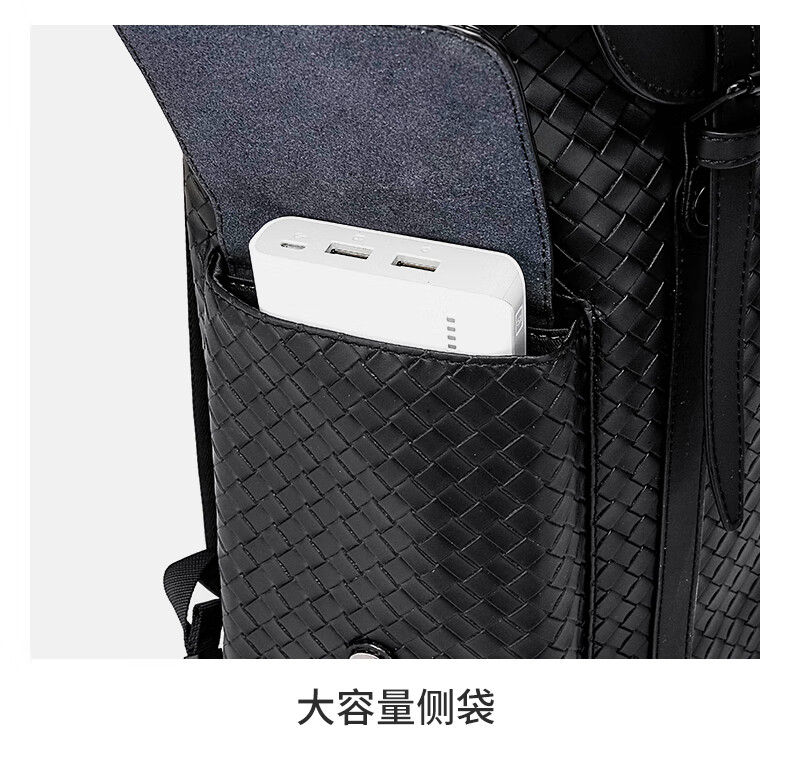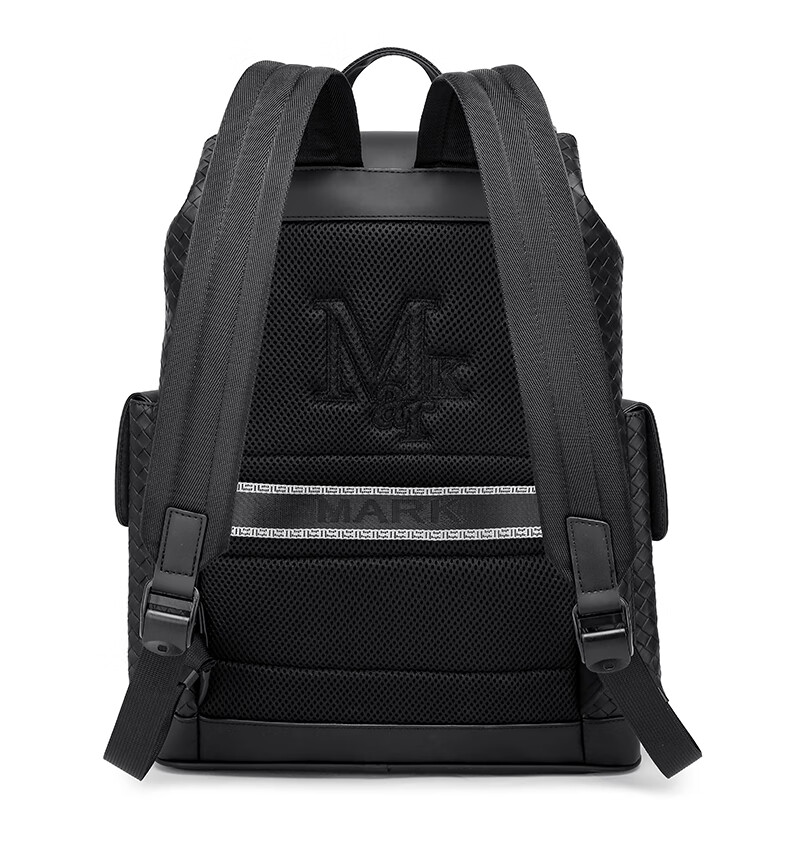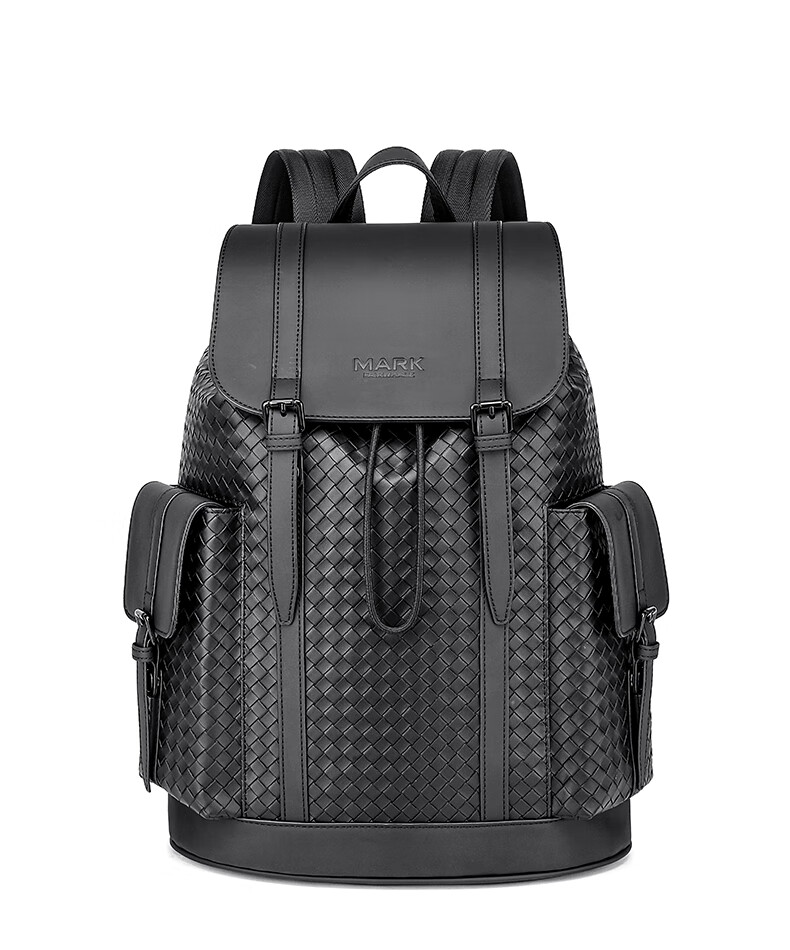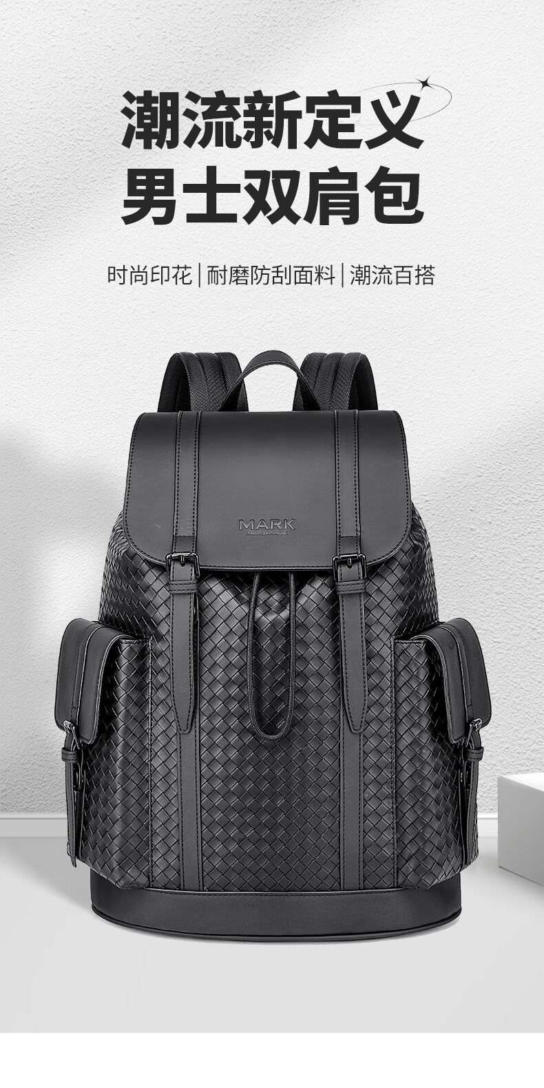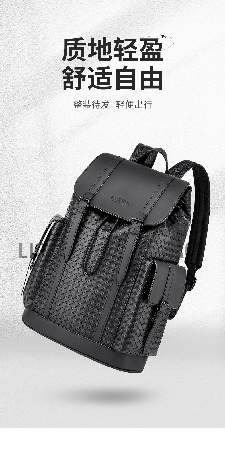 马克华菲2025新款编织商务双肩包通勤男士大容量背包潮流休闲百搭电脑男包 典雅黑双肩包