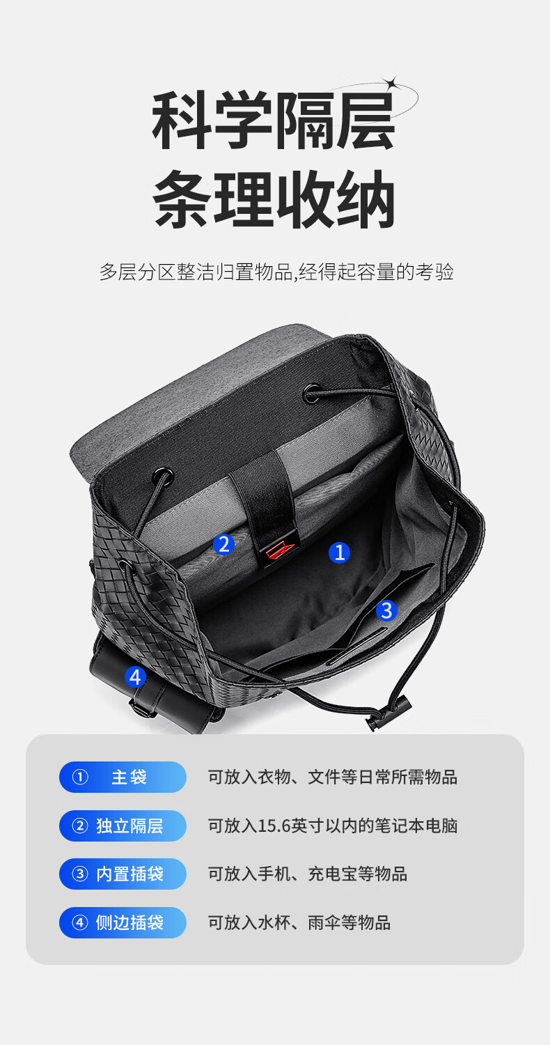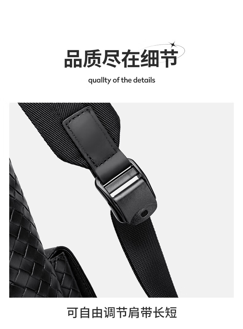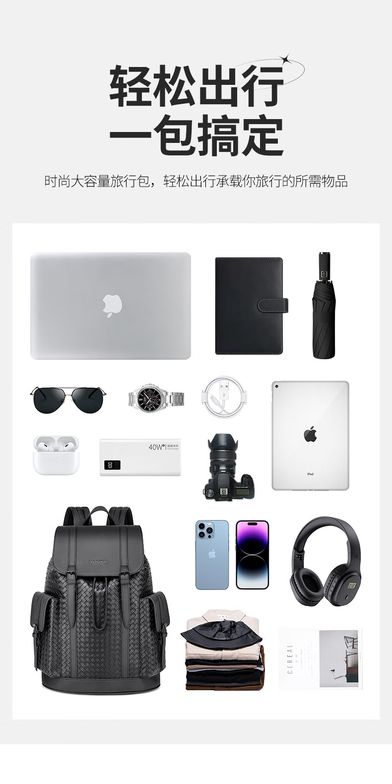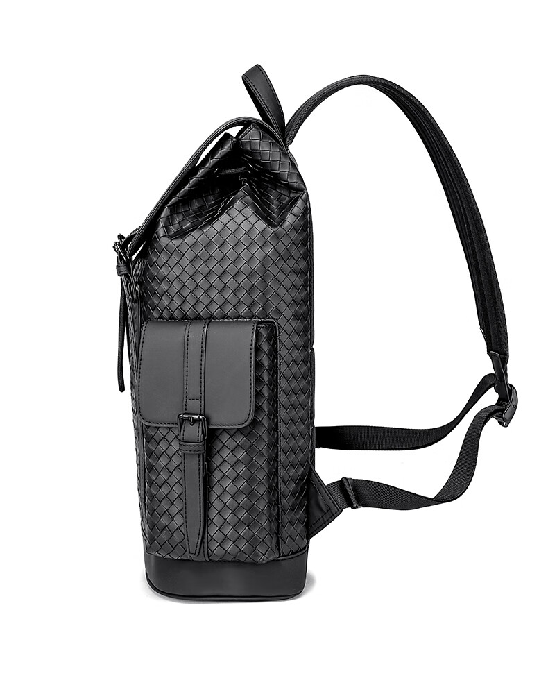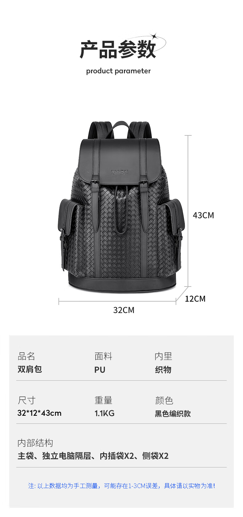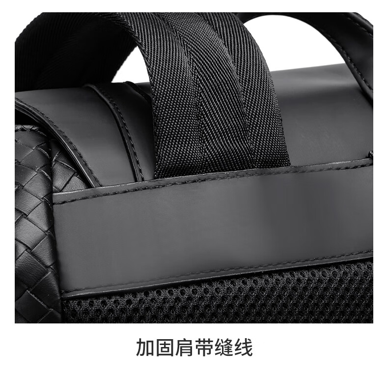 马克华菲2025新款编织商务双肩包通勤男士大容量背包潮流休闲百搭电脑男包 典雅黑双肩包