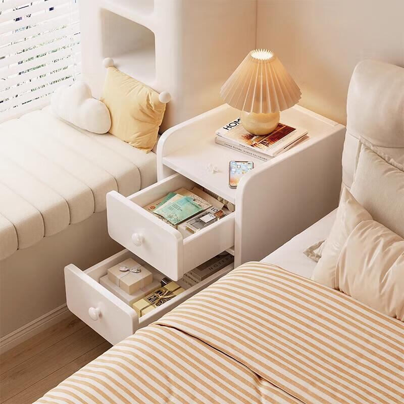 胖东来品质奶油风极窄床头柜家用卧室小型储物柜一体窄款夹缝小柜 实木生态板 暖白色 双抽 20cm