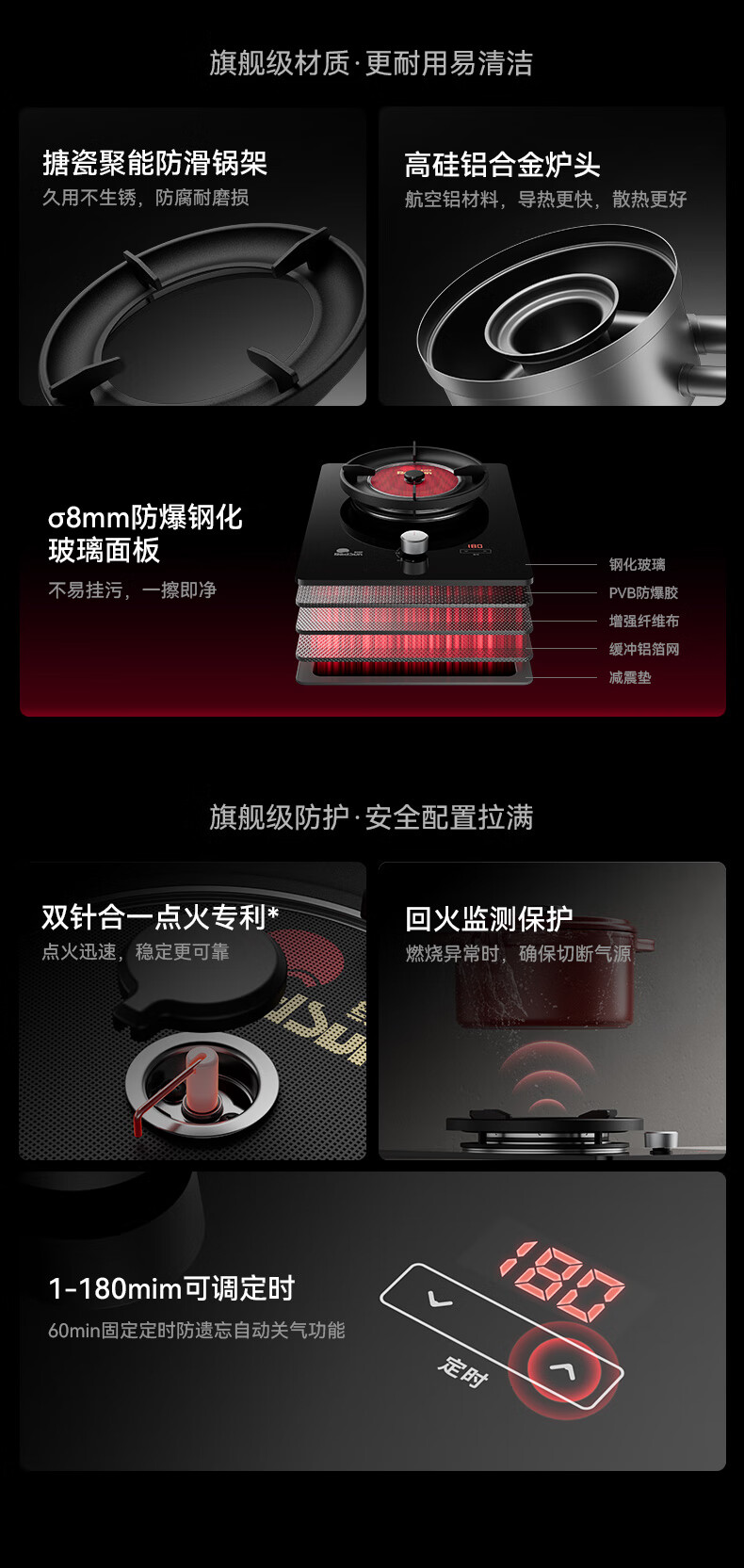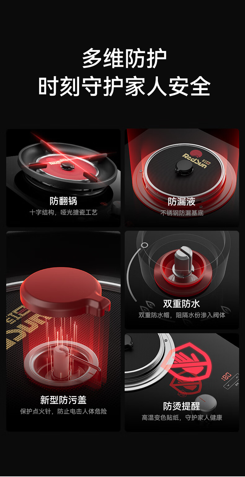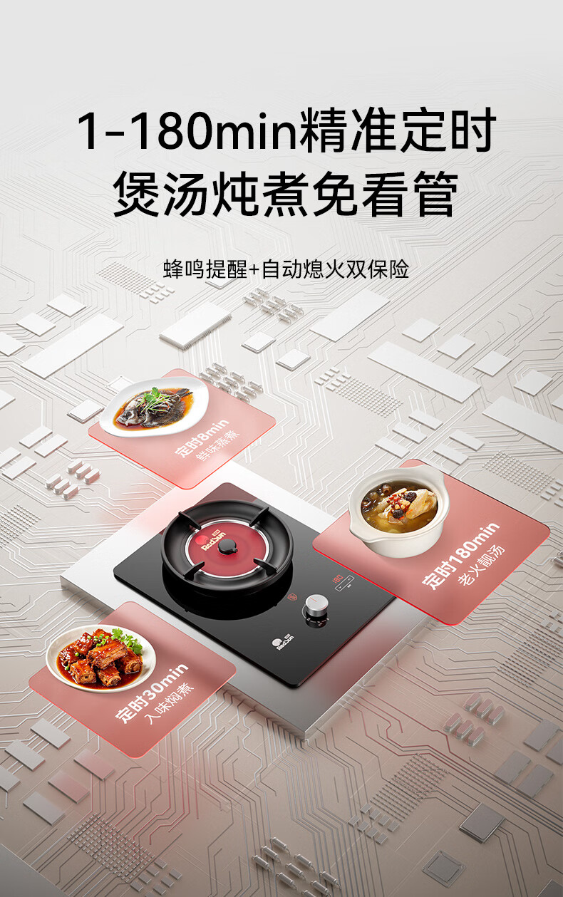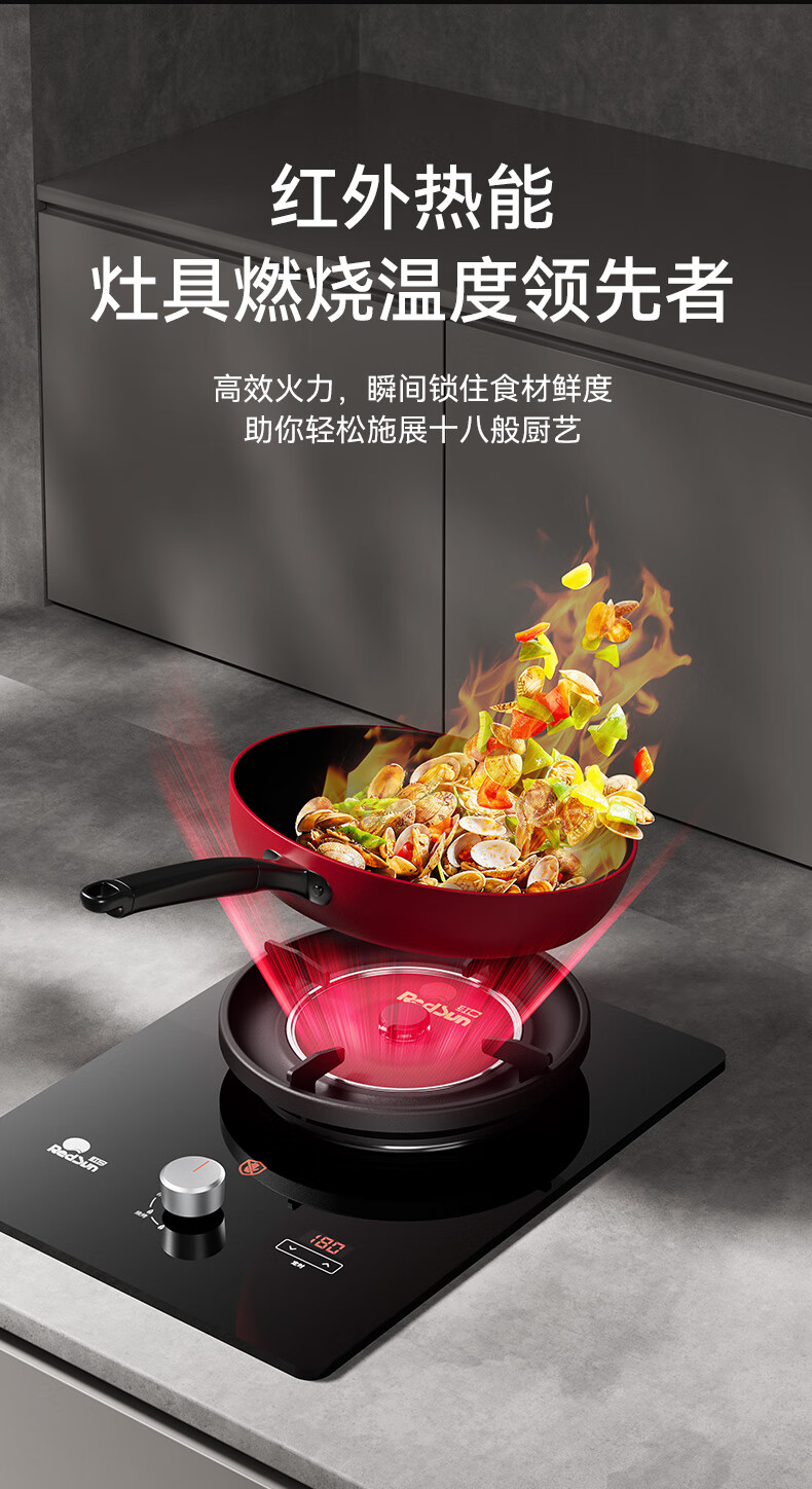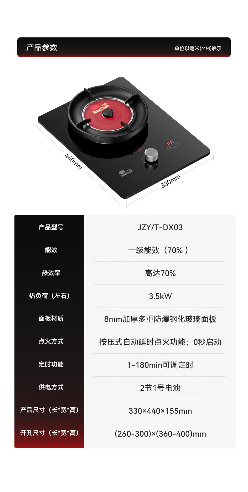 红日(RedSun)猛火单灶180min智能定时70%热效率DX03防烫熄火保护红外线燃气灶具台嵌两用节能省气 DX03液化气20Y