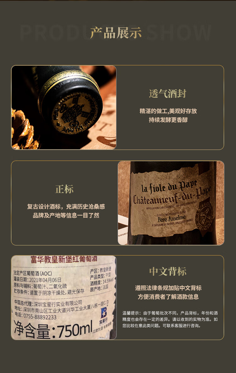 BROTTE法国歪脖子红酒特级教皇新堡产区干红葡萄酒原瓶进口【礼盒礼袋】 歪脖子教皇新堡单支750ml*1支