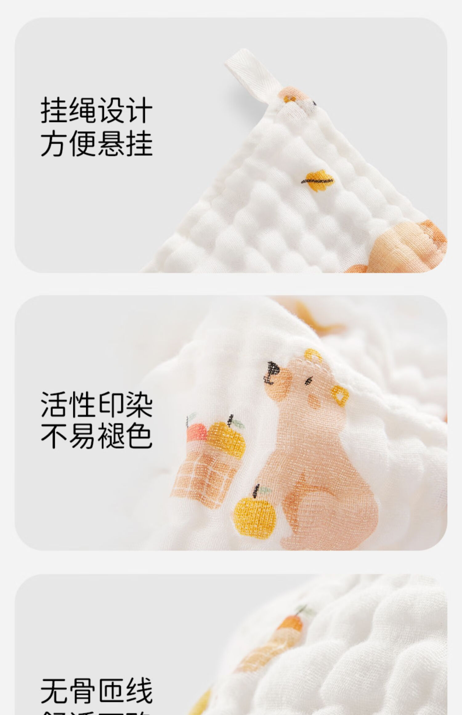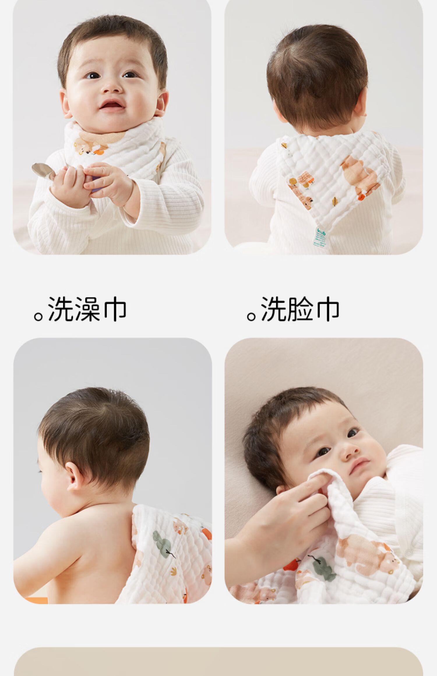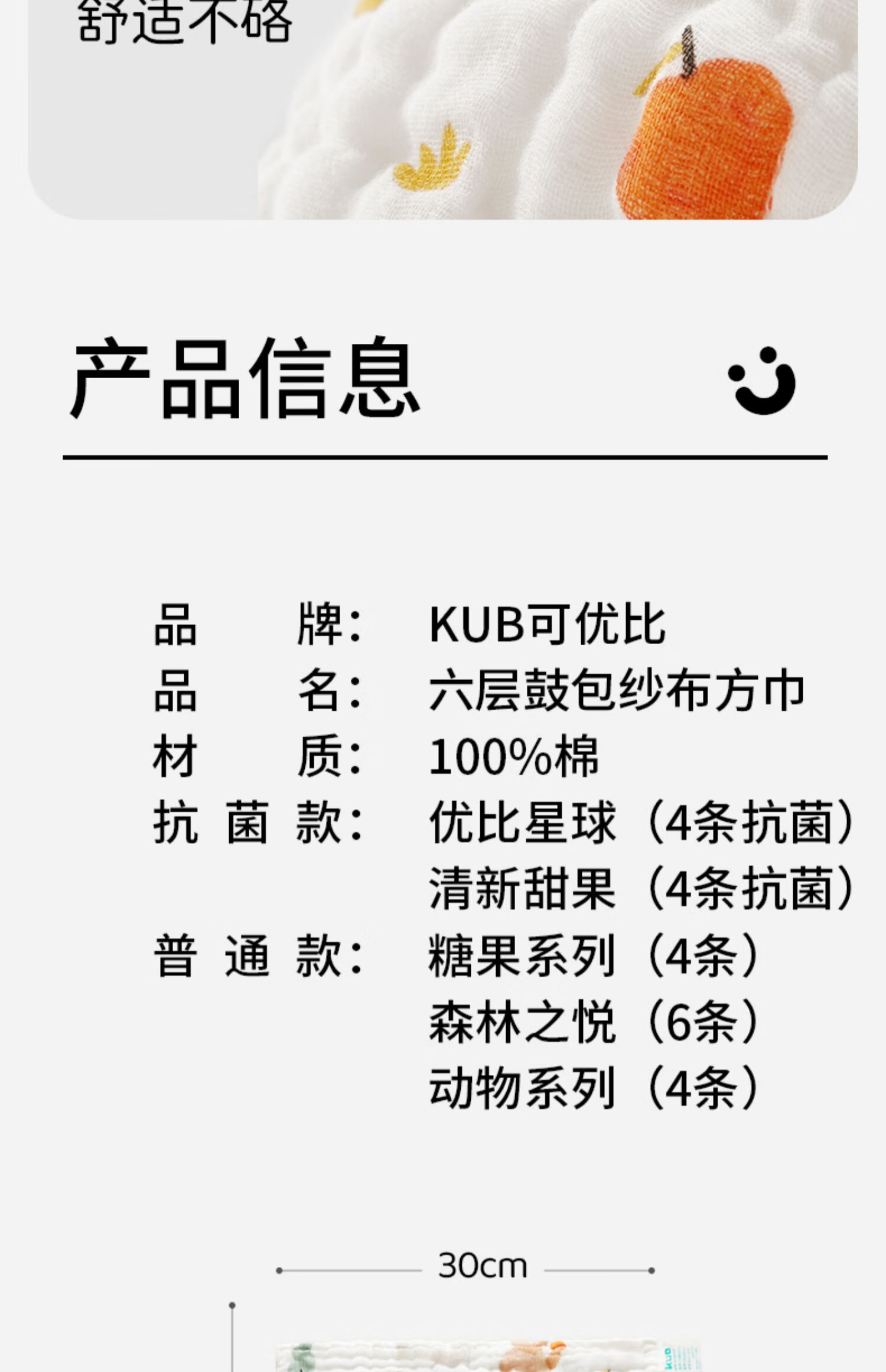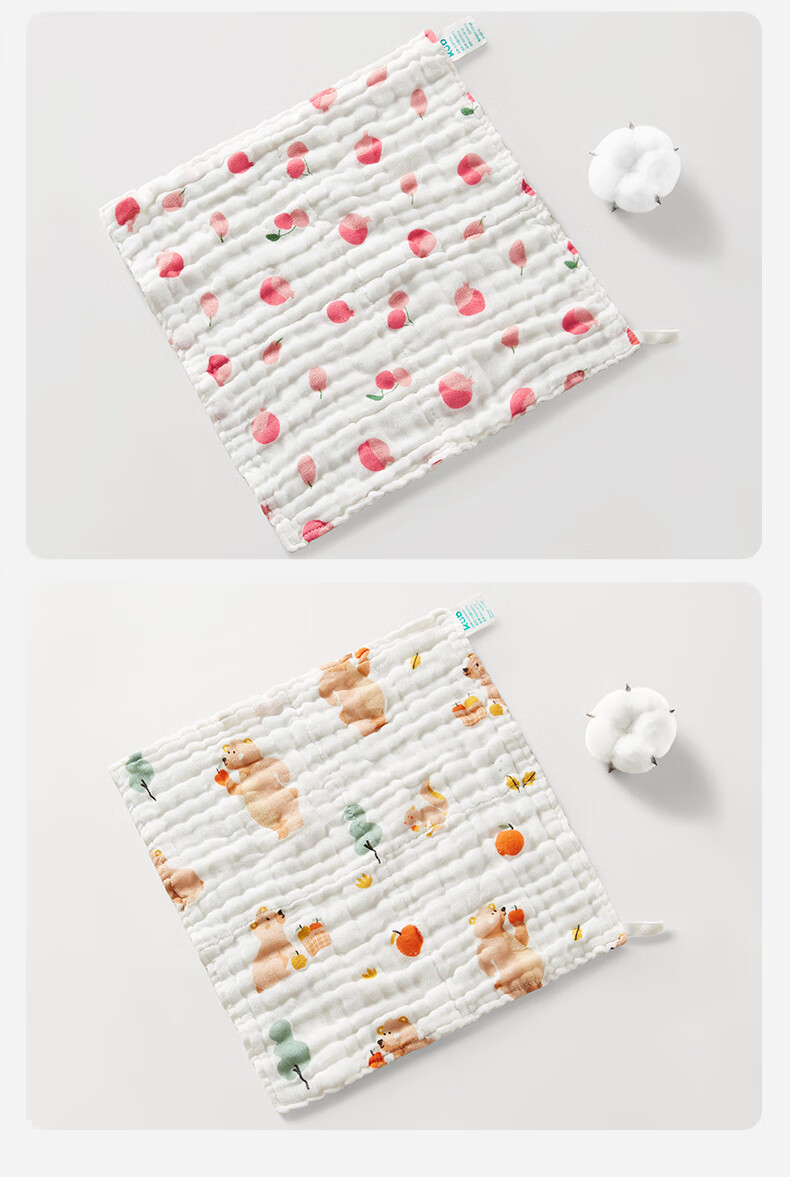 可优比(KUB)婴儿口水巾洗脸巾宝宝喂奶巾新生儿纯棉纱布毛巾小方巾手帕 森林之悦【6条装】30*30cm带挂绳