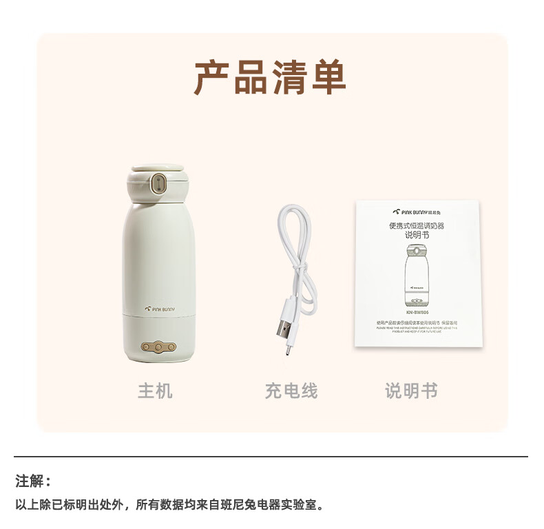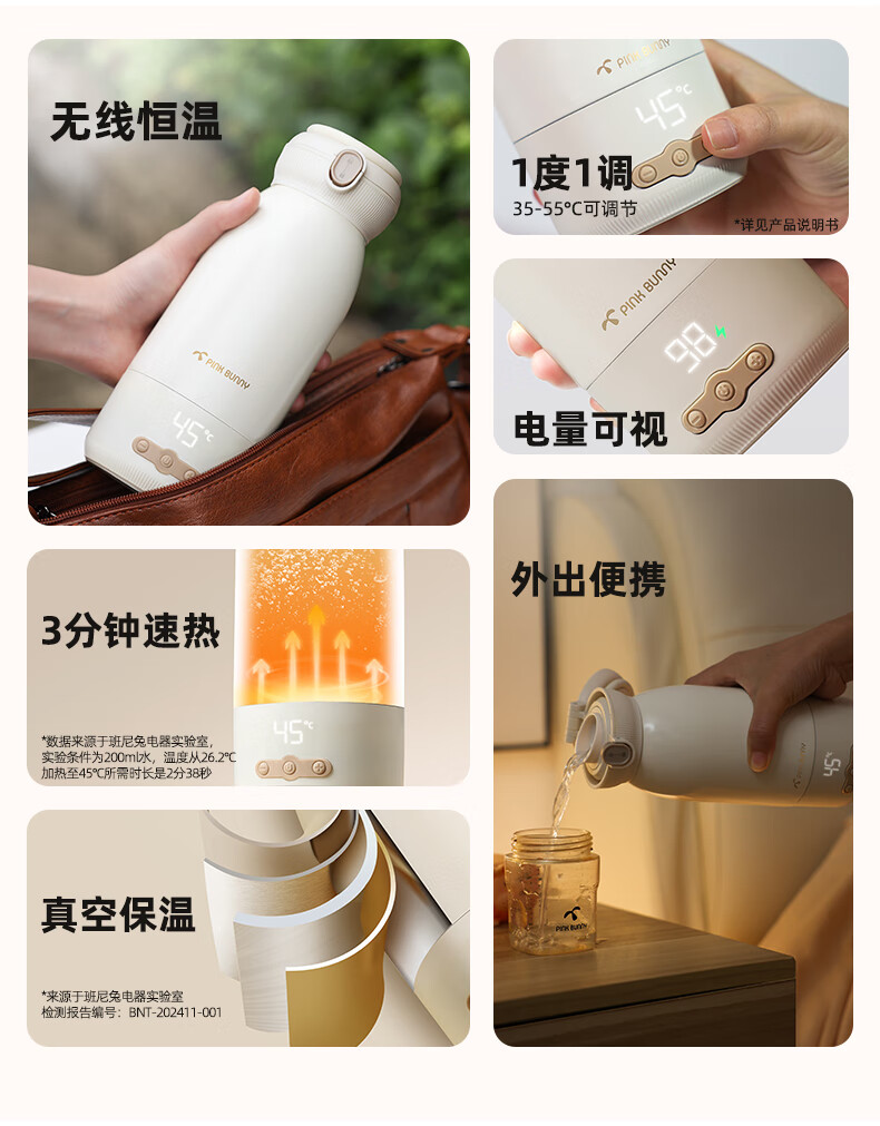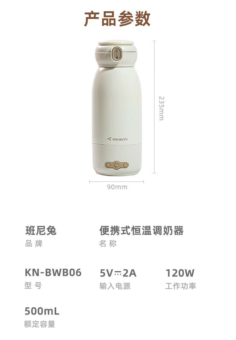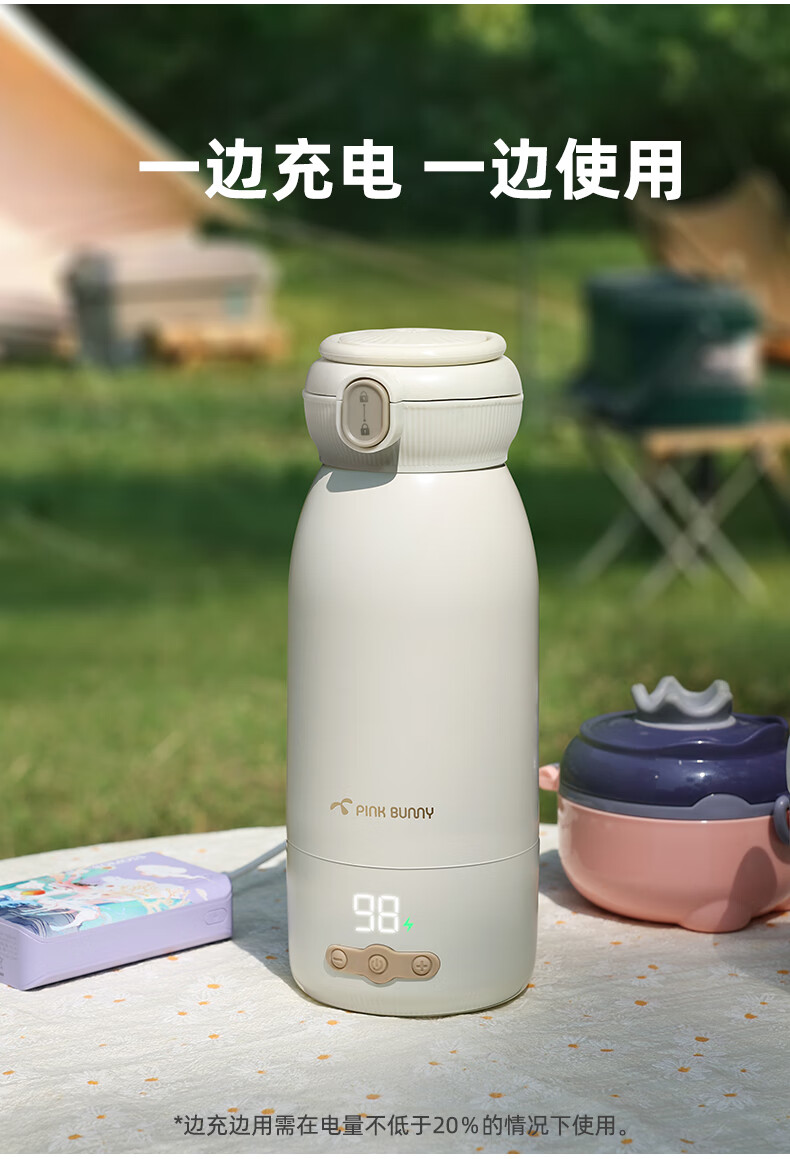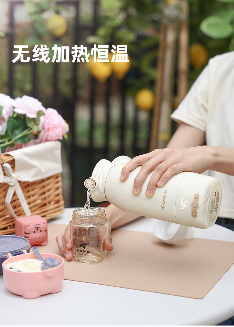 班尼兔(Pink Bunny)无线便携式恒温水壶调奶器保温杯婴儿外出暖奶冲奶恒温壶 便携调奶器 500ml