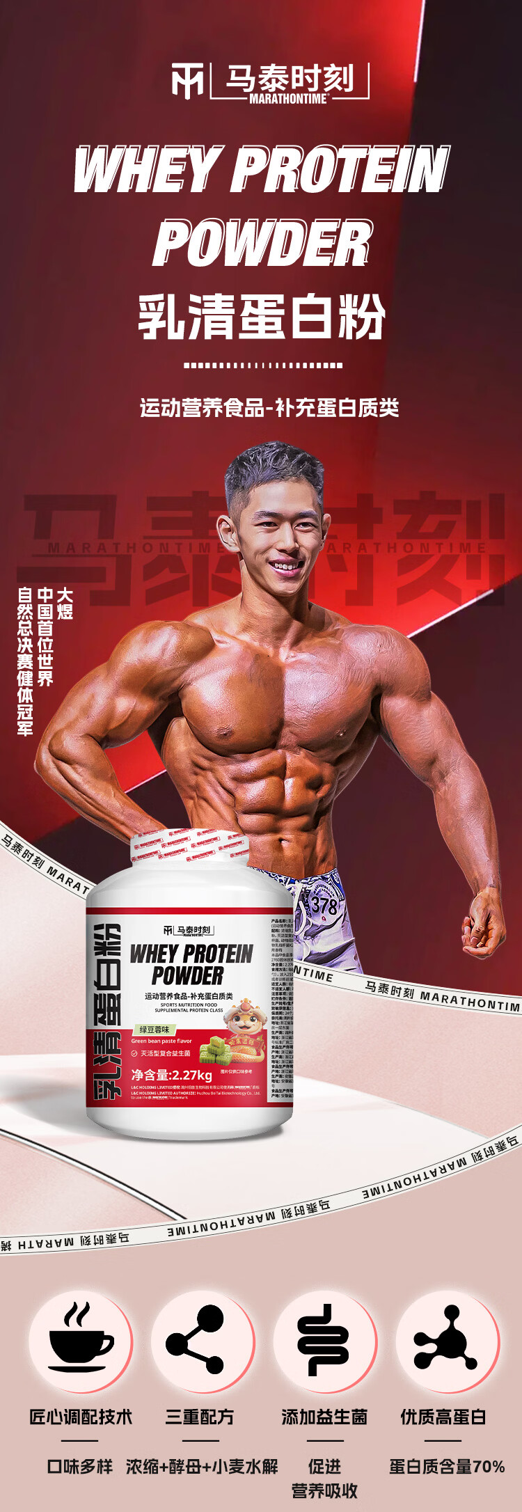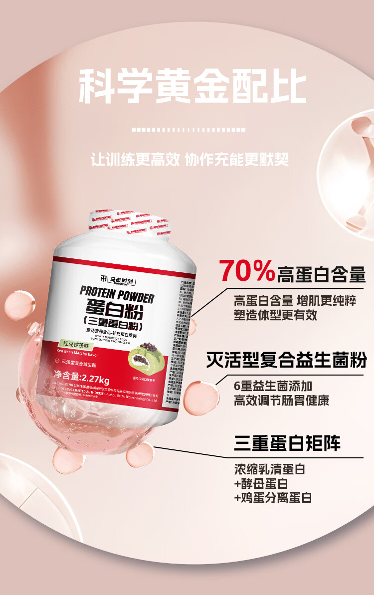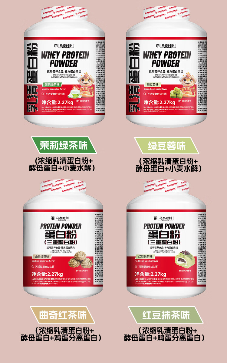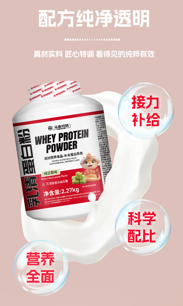 马泰时刻乳清蛋白粉5磅 添加益生菌 高蛋白健身增肌减脂运动补剂正品whey 茉莉绿茶 5磅*1桶