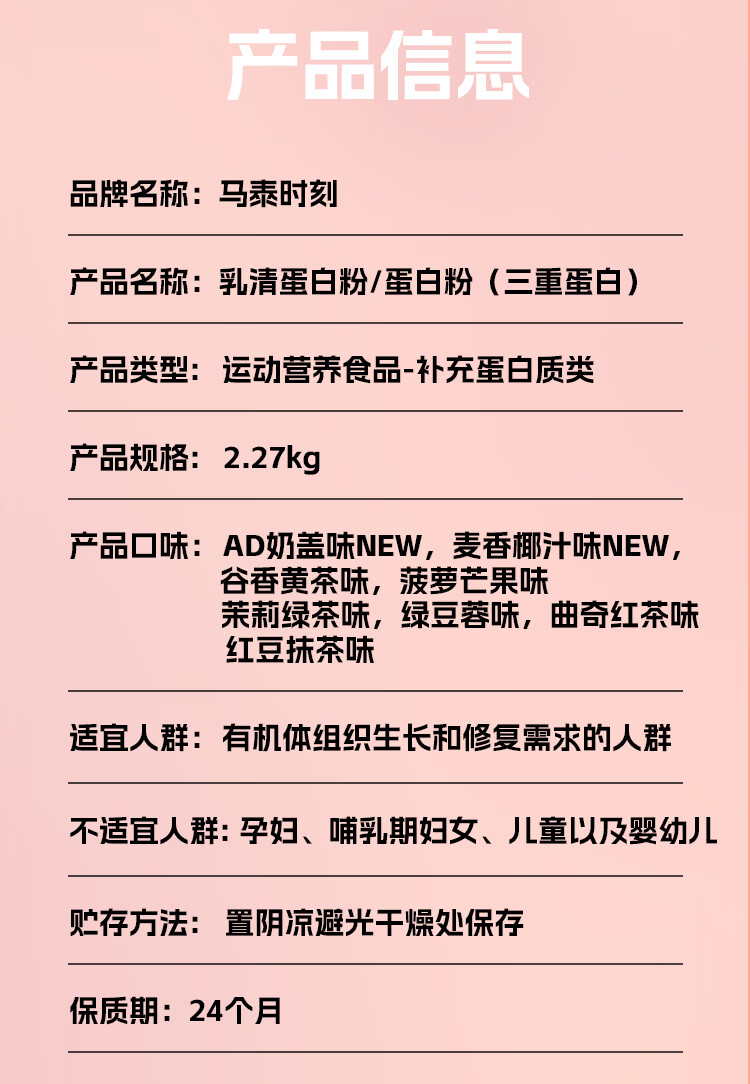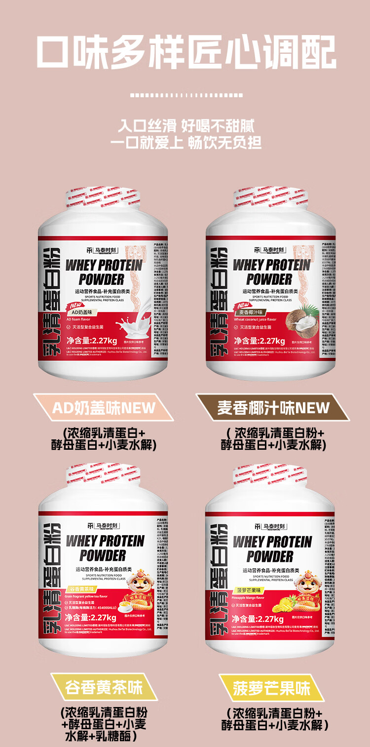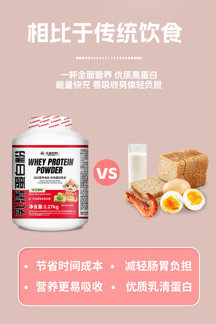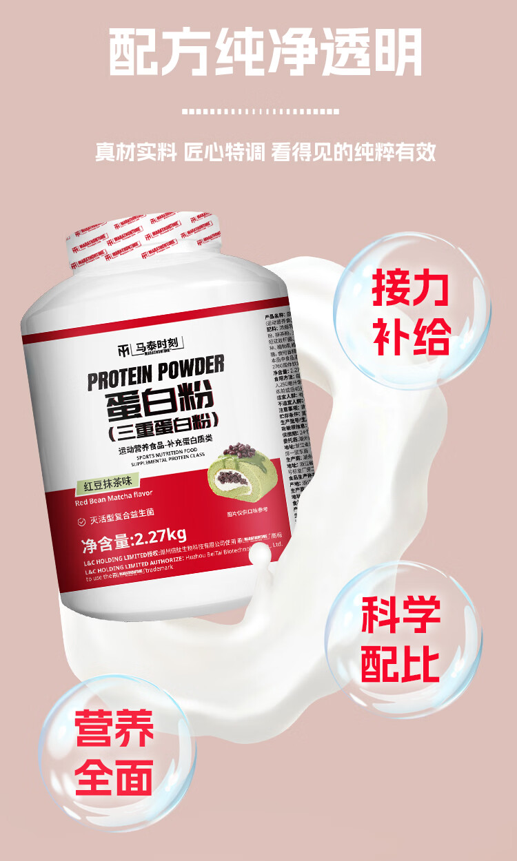马泰时刻乳清蛋白粉5磅 添加益生菌 高蛋白健身增肌减脂运动补剂正品whey 茉莉绿茶 5磅*1桶