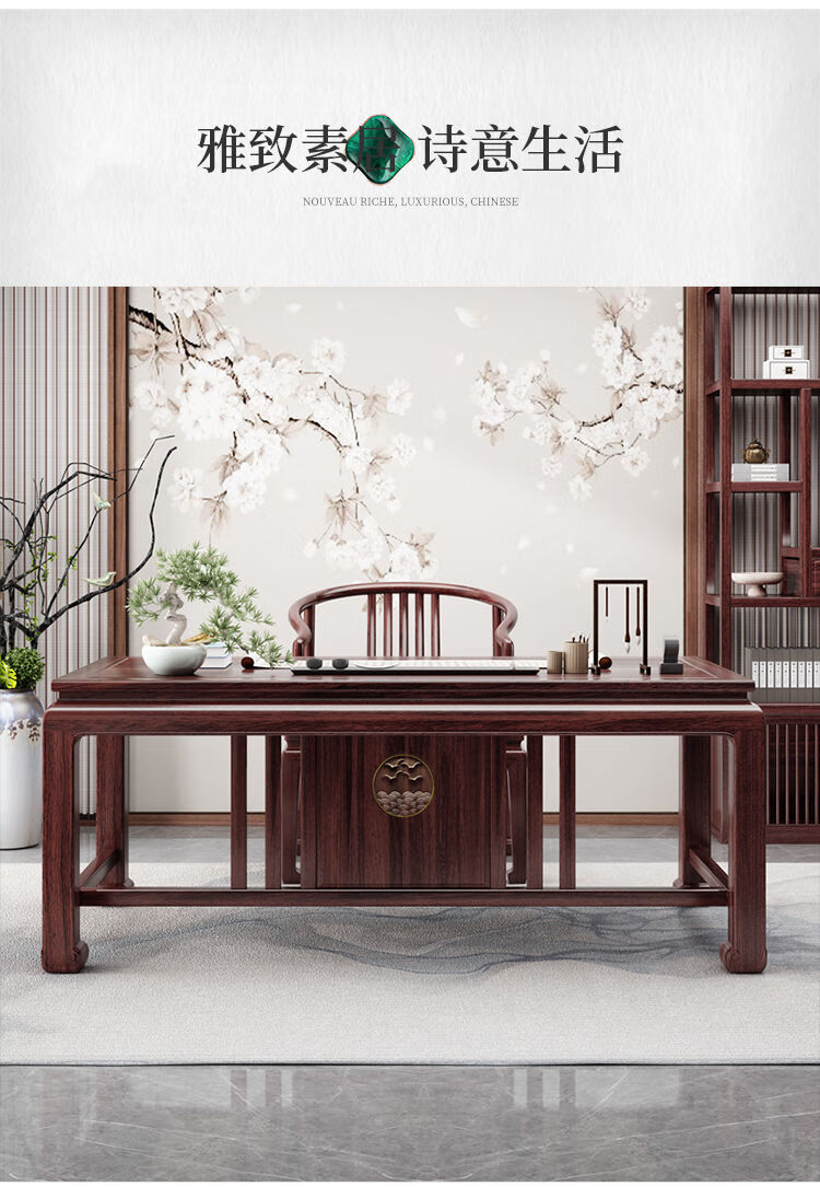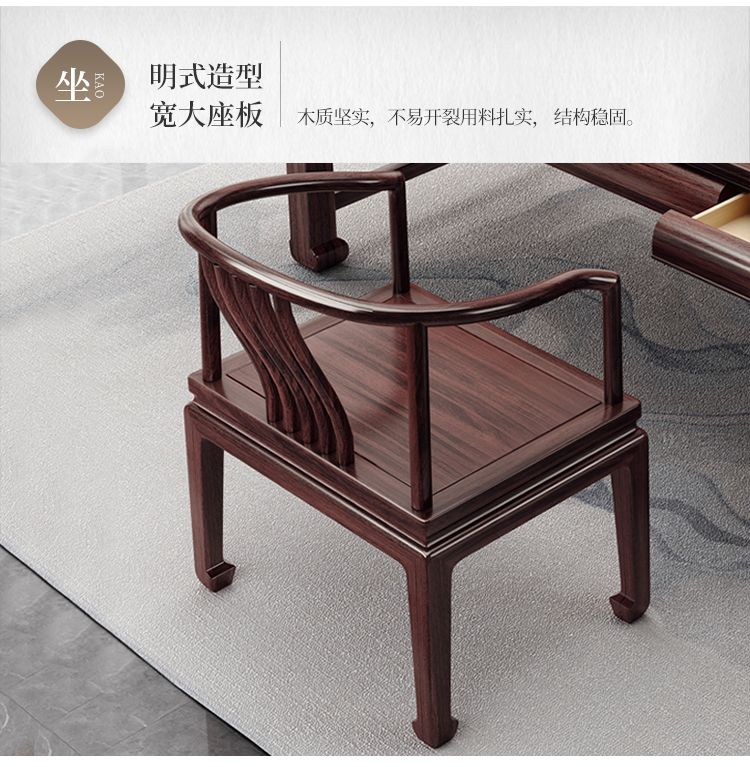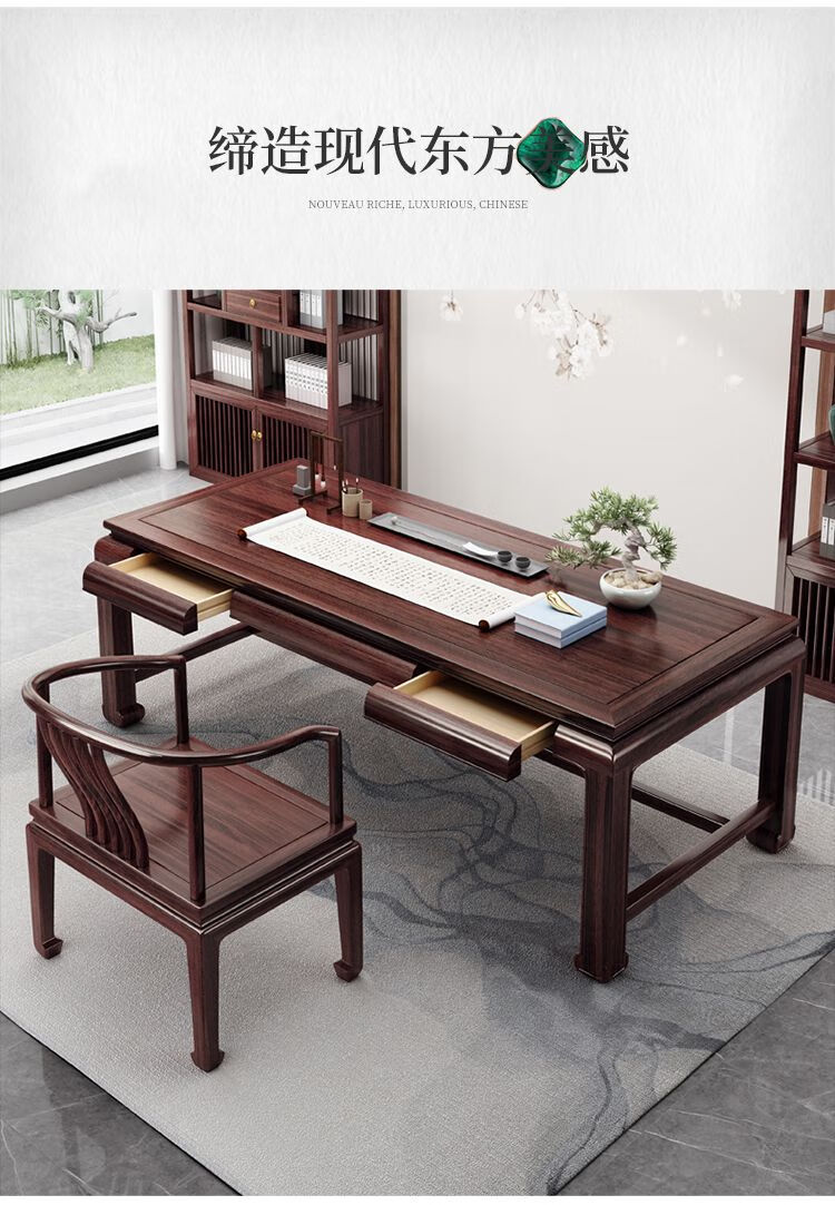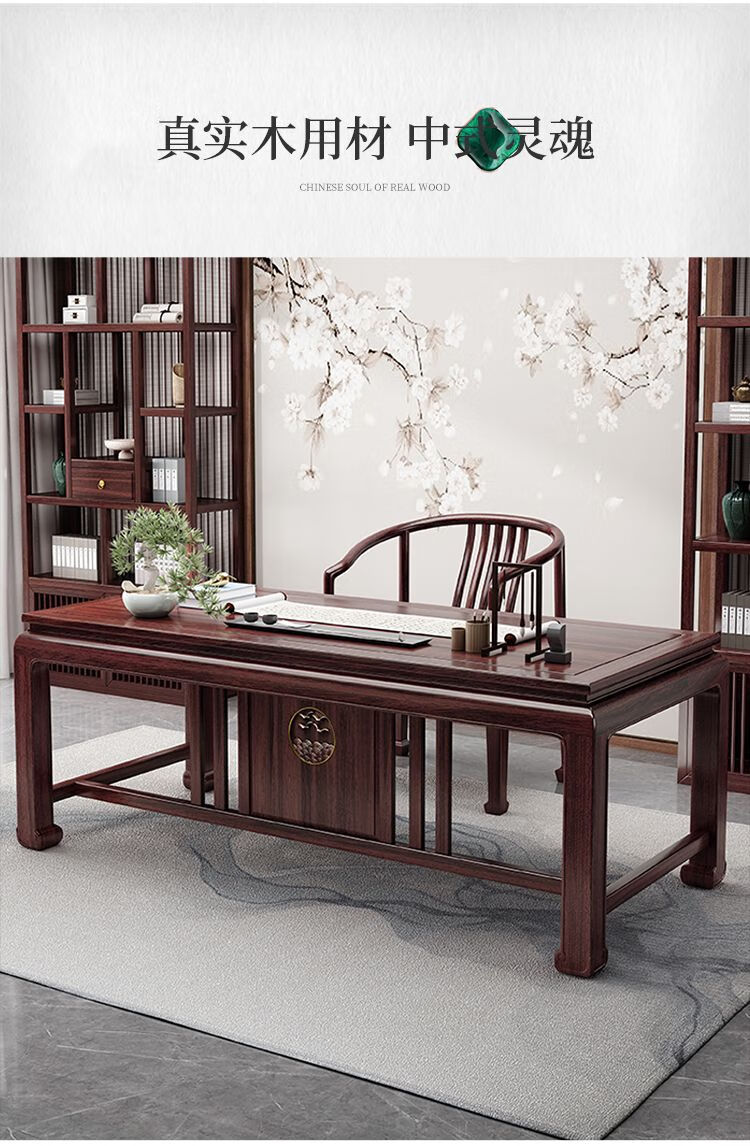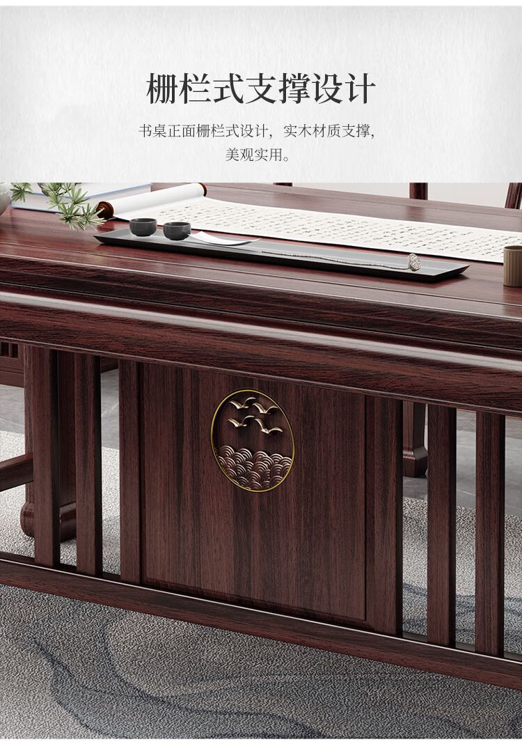 木昱林2025新款古典乌金木实木书桌仿古中式书桌书法桌电脑桌家用学习桌 书桌+罗汉围椅 1.4米