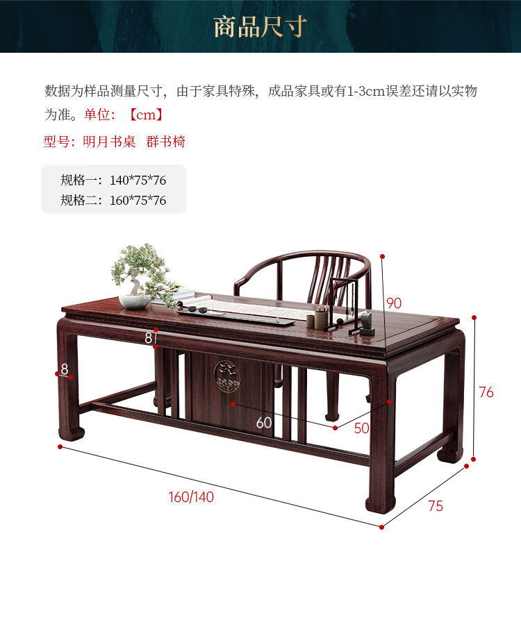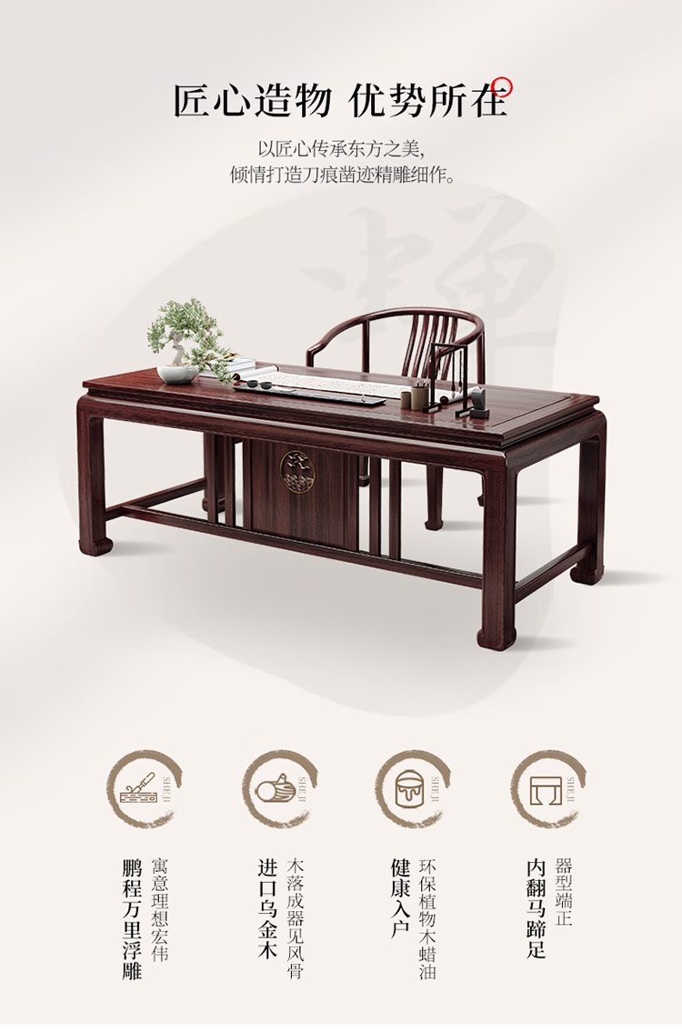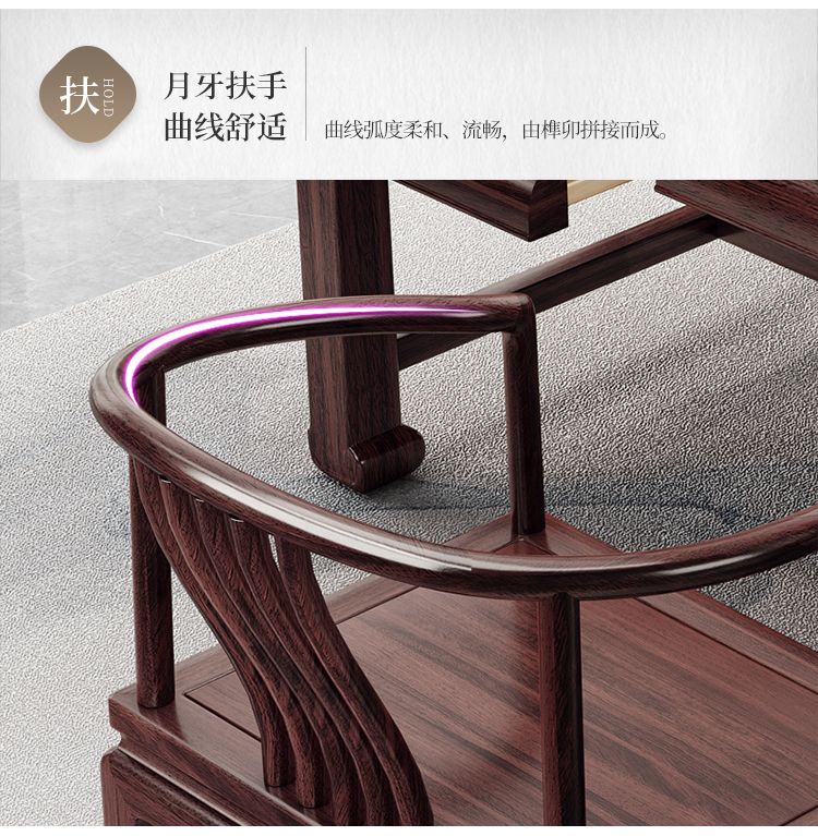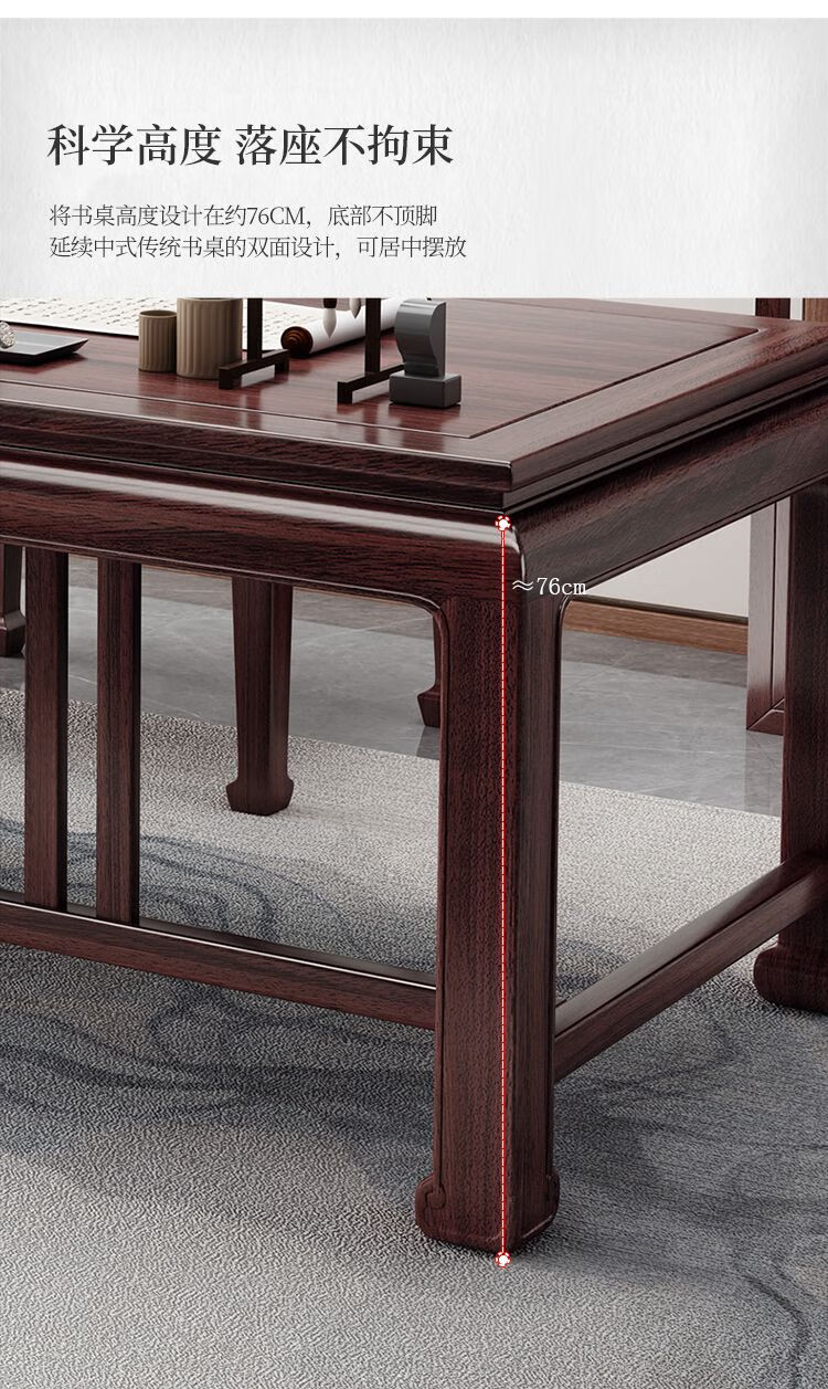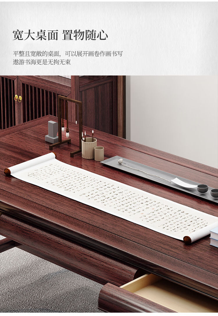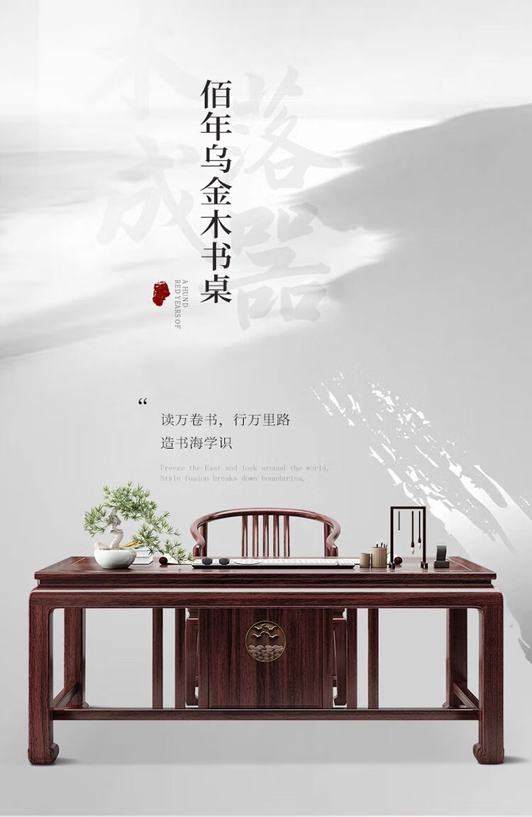 木昱林2025新款古典乌金木实木书桌仿古中式书桌书法桌电脑桌家用学习桌 书桌+罗汉围椅 1.4米