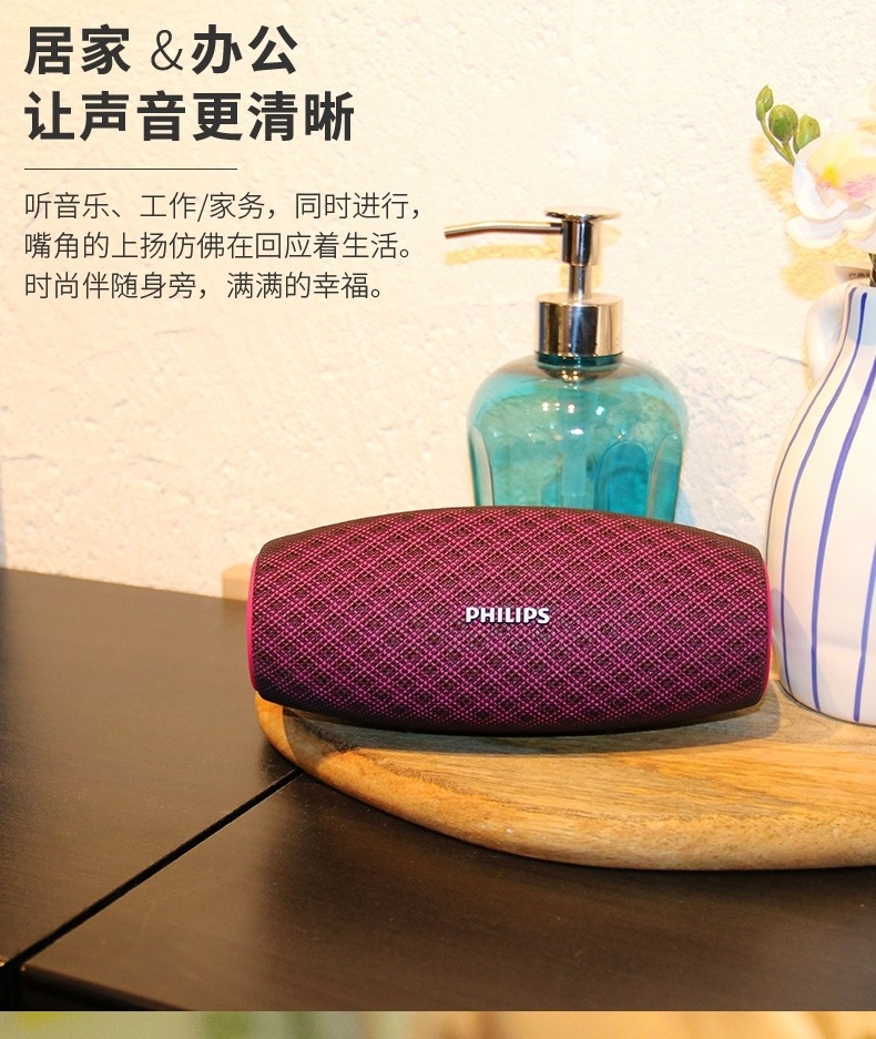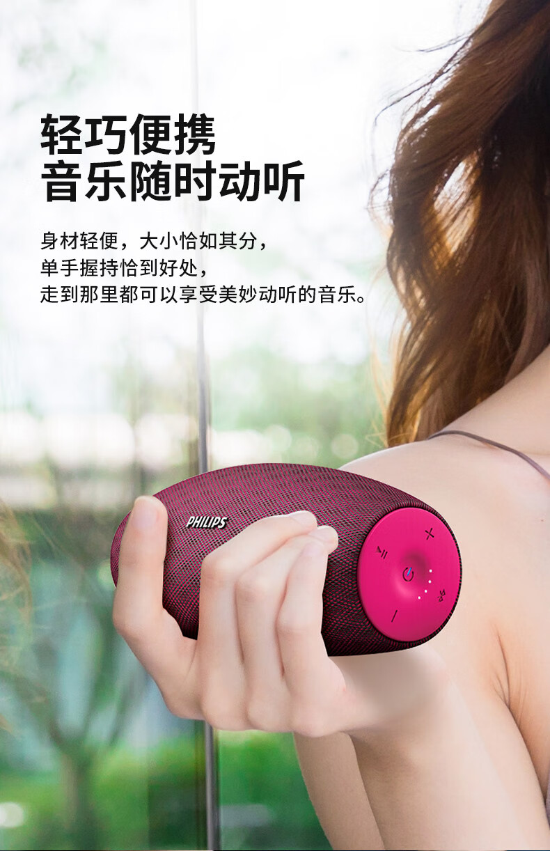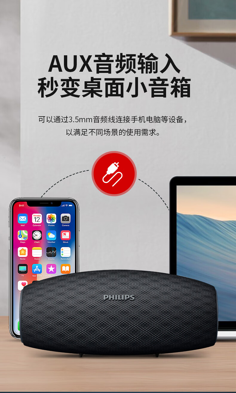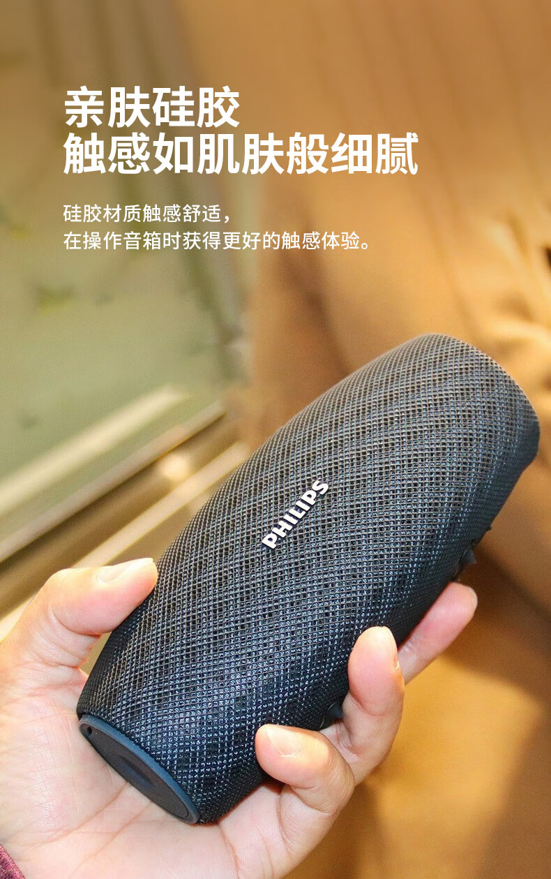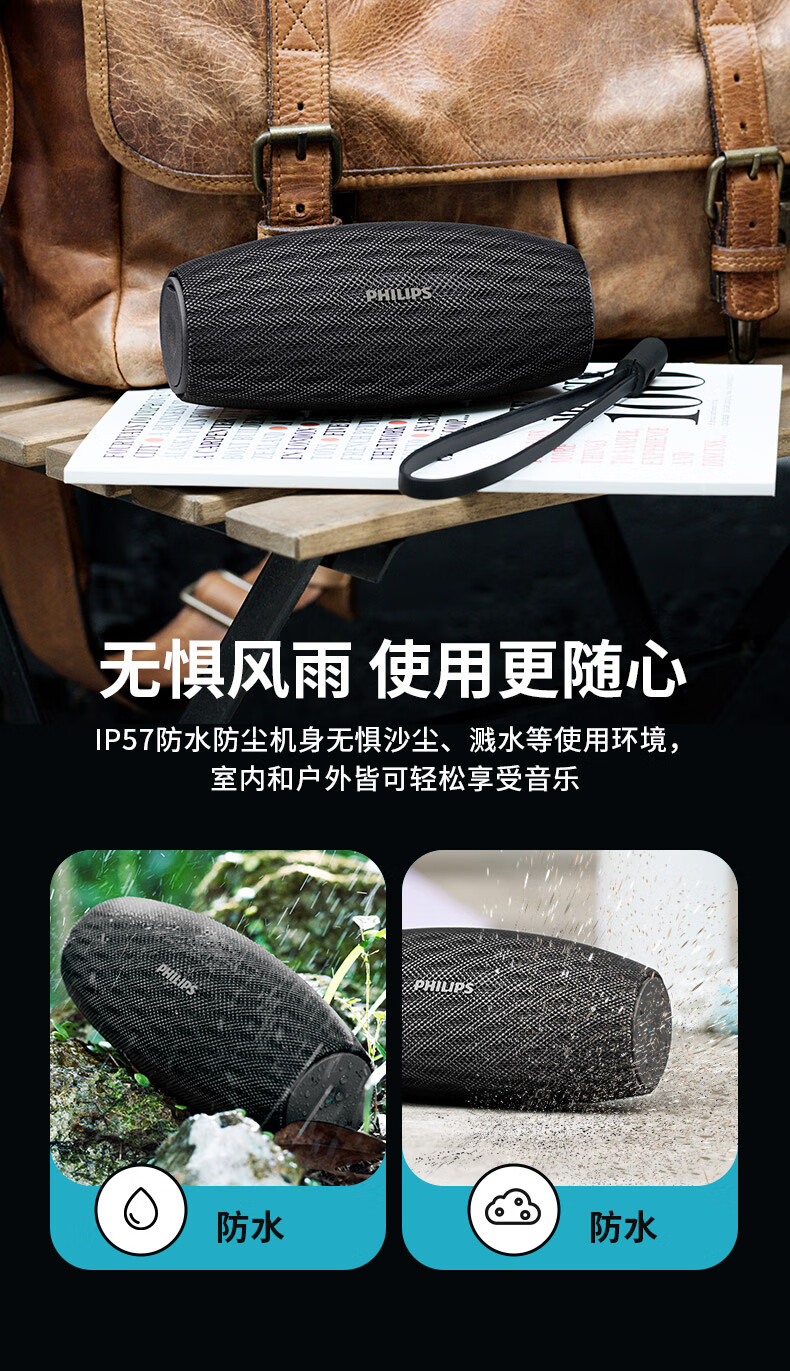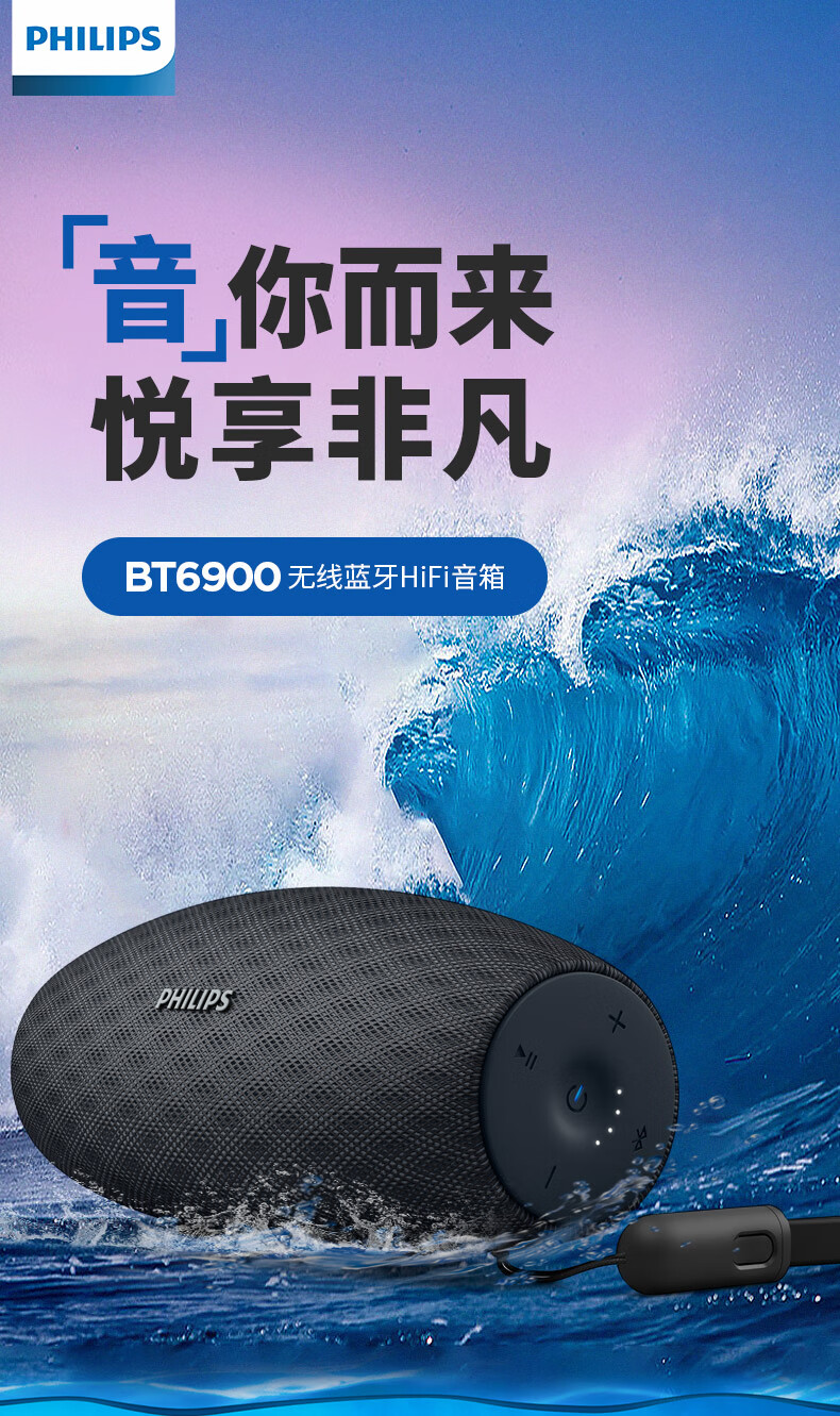 飞利浦(PHILIPS)BT6900 音乐小号角 便携式无线蓝牙音箱低音炮音响播放器电脑桌面户外布艺hifi防水曜石黑